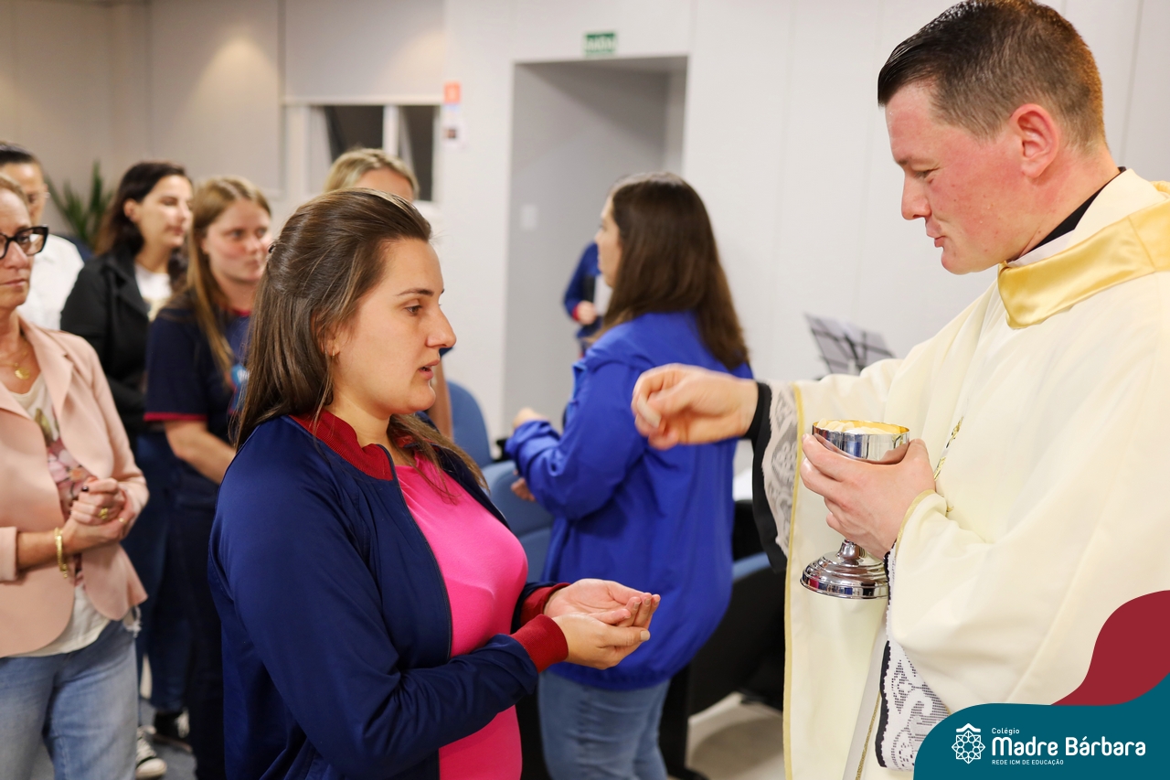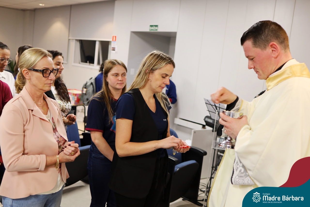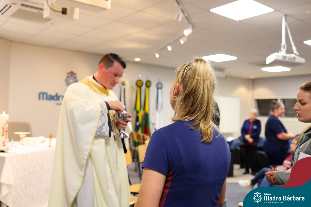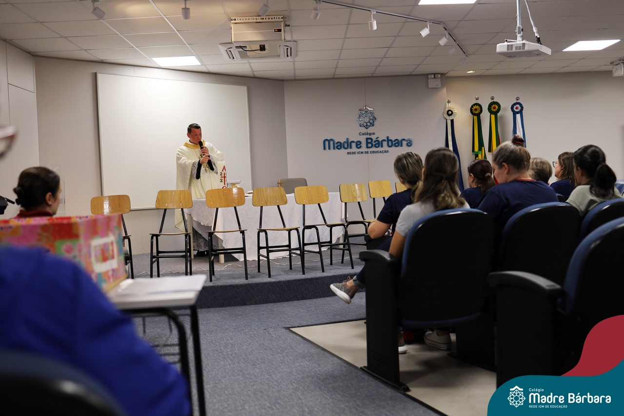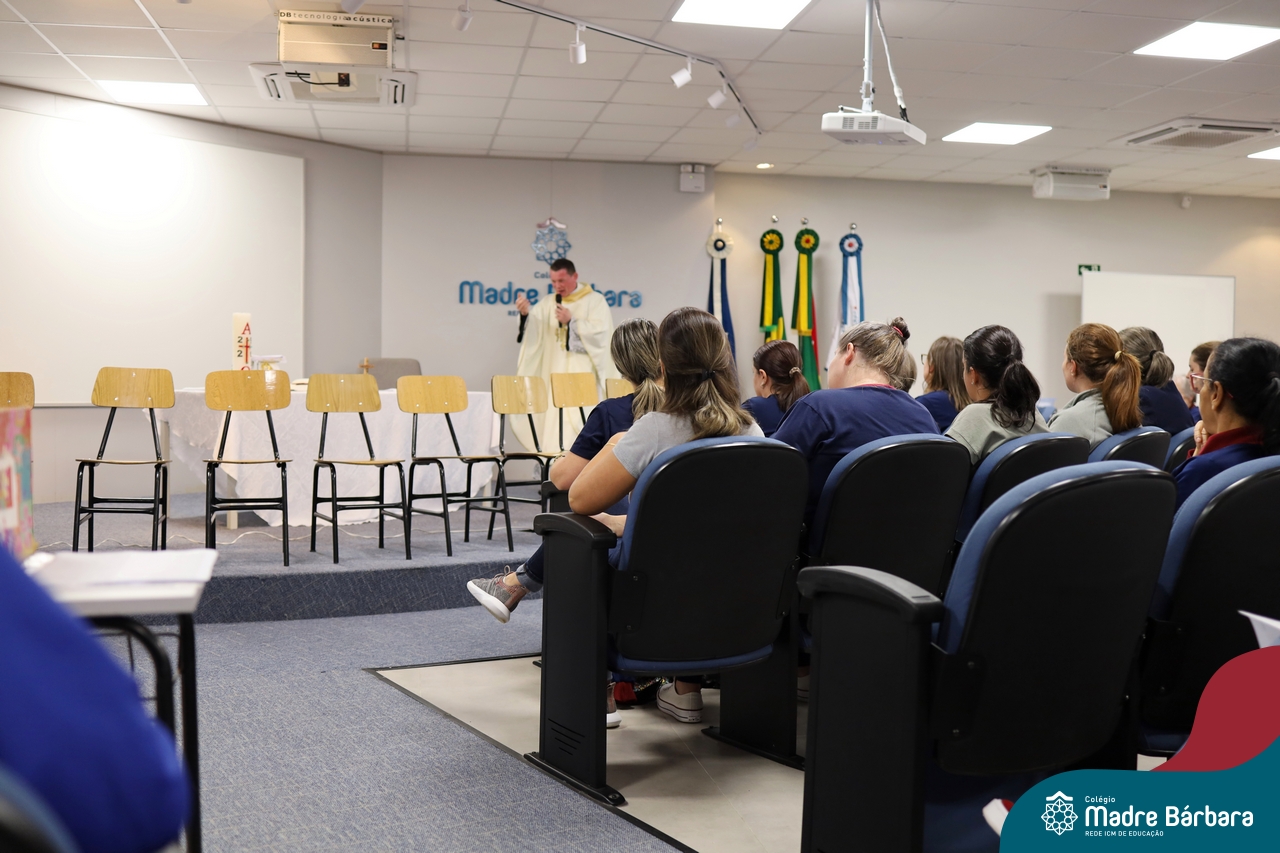 Na noite de terça-feira (8) o Serviço de Pastoral Escolar e o Colégio Madre Bárbara – Rede ICM realizaram a tradicional Celebração de Páscoa para os colaboradores. A missa, celebrada pelo Padre Ezequiel, de Cruzeiro do Sul, contou com a leitura do Êxodo, momento do lava-pés, Círio Pascal com luzes desligados, reflexão e comunhão. Agradecemos a presença dos profissionais neste momento de fé e agradecimento.