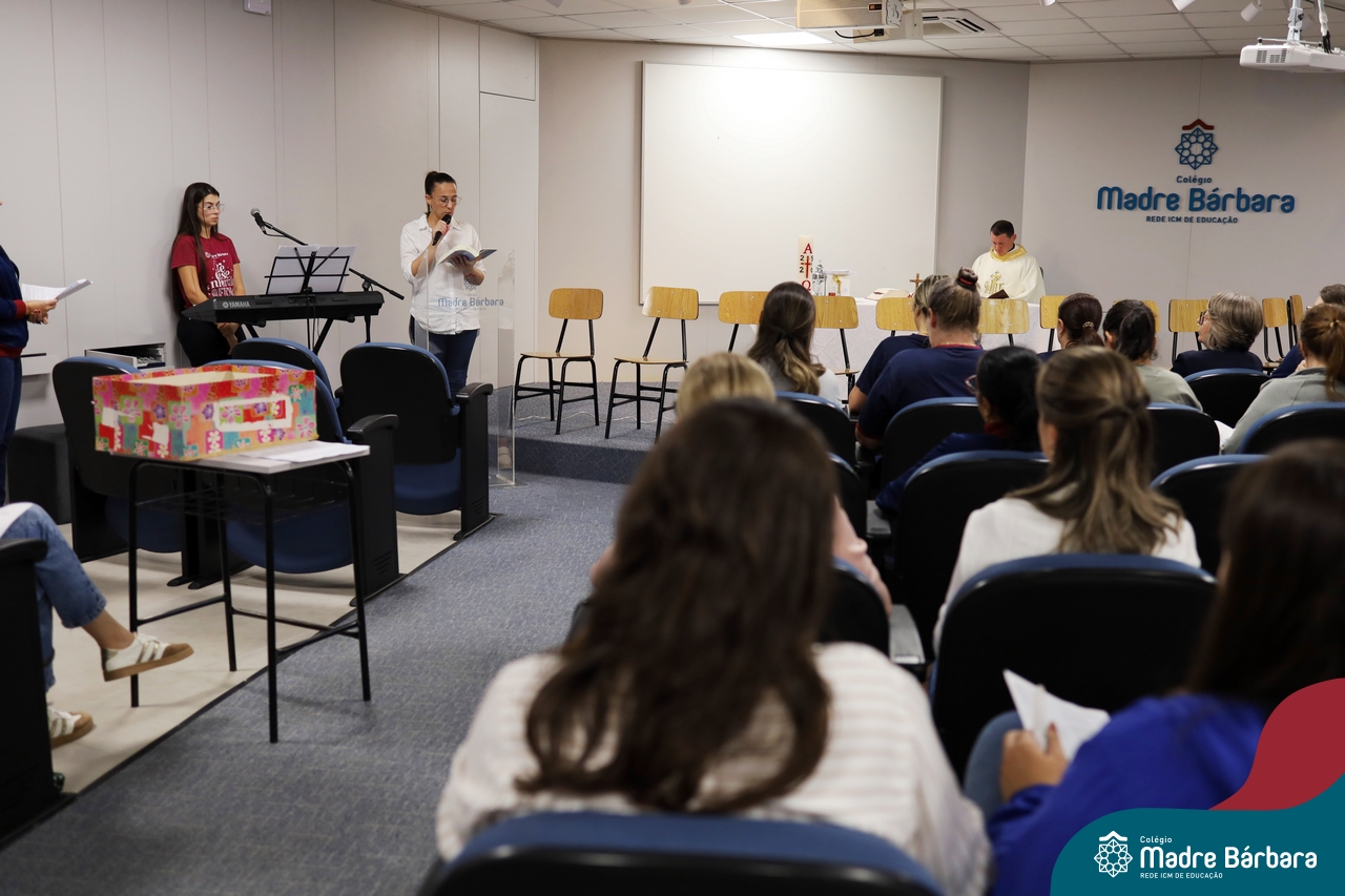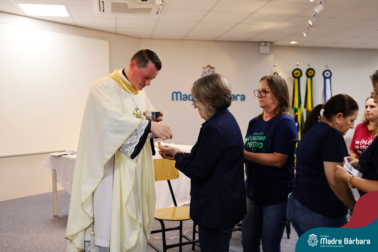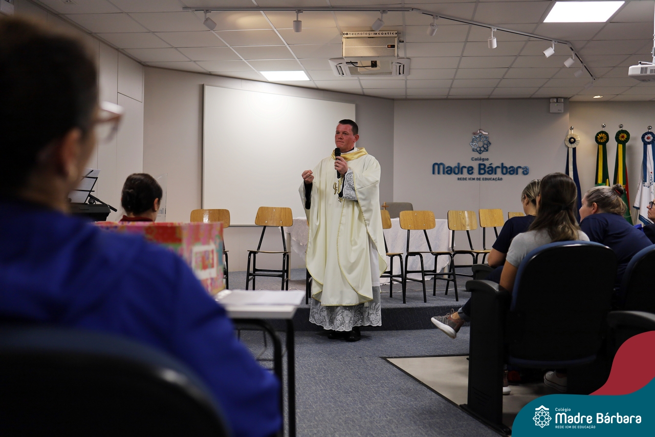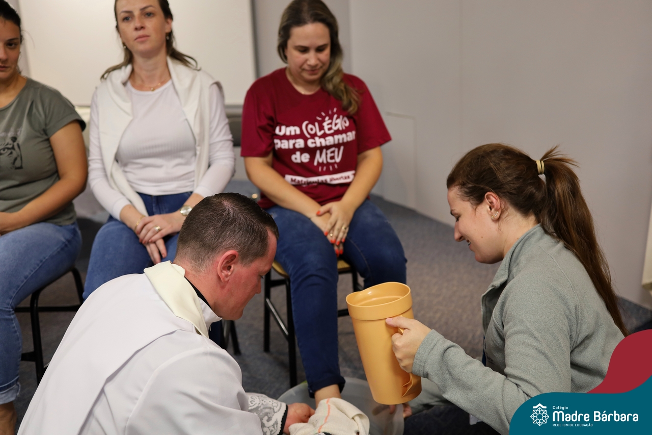 Na noite de terça-feira (8) o Serviço de Pastoral Escolar e o Colégio Madre Bárbara – Rede ICM realizaram a tradicional Celebração de Páscoa para os colaboradores. A missa, celebrada pelo Padre Ezequiel, de Cruzeiro do Sul, contou com a leitura do Êxodo, momento do lava-pés, Círio Pascal com luzes desligados, reflexão e comunhão. Agradecemos a presença dos profissionais neste momento de fé e agradecimento.