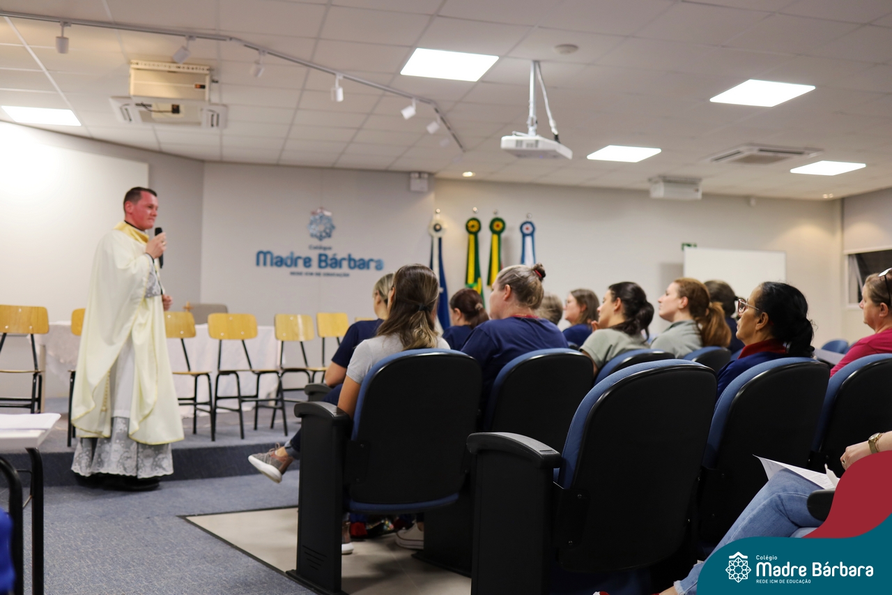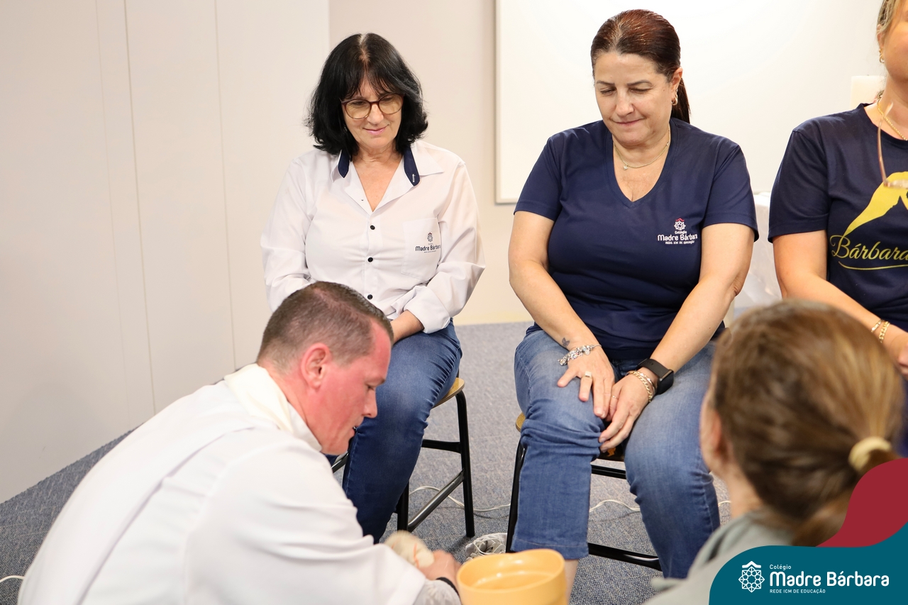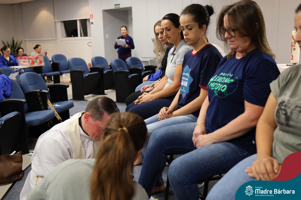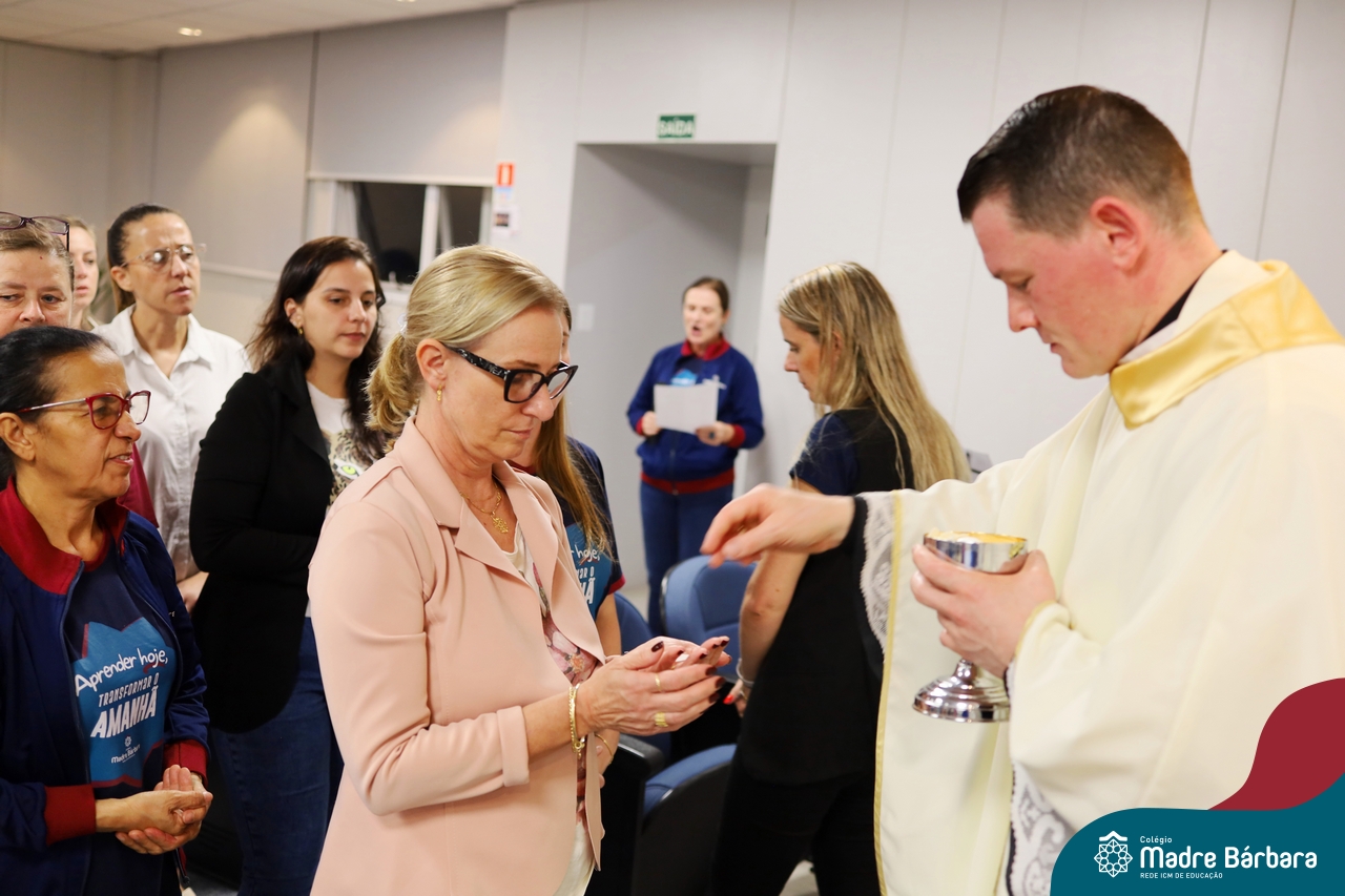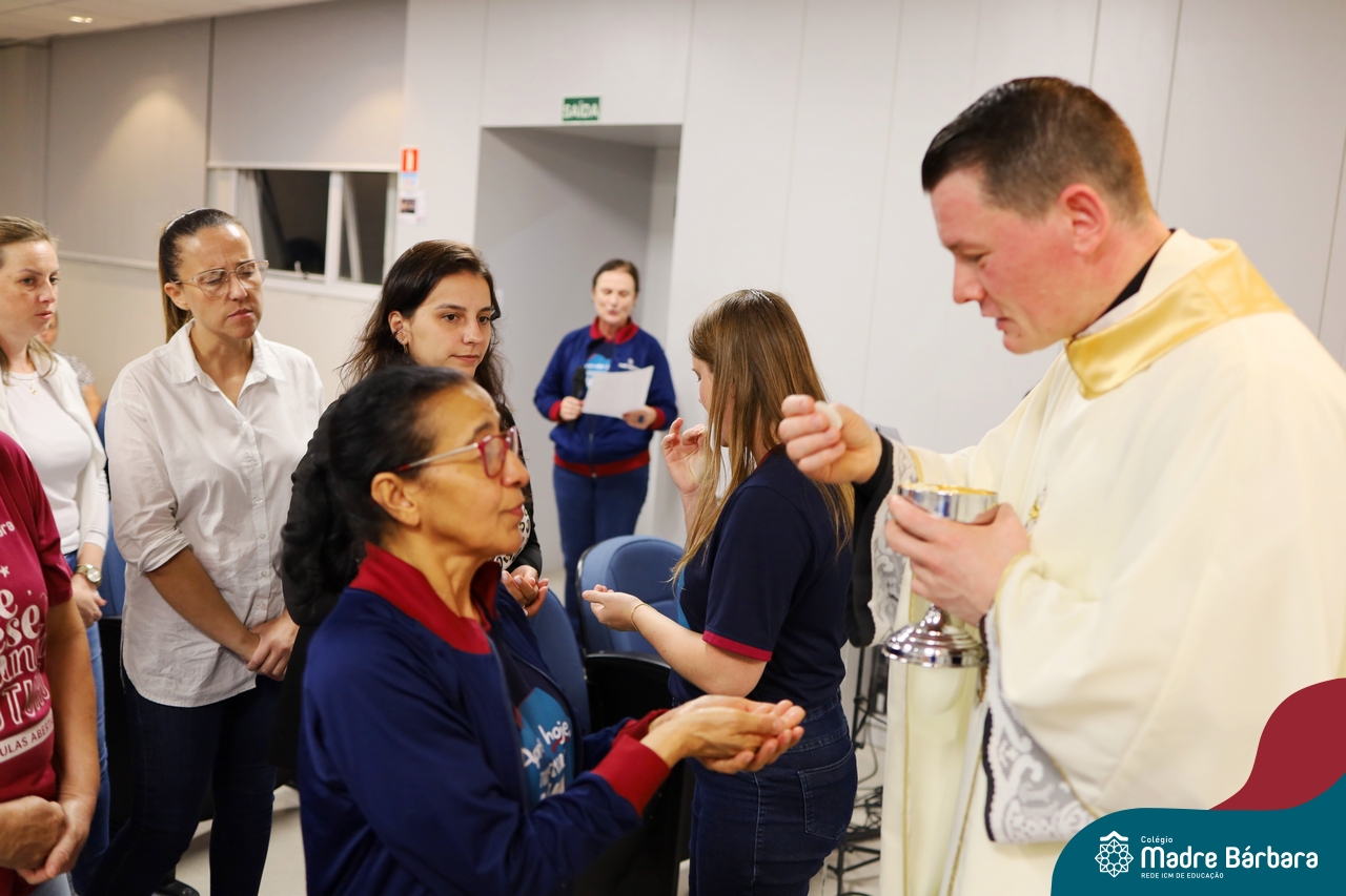 Na noite de terça-feira (8) o Serviço de Pastoral Escolar e o Colégio Madre Bárbara – Rede ICM realizaram a tradicional Celebração de Páscoa para os colaboradores. A missa, celebrada pelo Padre Ezequiel, de Cruzeiro do Sul, contou com a leitura do Êxodo, momento do lava-pés, Círio Pascal com luzes desligados, reflexão e comunhão. Agradecemos a presença dos profissionais neste momento de fé e agradecimento.