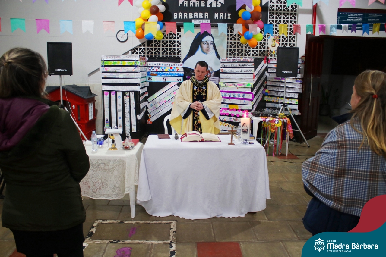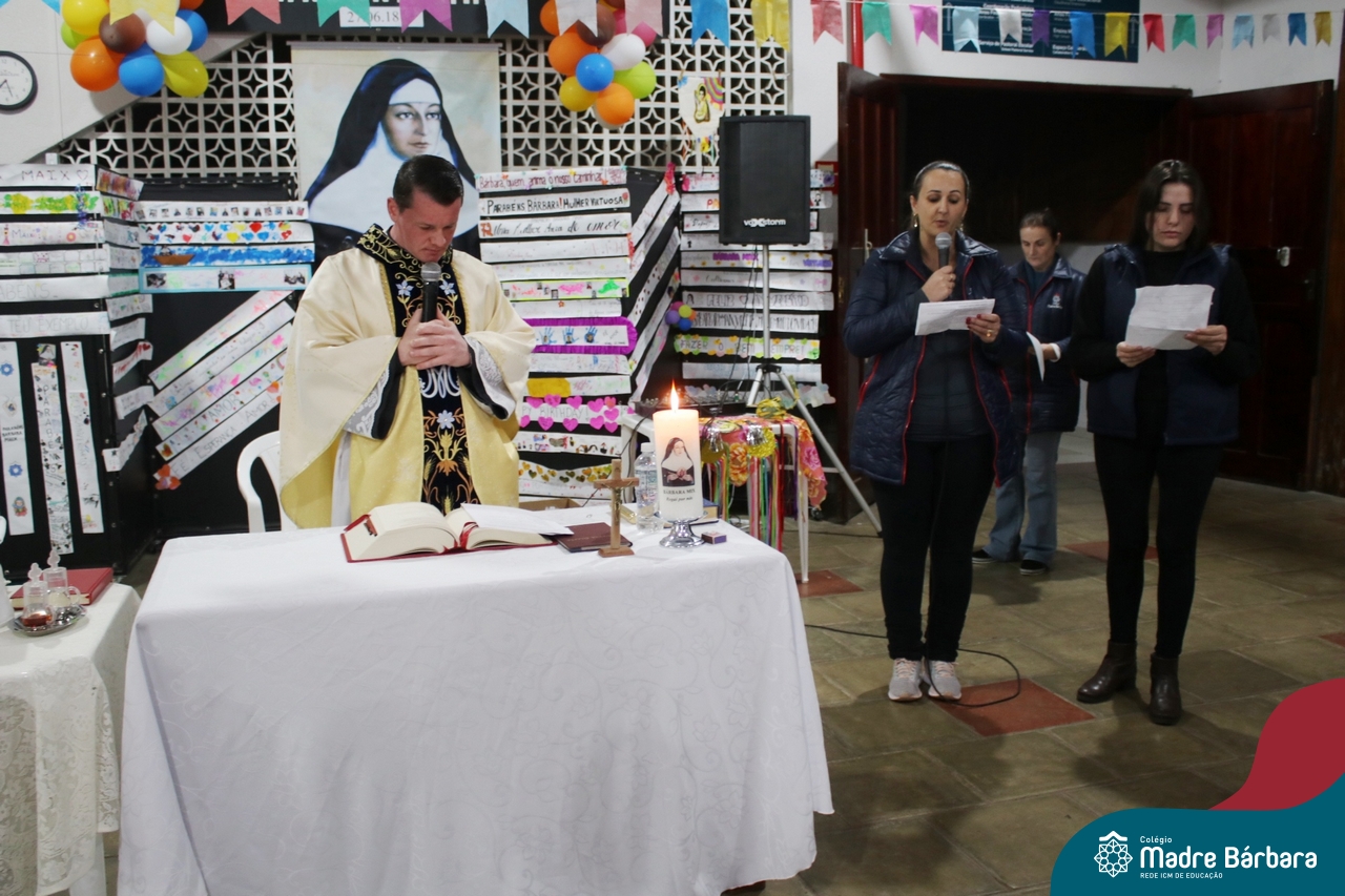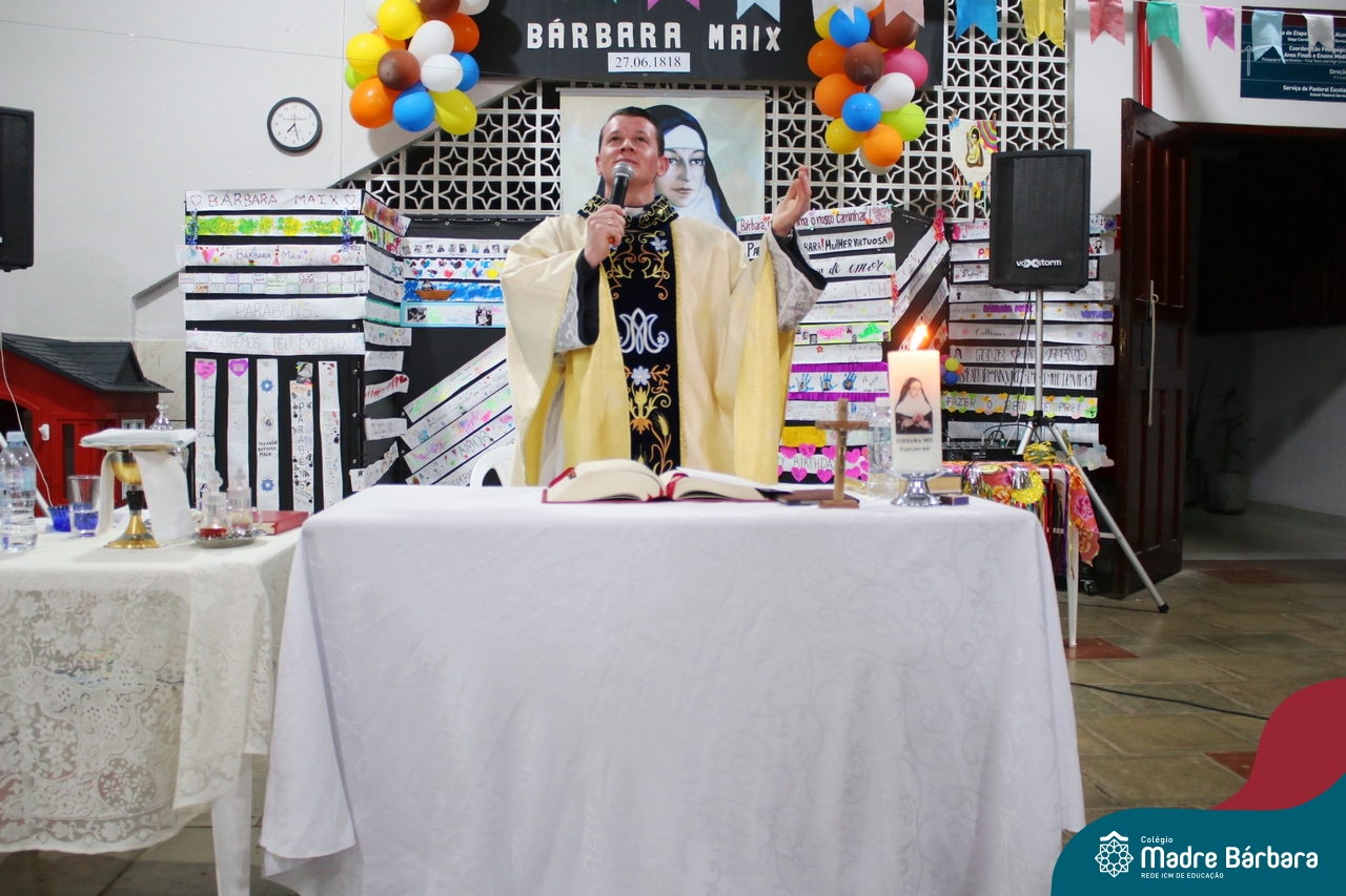 Na noite de quinta-feira (27.06) o Colégio Madre Bárbara – Rede ICM realizou uma Celebração em Homenagem ao Aniversário de 206 anos da nossa fundadora, a bem-aventurada Bárbara Maix. Bárbara muito nos ensina sobre amor e fé, seguindo viva em nossos pensamentos e reflexões diárias. Segue no nome de nossa instituição, nos nossos espaços e em nossos corações. Somos imensamente gratos a Bárbara por nos dar força diária para encarar nossos desafios com ânimo, coragem e determinação. O Padre Ezequiel, que celebrou a missa também esteve abençoando as salas e espaços da Educação Infantil, atingidos pela enchente.