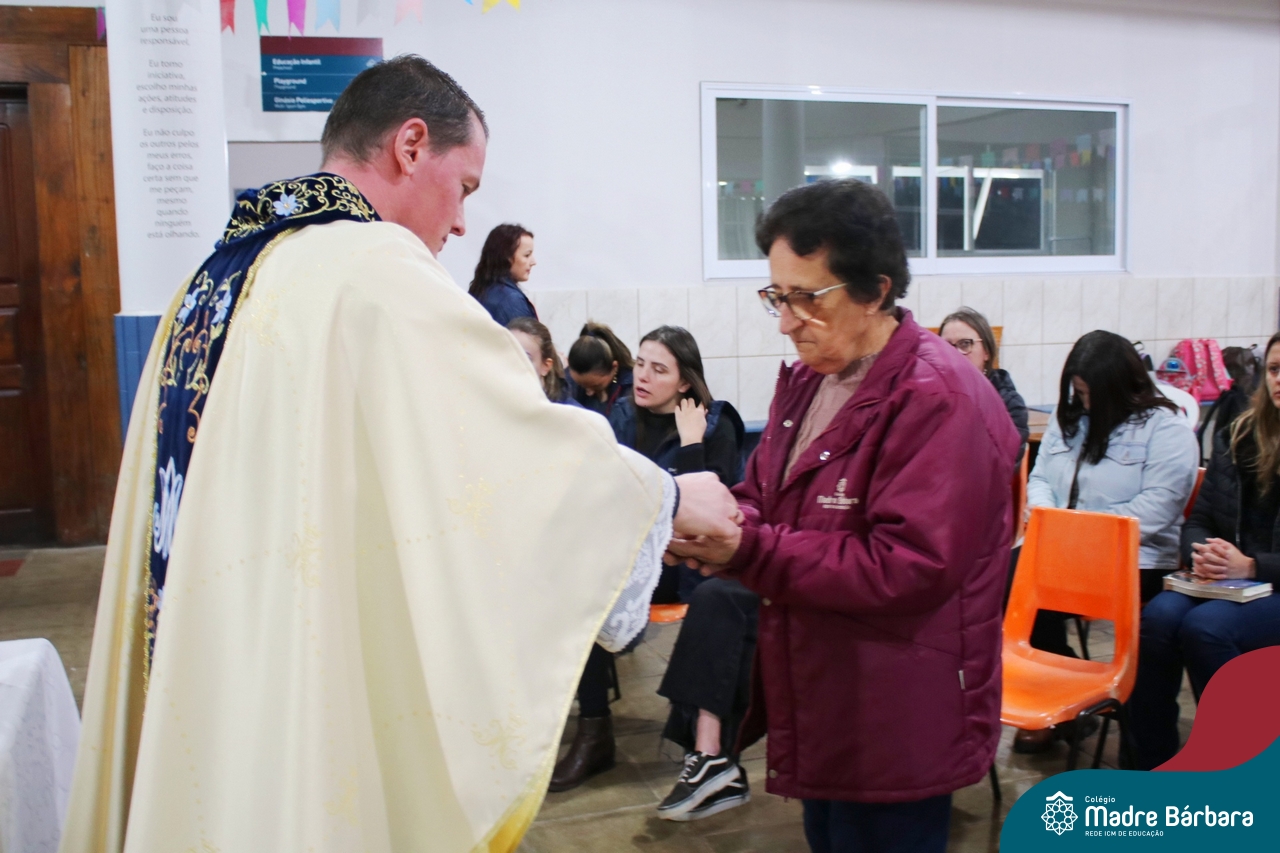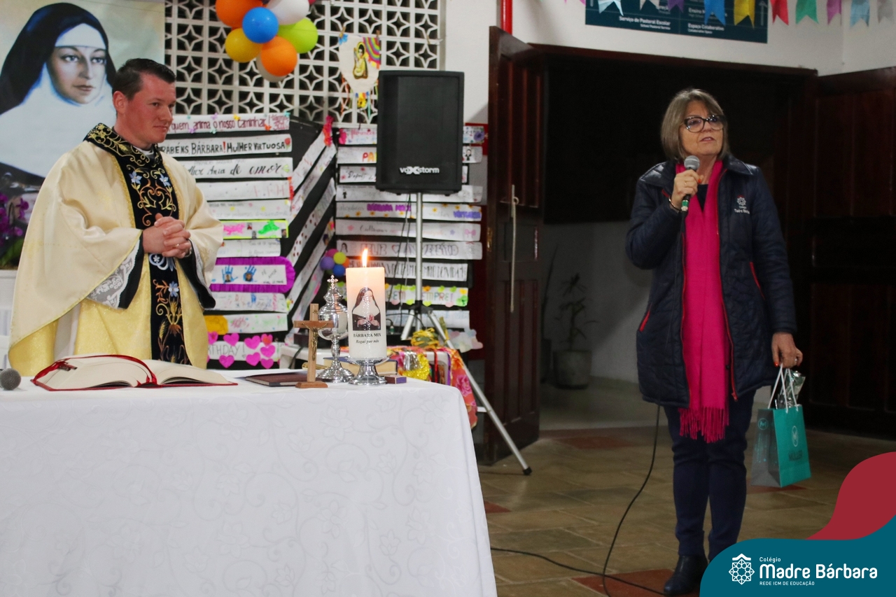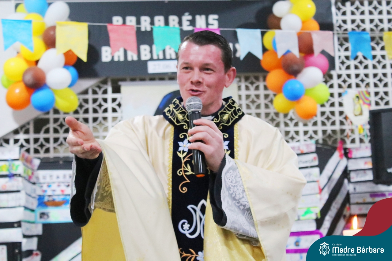 Na noite de quinta-feira (27.06) o Colégio Madre Bárbara – Rede ICM realizou uma Celebração em Homenagem ao Aniversário de 206 anos da nossa fundadora, a bem-aventurada Bárbara Maix. Bárbara muito nos ensina sobre amor e fé, seguindo viva em nossos pensamentos e reflexões diárias. Segue no nome de nossa instituição, nos nossos espaços e em nossos corações. Somos imensamente gratos a Bárbara por nos dar força diária para encarar nossos desafios com ânimo, coragem e determinação. O Padre Ezequiel, que celebrou a missa também esteve abençoando as salas e espaços da Educação Infantil, atingidos pela enchente.