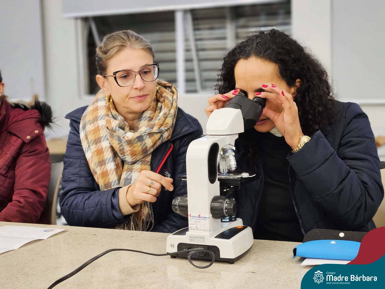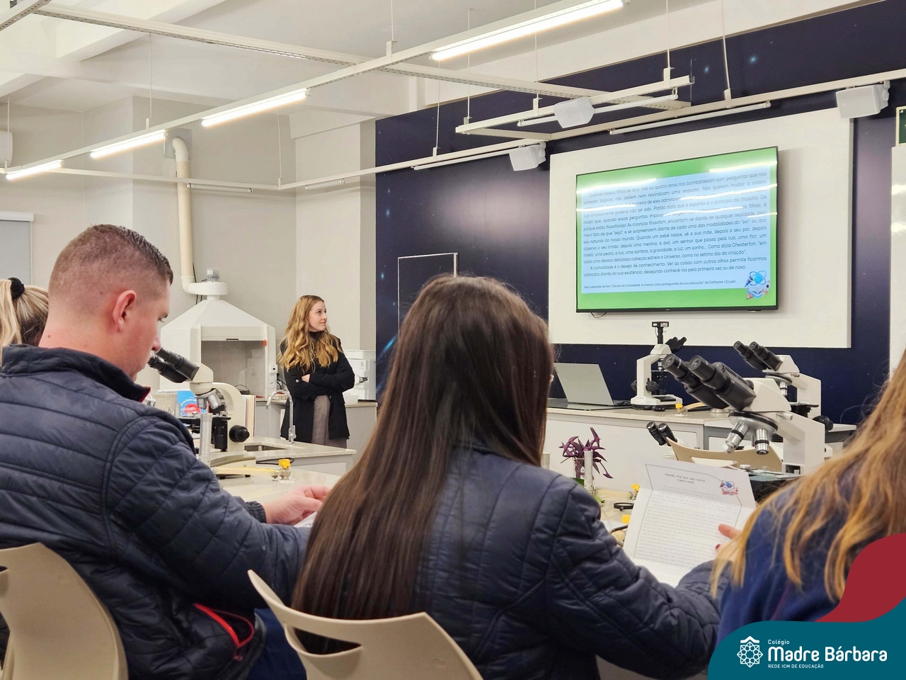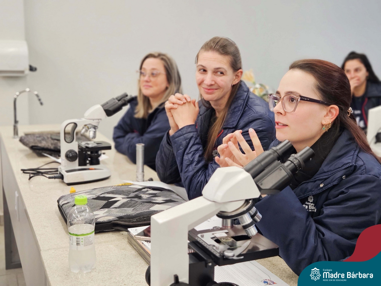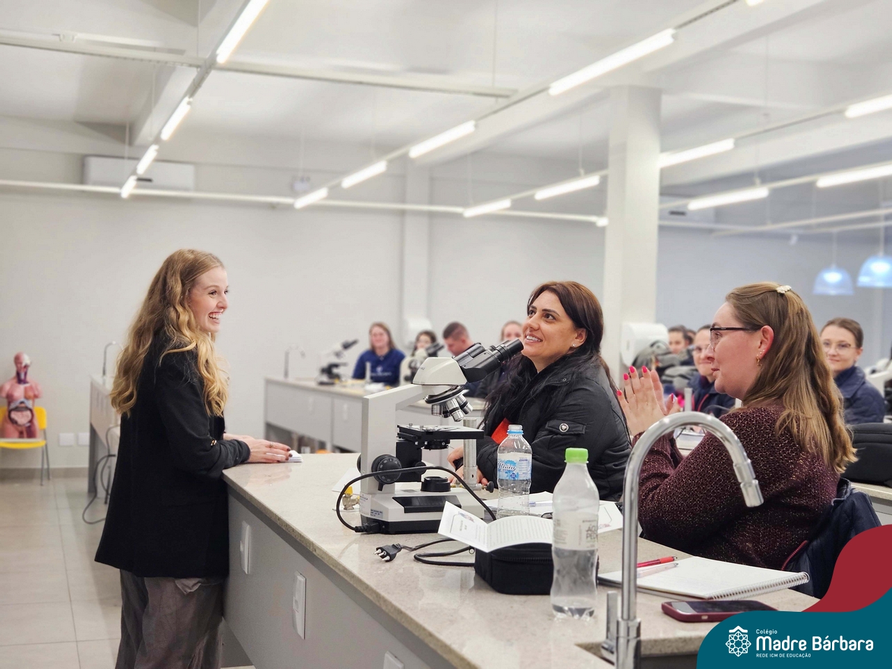 Na noite de segunda-feira, dia 09.06, os professores dos Anos Iniciais participaram uma formação especial, dando início aos estudos do tema “Ciências para além da sala de aula”. O Colégio Madre Bárbara contou com a participação da bióloga e professora Camila Rockenbach da Silva, que conduziu um momento rico em reflexões e práticas. Foi uma oportunidade valiosa para repensar o ensino de Ciências de forma mais dinâmica, viva e conectada com o cotidiano das crianças. As formações para professores terão continuidade durante o ano com qualificações em todas as áreas do conhecimento.