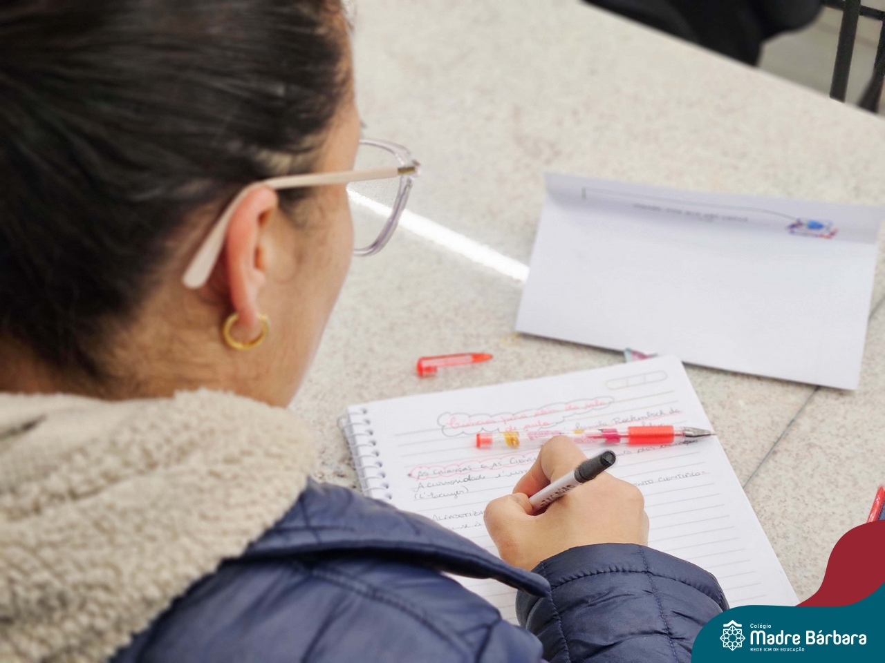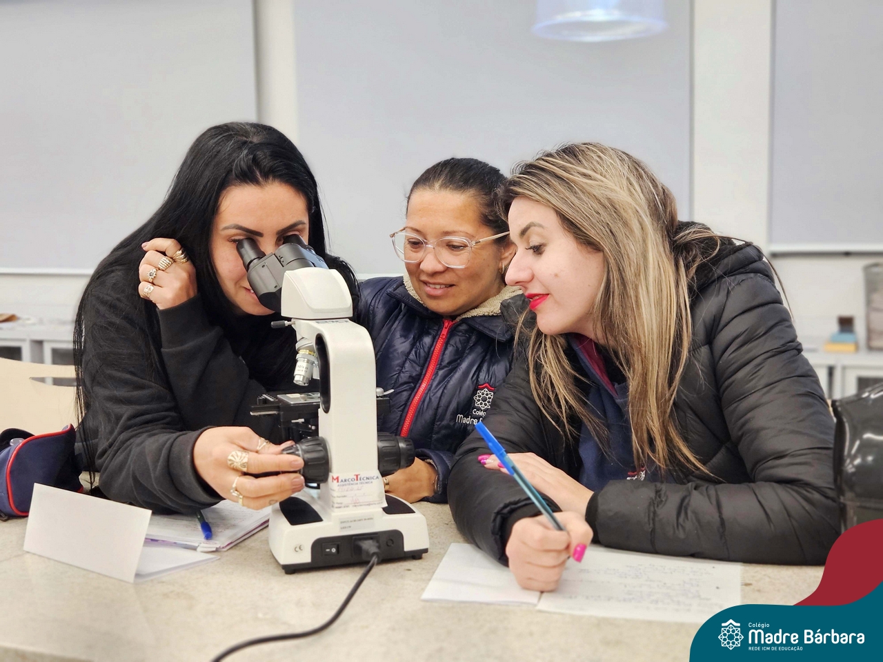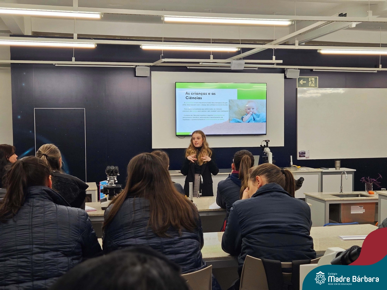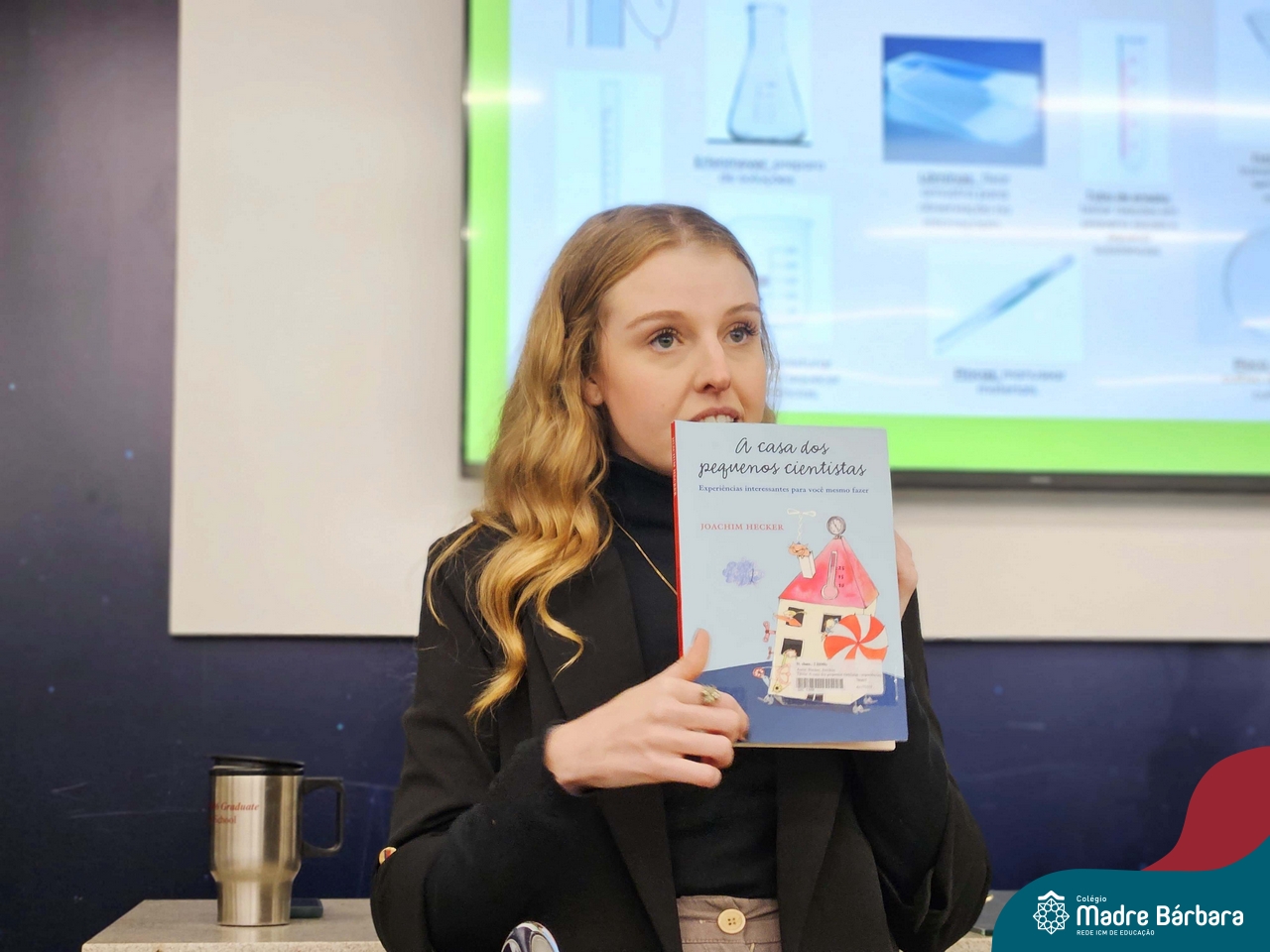 Na noite de segunda-feira, dia 09.06, os professores dos Anos Iniciais participaram uma formação especial, dando início aos estudos do tema “Ciências para além da sala de aula”. O Colégio Madre Bárbara contou com a participação da bióloga e professora Camila Rockenbach da Silva, que conduziu um momento rico em reflexões e práticas. Foi uma oportunidade valiosa para repensar o ensino de Ciências de forma mais dinâmica, viva e conectada com o cotidiano das crianças. As formações para professores terão continuidade durante o ano com qualificações em todas as áreas do conhecimento.