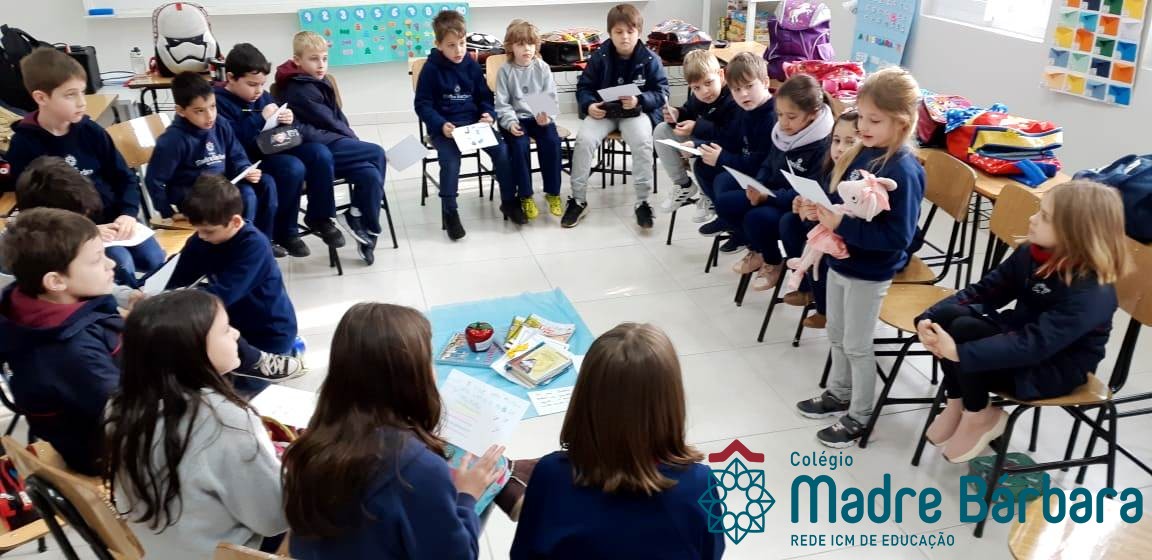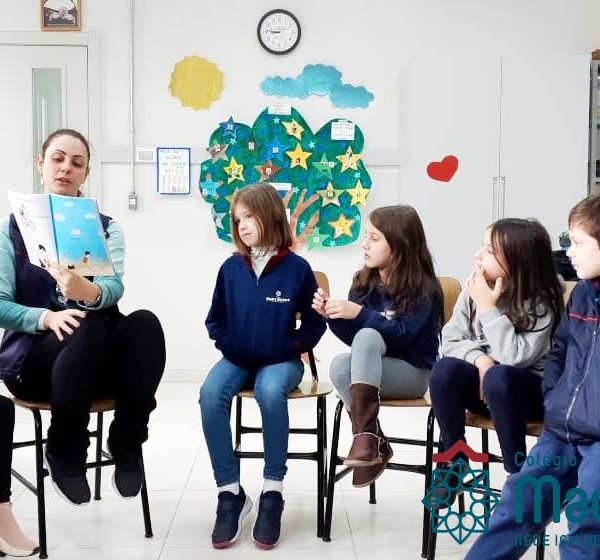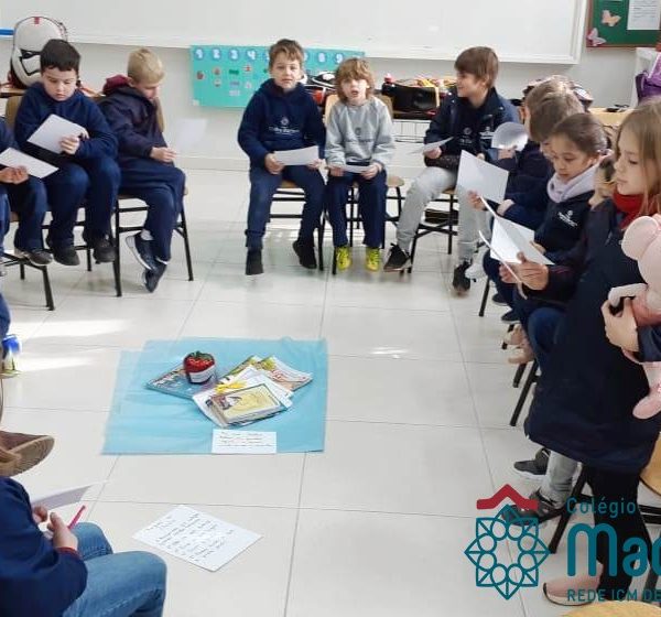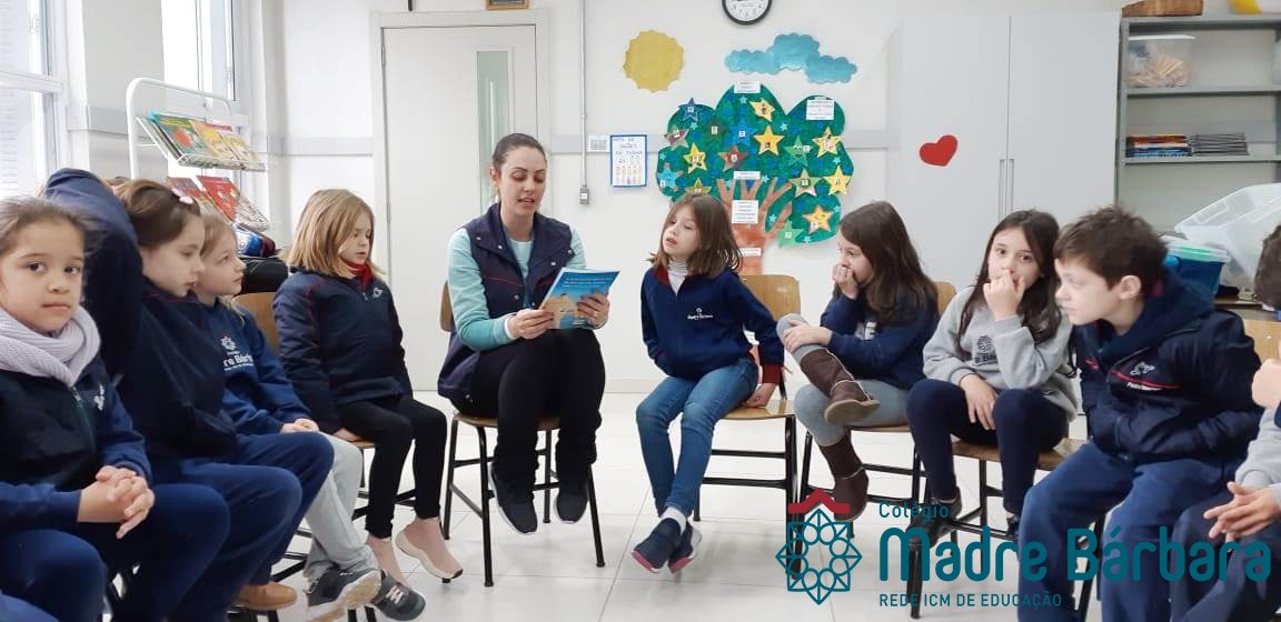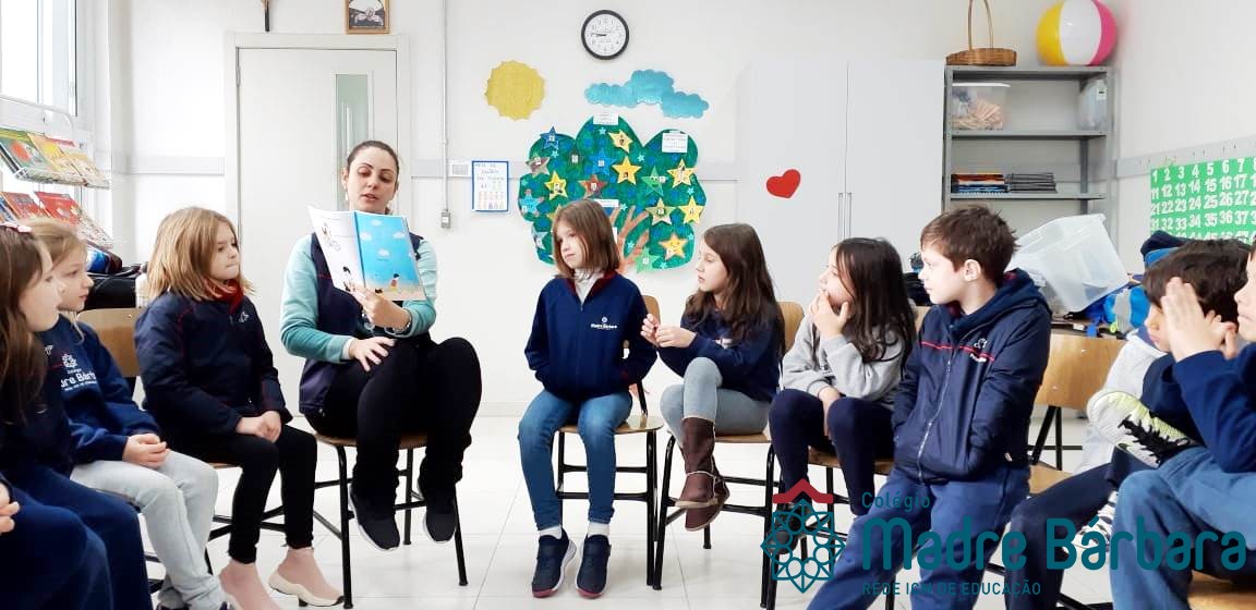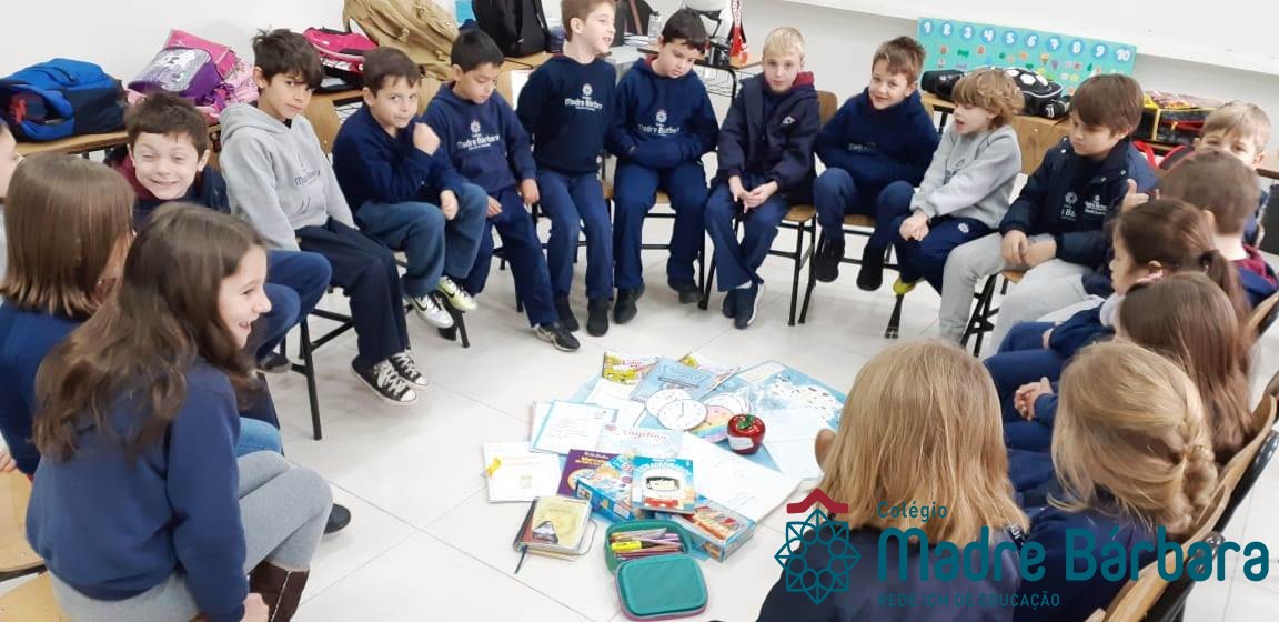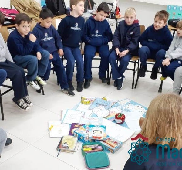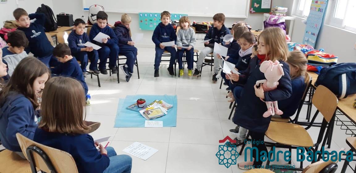 Com o objetivo de criar momentos nos quais as crianças possam estar em conexão umas com as outras, aprimorem cada vez mais a escuta, aprendam a expor suas ideias com mais clareza diante do grupo e respeitem a opinião dos colegas, a professora Caroline Bozzetto de Souza, propôs para a turma 21 do Colégio Madre Bárbara, um trabalho em que utilizou o “Círculo de Construção de Paz”. O Círculo enfatiza uma ideia de igualdade e conectividade, onde todos se enxergam e tem oportunidade de ouvir e falar. Para abertura do círculo todos colocaram como estavam se sentindo naquele momento, em seguida a professora contou a história: “SOMOS TODOS EXTRAORDINÁRIOS” da escritora : R.J. Palacio. Através da contação da história, iniciaram uma reflexão onde juntos decidiram que sempre que estiverem perante uma situação de conflito ou diferenças, primeiramente deverão se colocar no lugar do outro.