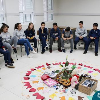Na manhã dessa sexta-feira (27.09) foi realizado o Círculo de Construção de Paz com a turma 52, mediado pelas orientadoras educacionais Anice Maria Nunes e Odete Maria  Spessatto e acompanhado pela professora Daniela Regert Secco. O centro do círculo contemplou a presença das famílias. Os alunos trouxeram objetos importantes para representar suas famílias .
