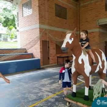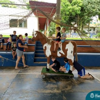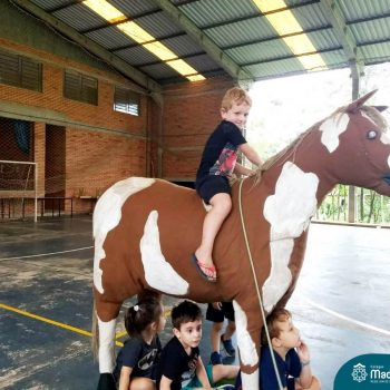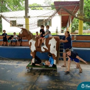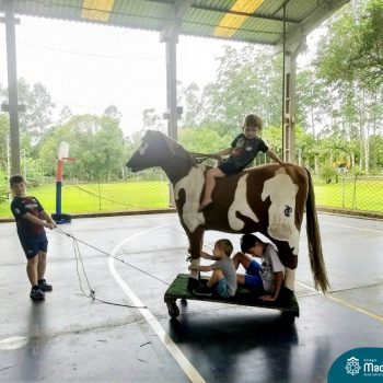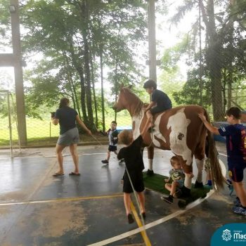 Atividades variadas e muita diversão, assim tem sido os dias do Projeto “CMB: Edição Férias”. Muitas atrações marcaram essa semana, como banho de mangueira, passeio a “cavalo”, contato com os animais, plantação de chás e temperos, além do Master Chefinho com uma saborosa receita de pão doce, entre tantas outras!