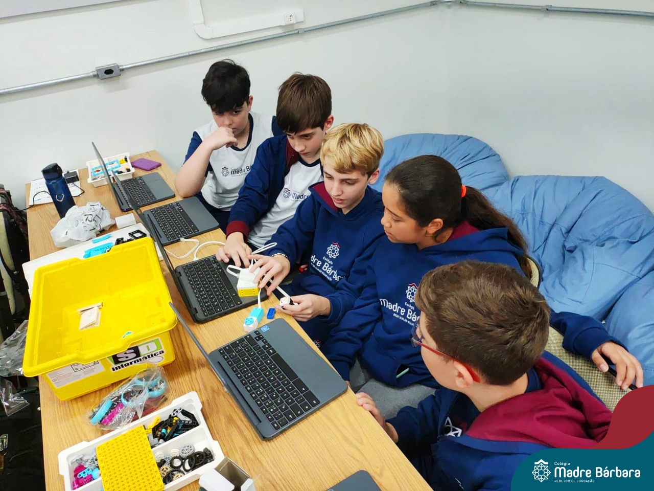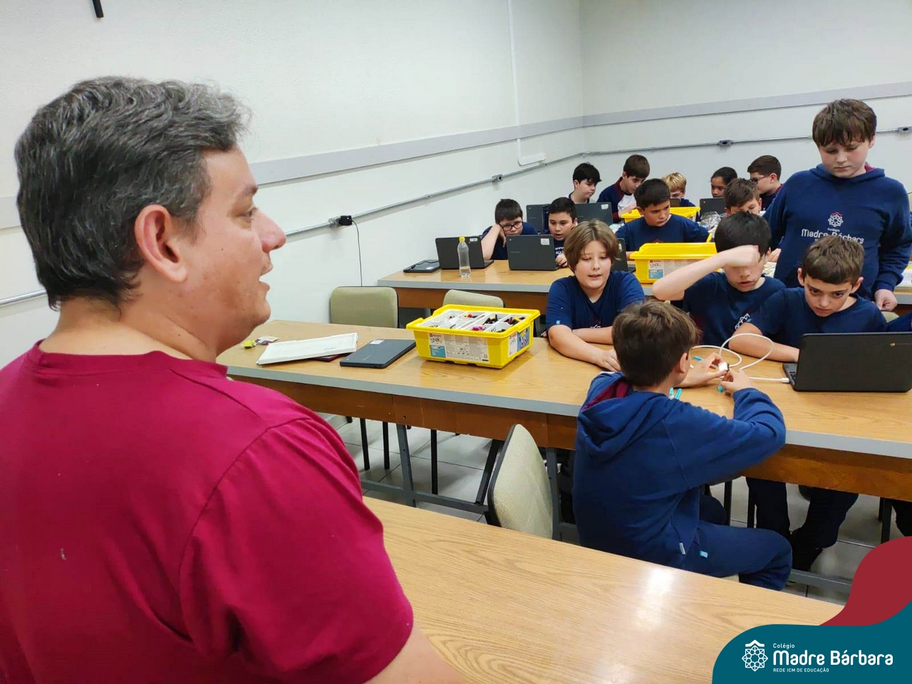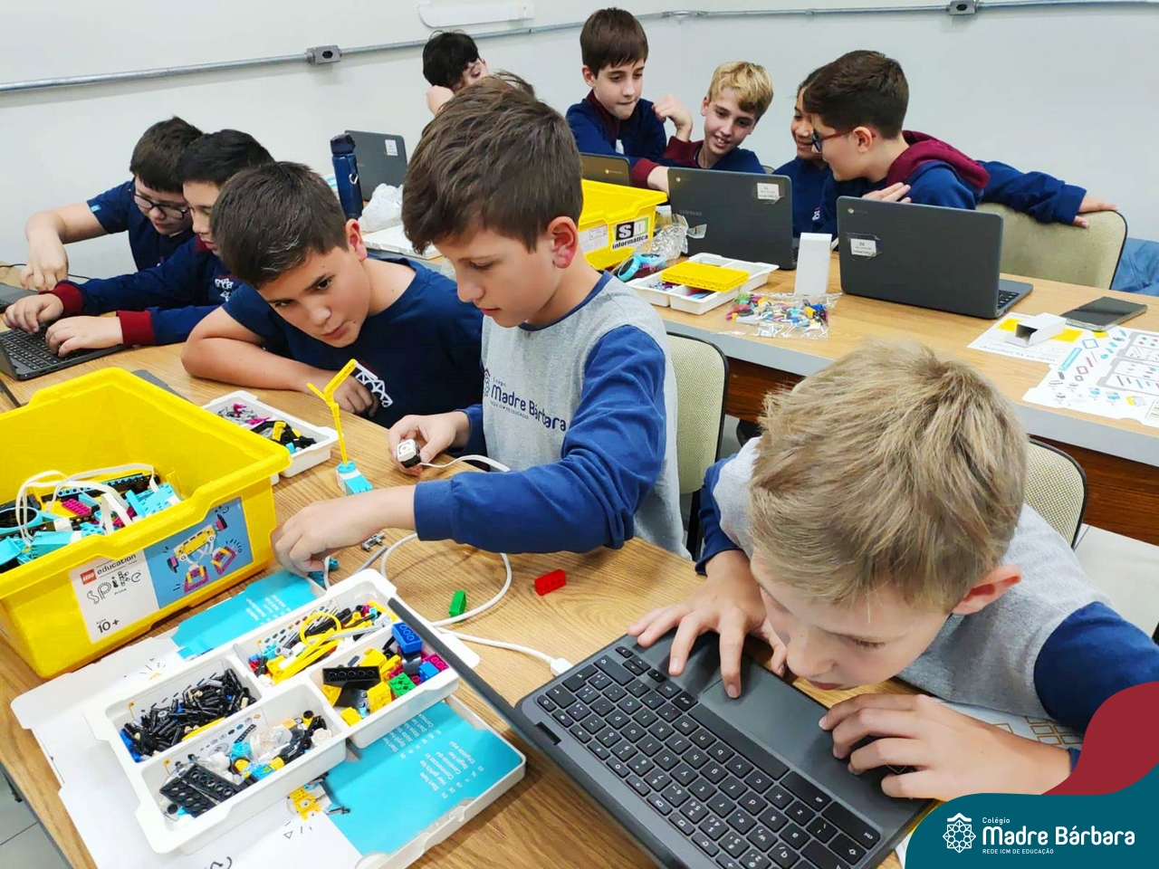 Na tarde desta quinta-feira (03.08) estudantes de 6ºs anos do Ensino Fundamental – Anos Finais iniciaram a oficina de Robótica Educacional, dentro da Atividade Extracurricular. Serão 13 encontros com a duração de 2h por semana, até o mês de novembro, ministrados pelo responsável pela TI do Colégio Madre Bárbara, Elizandro Becker. As oficinas ensinarão desde projetos simples até possibilidades ilimitadas de design criativo, o SPIKE™ Prime, ajudando os alunos a aprenderem o essencial do STEAM e a desenvolverem as habilidades do século XXI, necessárias para despertar as mentes inovadoras do amanhã, com muita diversão!