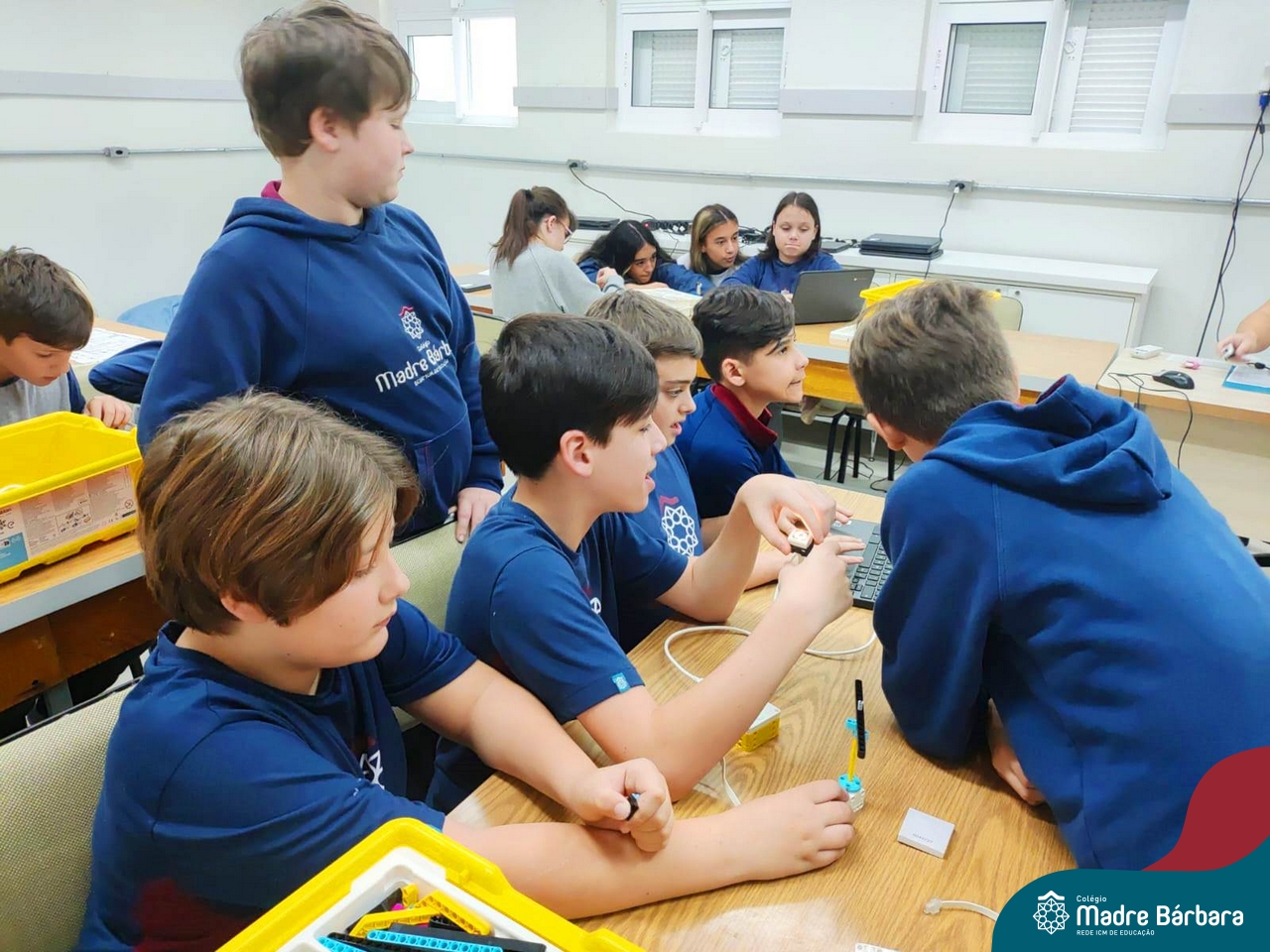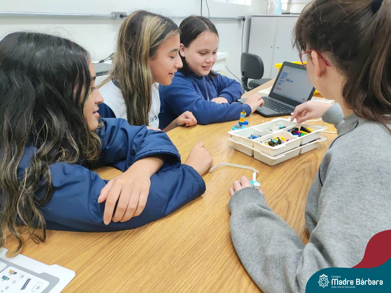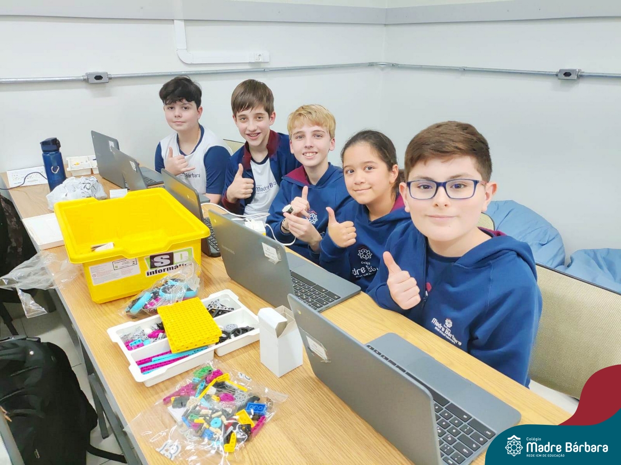 Na tarde desta quinta-feira (03.08) estudantes de 6ºs anos do Ensino Fundamental – Anos Finais iniciaram a oficina de Robótica Educacional, dentro da Atividade Extracurricular. Serão 13 encontros com a duração de 2h por semana, até o mês de novembro, ministrados pelo responsável pela TI do Colégio Madre Bárbara, Elizandro Becker. As oficinas ensinarão desde projetos simples até possibilidades ilimitadas de design criativo, o SPIKE™ Prime, ajudando os alunos a aprenderem o essencial do STEAM e a desenvolverem as habilidades do século XXI, necessárias para despertar as mentes inovadoras do amanhã, com muita diversão!
