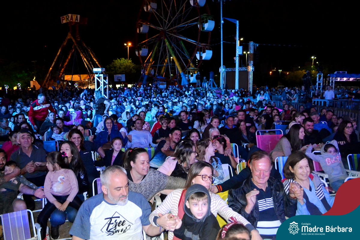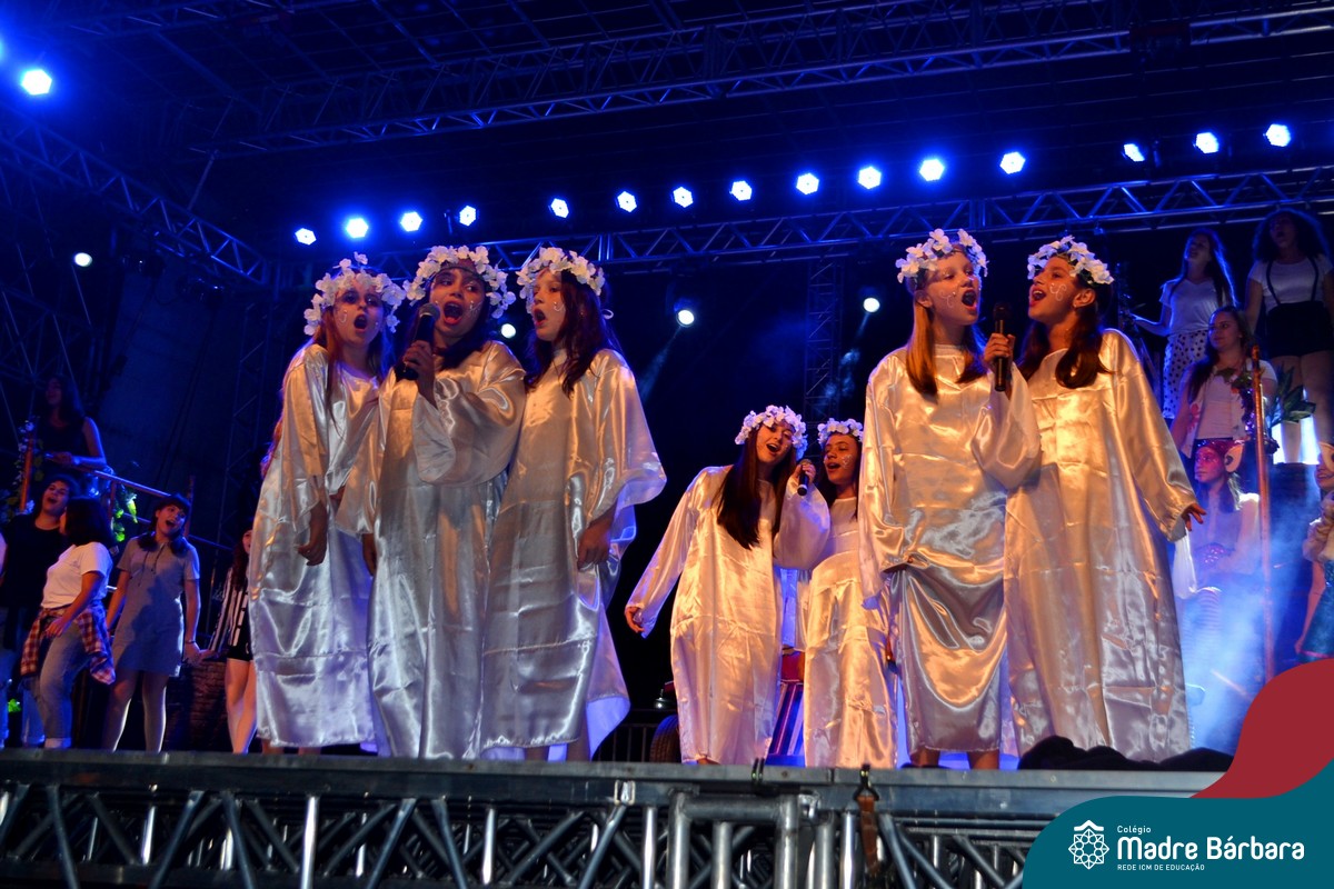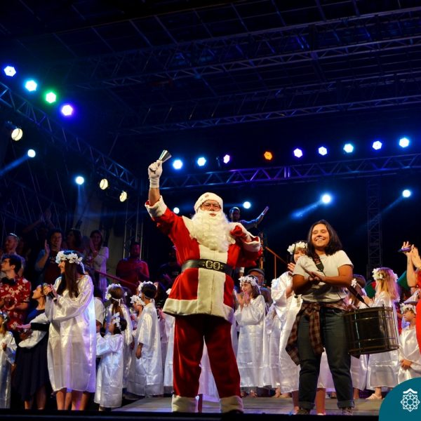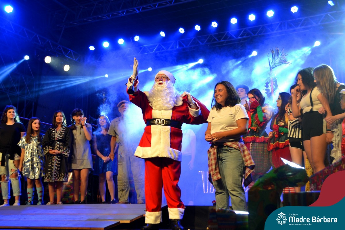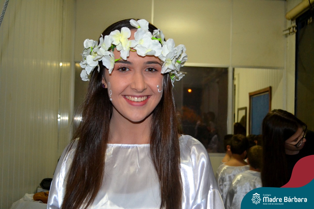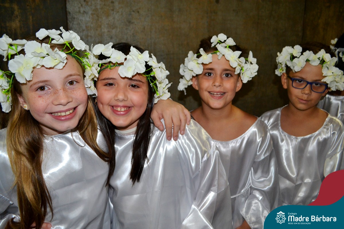 Na noite de sábado (23.11) alguns alunos do 2º ao 4º ano do Ensino Fundamental – Anos Iniciais, além do Grupo Vocal do Colégio Madre Bárbara – Rede ICM participaram do Espetáculo Expresso Natal, do Lajeado Brilha realizado pela CDL Lajeado e da Chegada do Papai Noel, dentro do Natal no Coração da Prefeitura Municipal de Lajeado no Parque Professor Theobaldo Dick. Os alunos do CMB estavam vestidos de anjos e cantaram dentro da cena, ensaiados pelo educador musical Ricardo Petter.