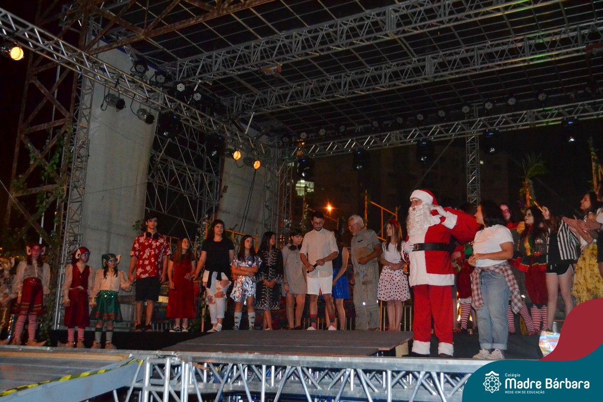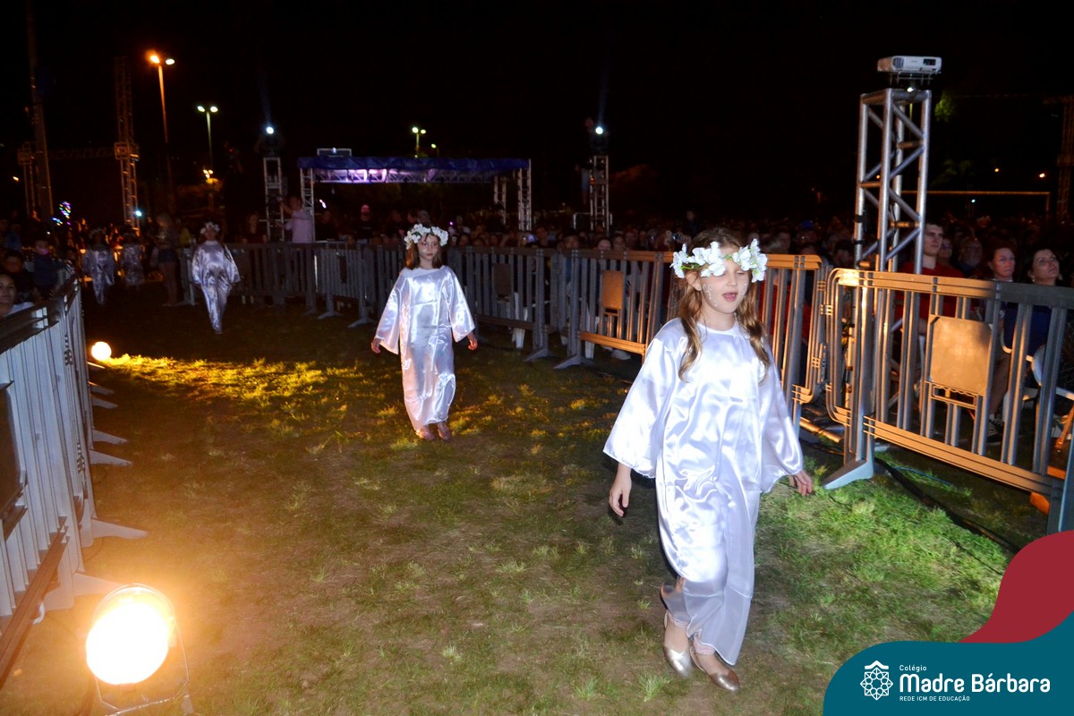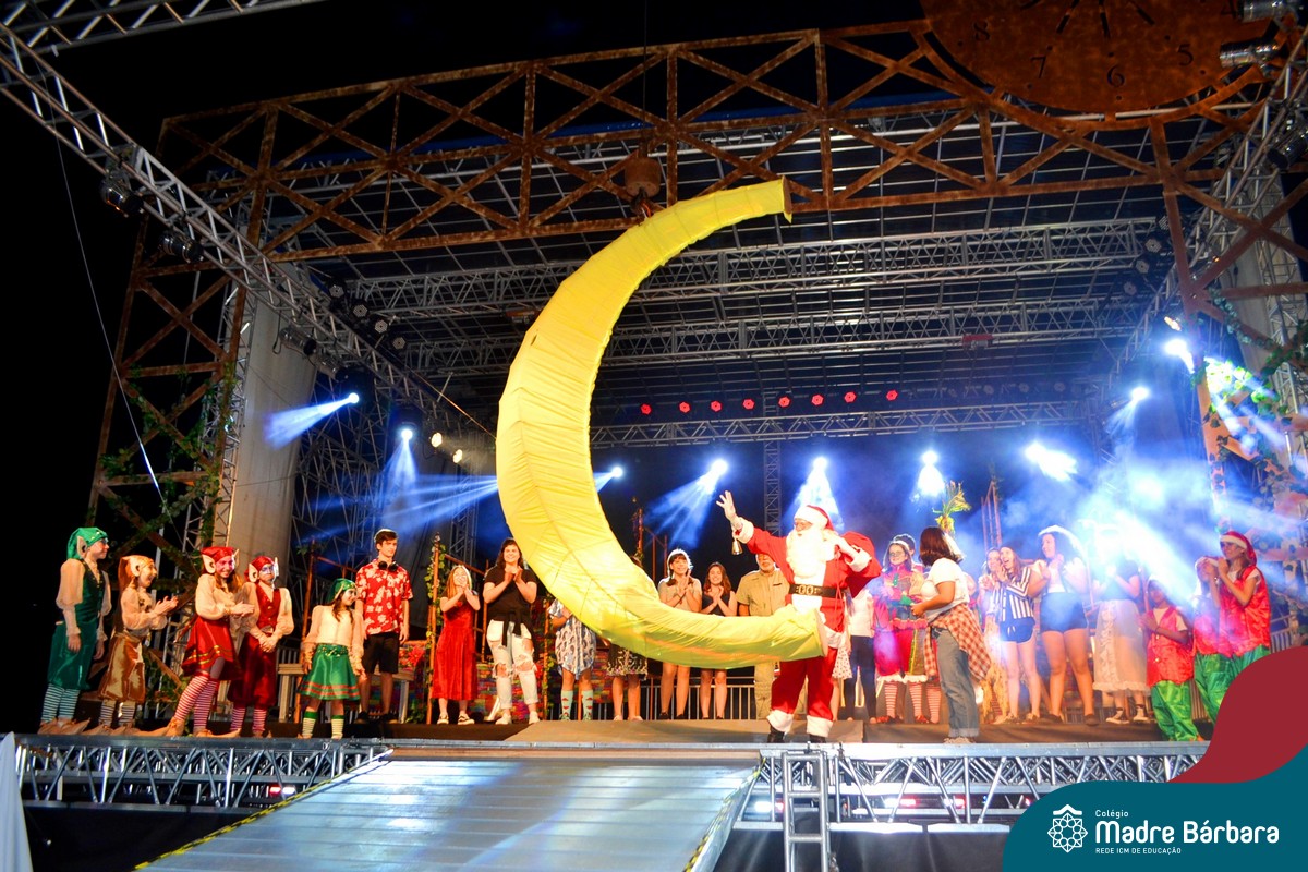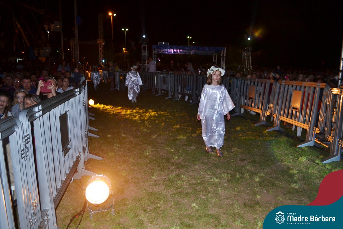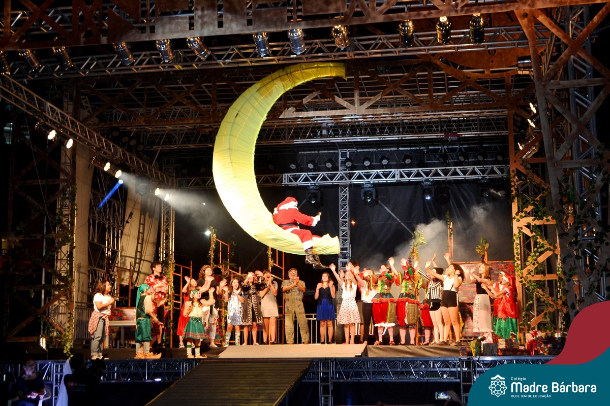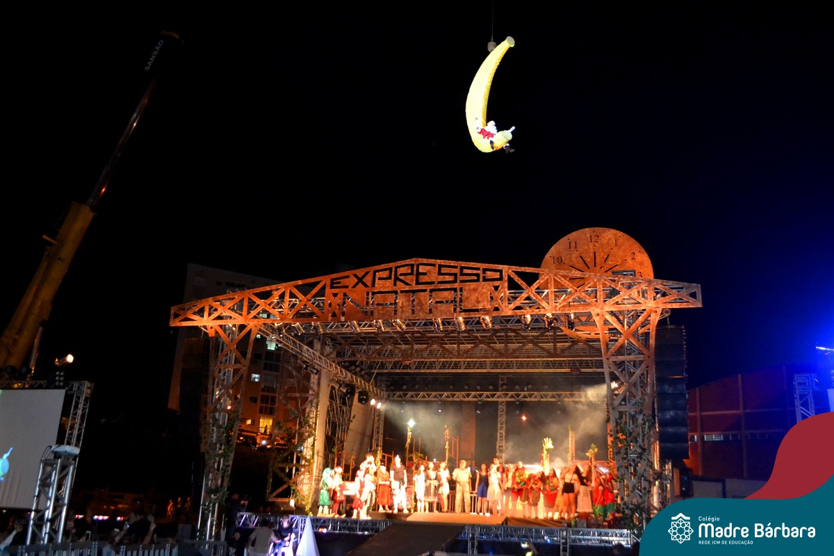 O “Expresso Natal: embarque nessa aventura”, teve a interpretação da história da menina Eva que revelou seus sonhos na companhia de amigos e os duendes. Um trem desceu do palco movido pela luz da lua e circulou próximo das pessoas com os alunos do CMB vestidos de anjos, abençoando o menino Jesus nos braços de José e Maria.