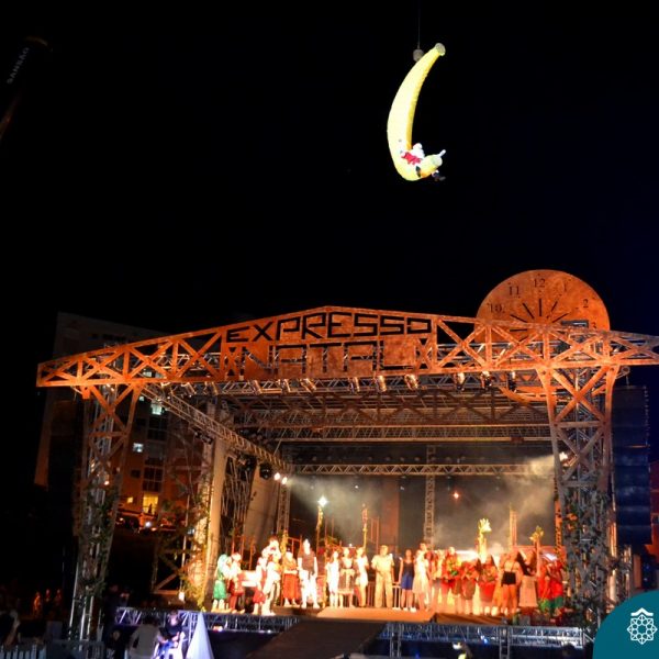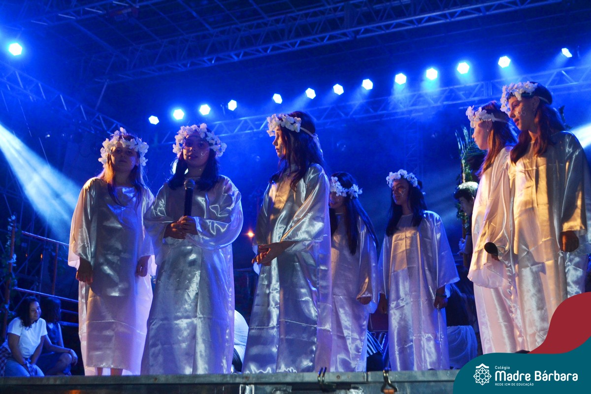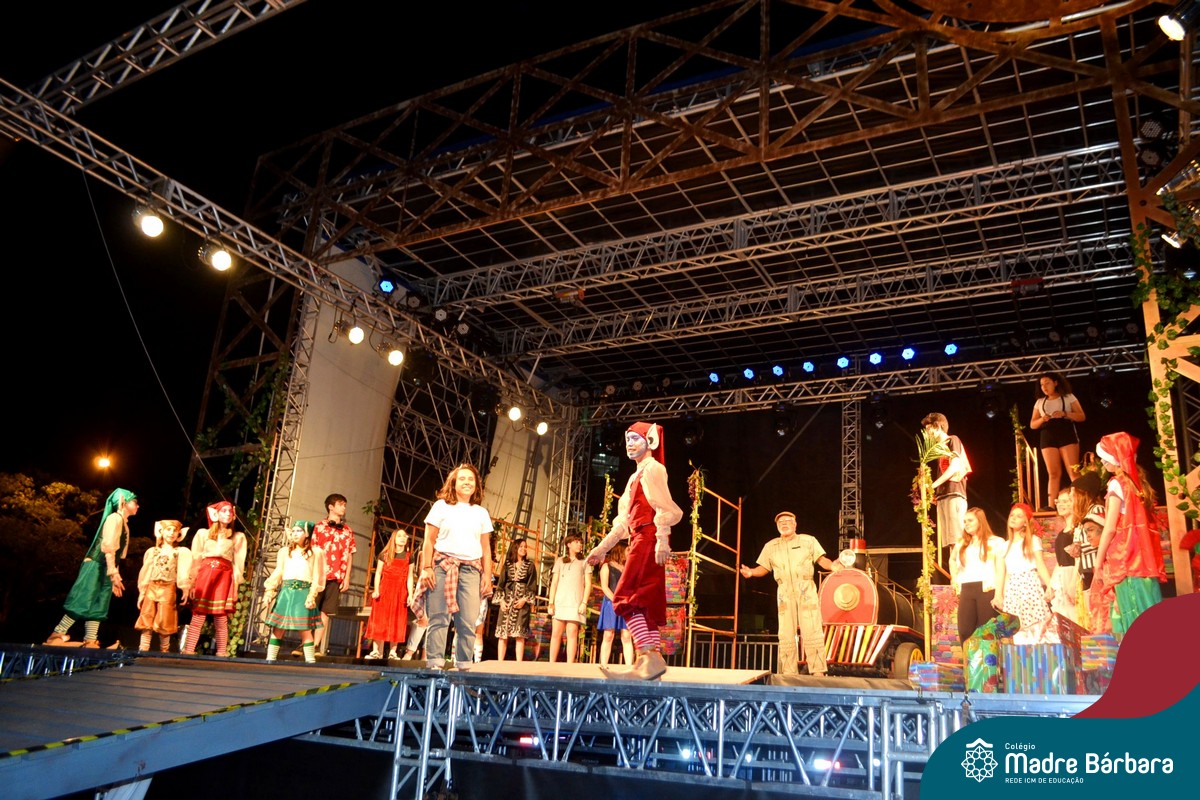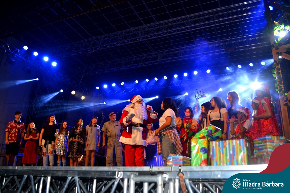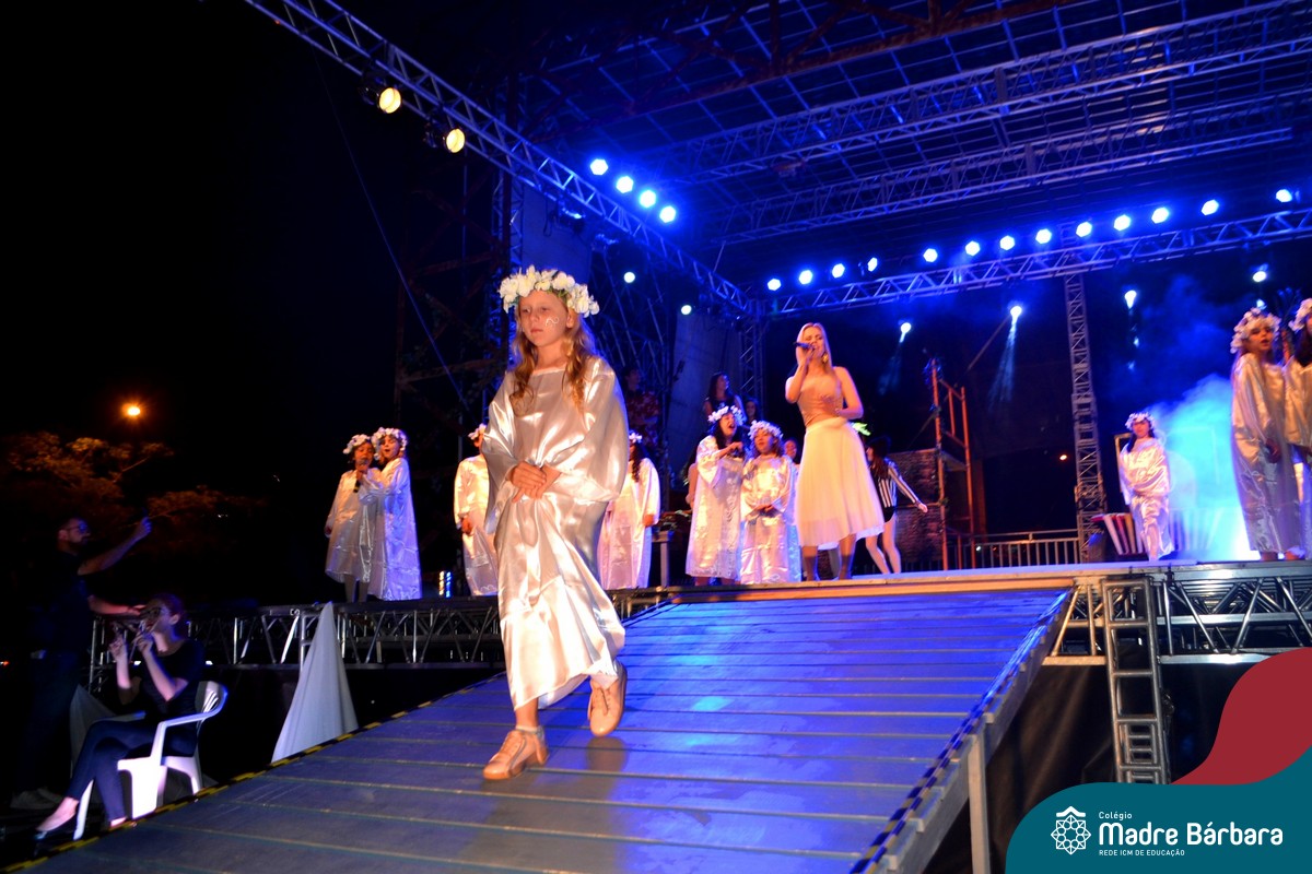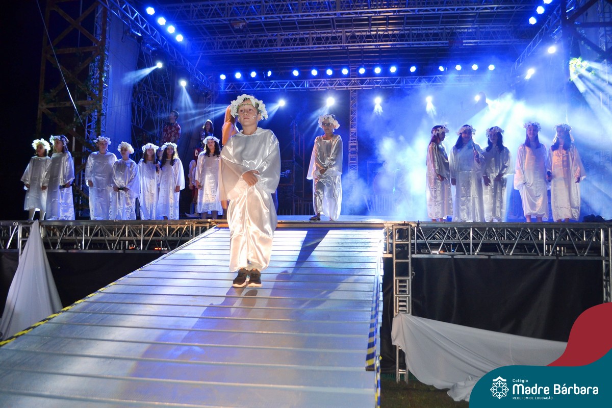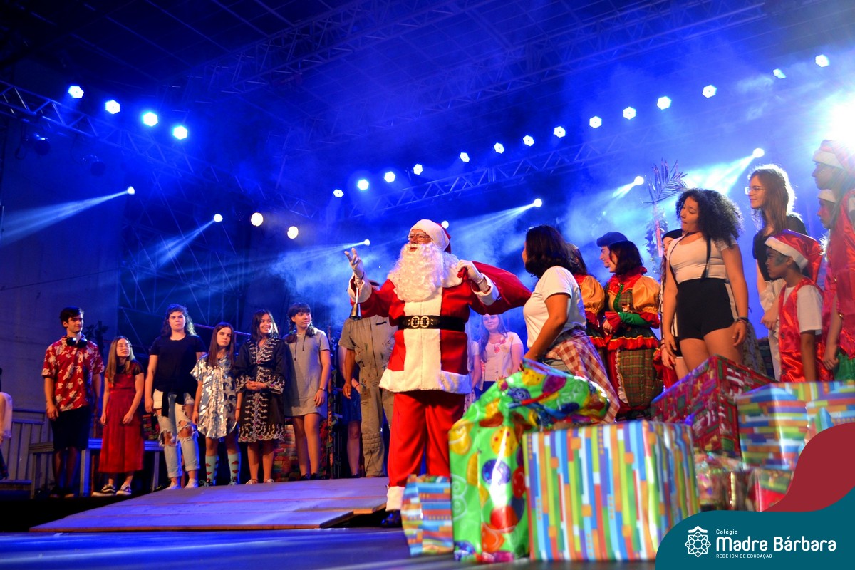 O “Expresso Natal: embarque nessa aventura”, teve a interpretação da história da menina Eva que revelou seus sonhos na companhia de amigos e os duendes. Um trem desceu do palco movido pela luz da lua e circulou próximo das pessoas com os alunos do CMB vestidos de anjos, abençoando o menino Jesus nos braços de José e Maria.