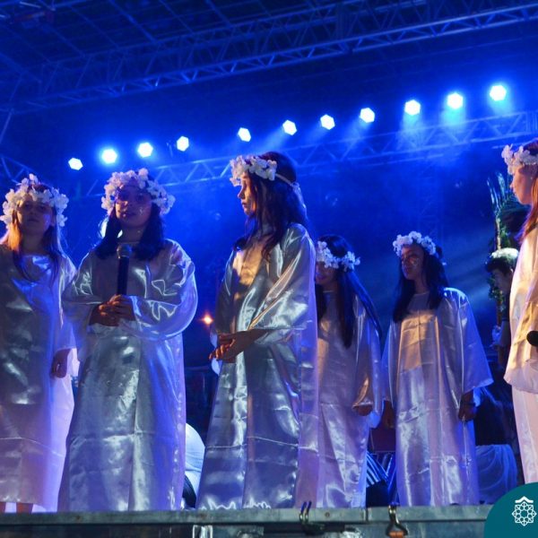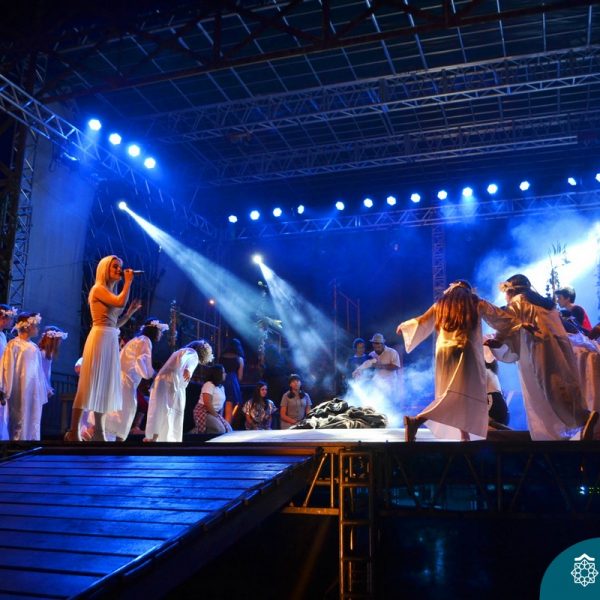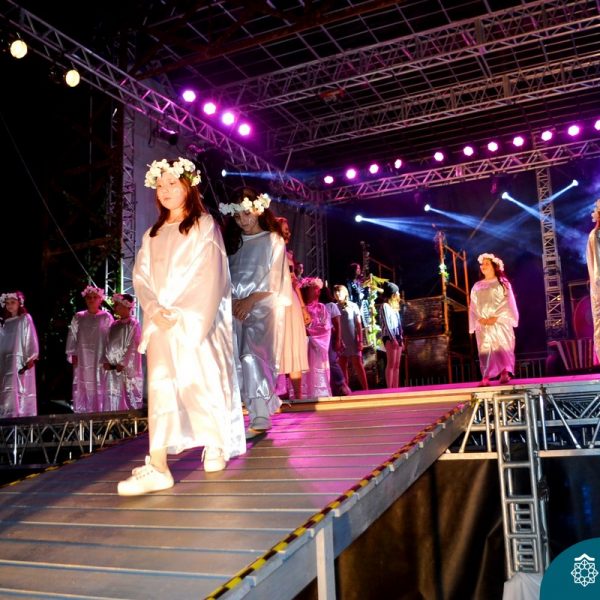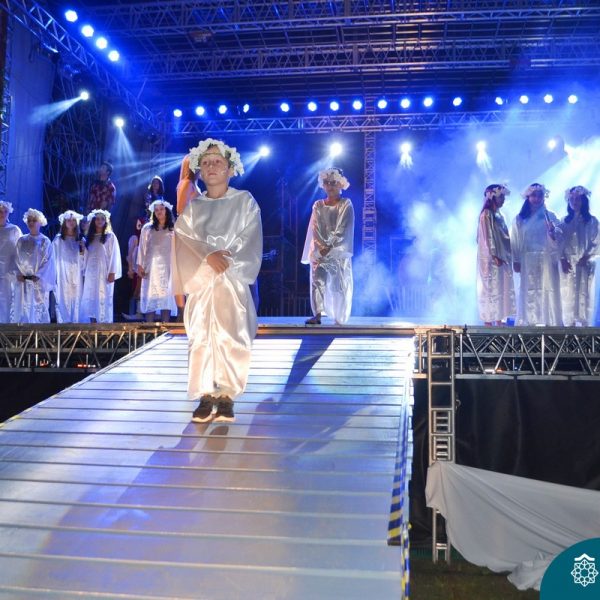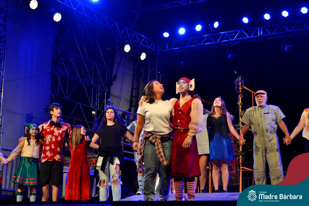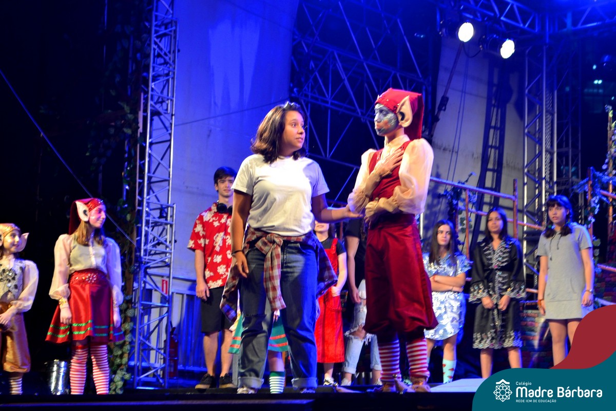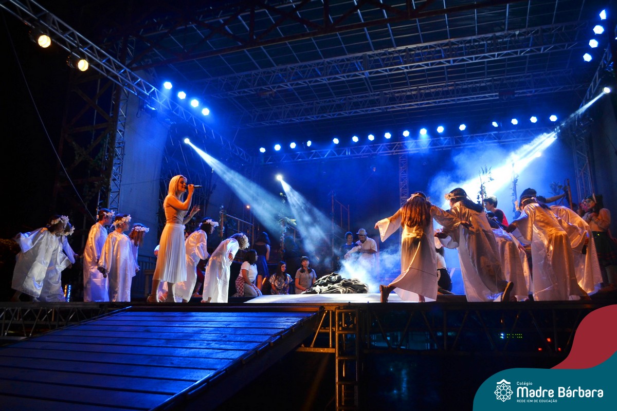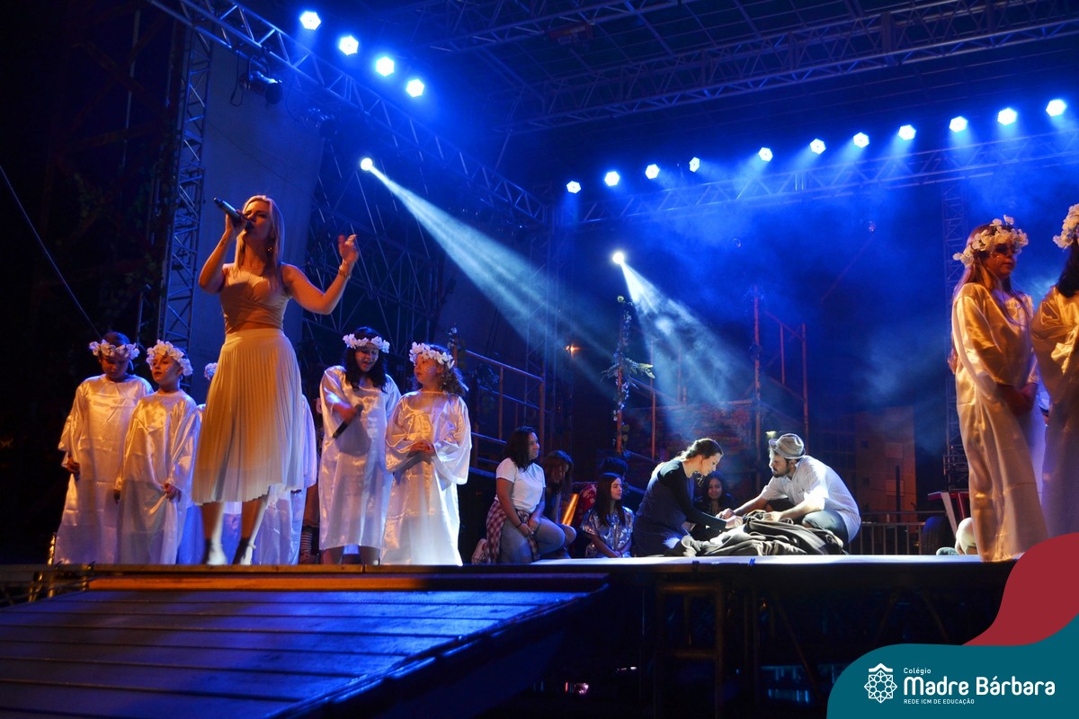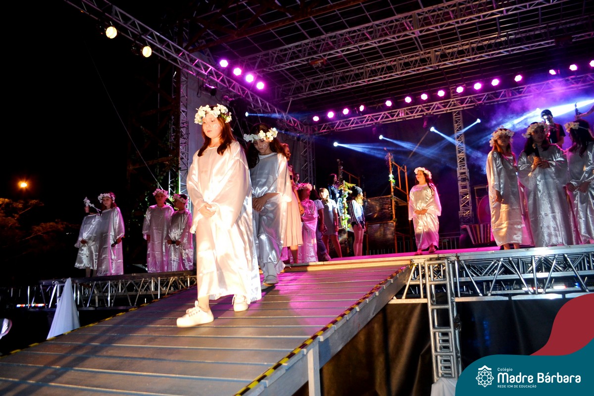 O “Expresso Natal: embarque nessa aventura”, teve a interpretação da história da menina Eva que revelou seus sonhos na companhia de amigos e os duendes. Um trem desceu do palco movido pela luz da lua e circulou próximo das pessoas com os alunos do CMB vestidos de anjos, abençoando o menino Jesus nos braços de José e Maria.