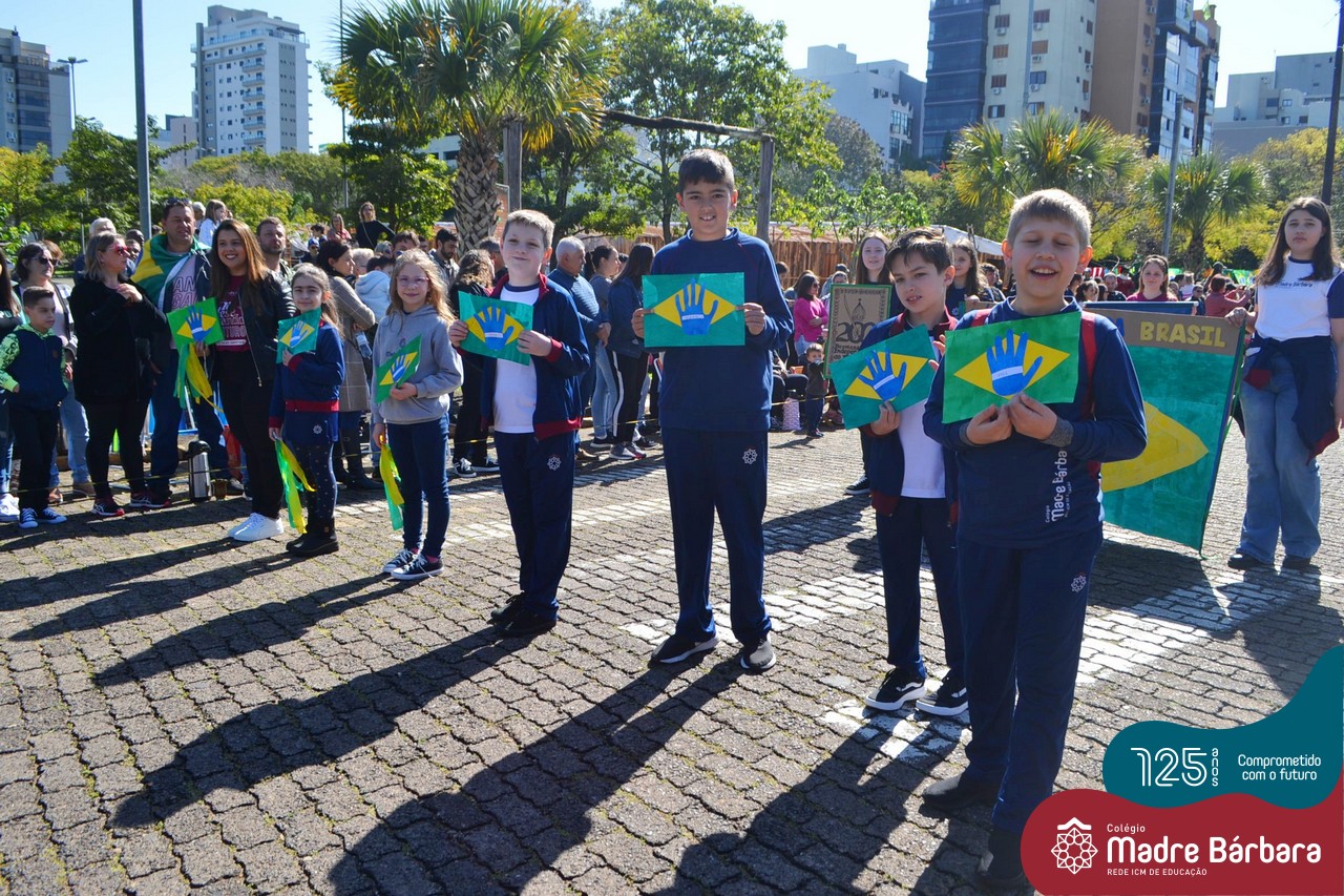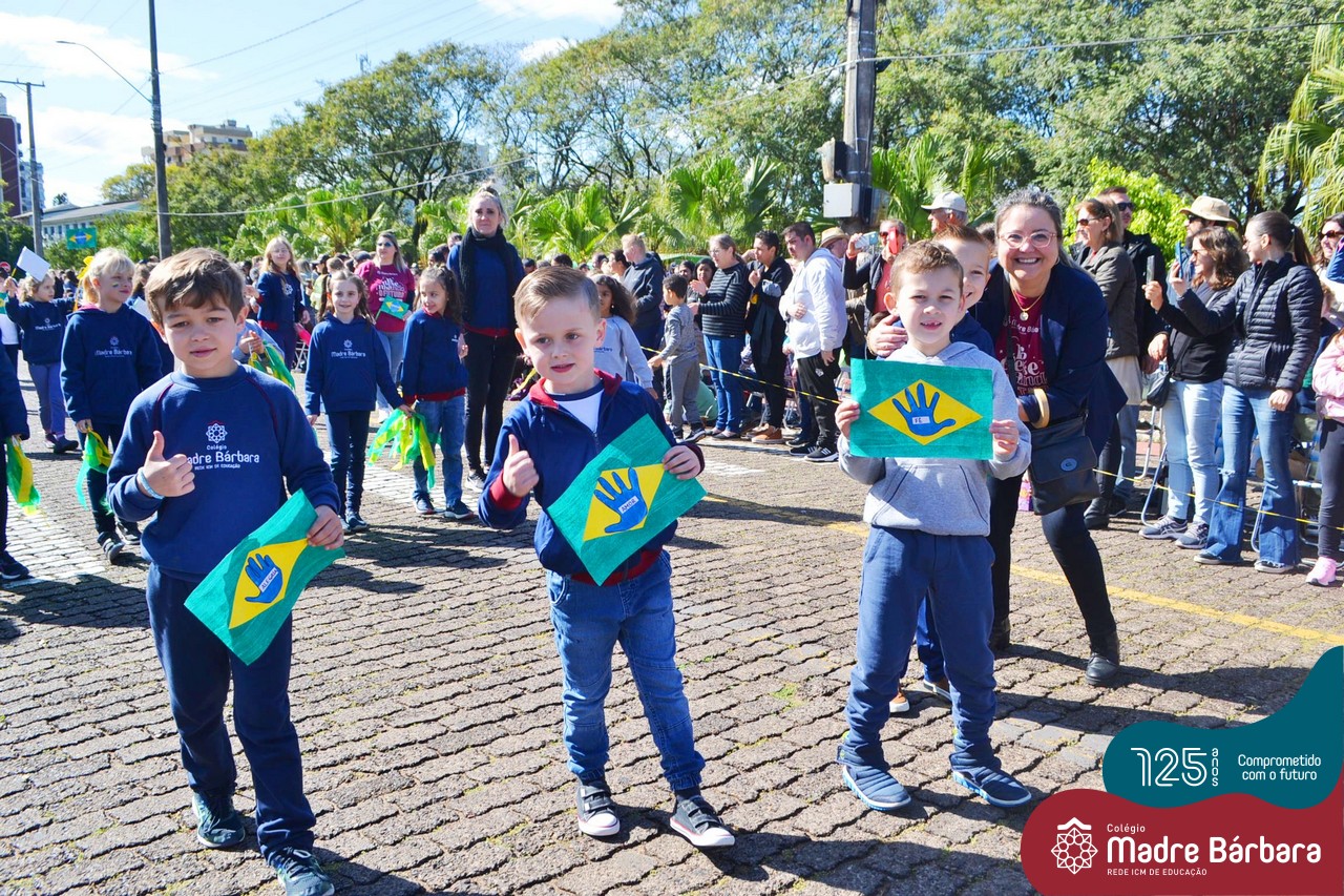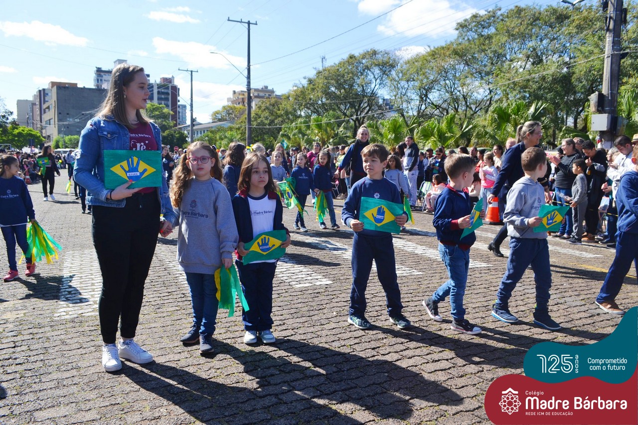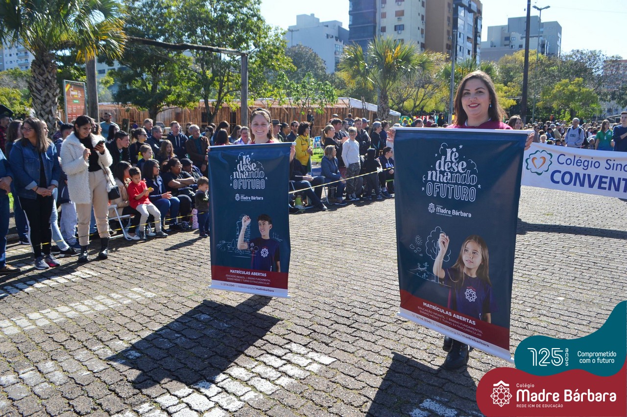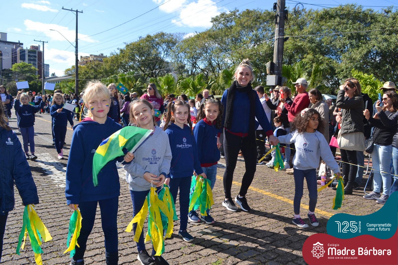 Na manhã deste sábado (10.09) o Colégio Madre Bárbara participou do Desfile Cívico-Militar em Lajeado, que foi alusivo ao Bicentenário da Independência, celebrado no último dia 7. Representando o CMB, estiveram as crianças e monitoras do Turno Extracurricular da instituição. A estimativa é que 10 mil pessoas tenham lotado a Rua Santos Filho, junto ao Parque dos Dick, prestigiando a apresentação de mais de 30 escolas entre municipais e privadas, entidades, forças de segurança, Banda do 7º Batalhão de Infantaria Blindado de Santa Cruz do Sul e do 9º Regimento de Cavalaria Blindado de São Gabriel, entre outras.