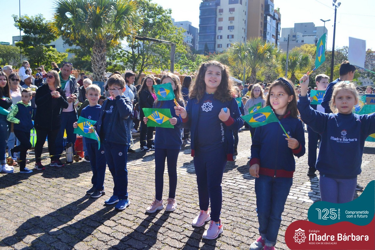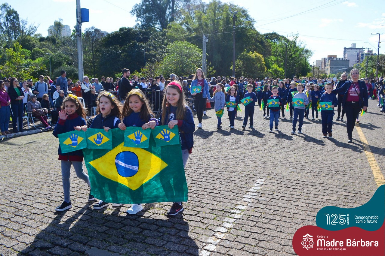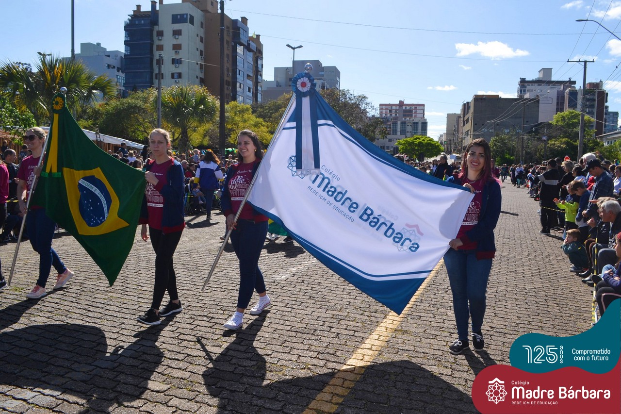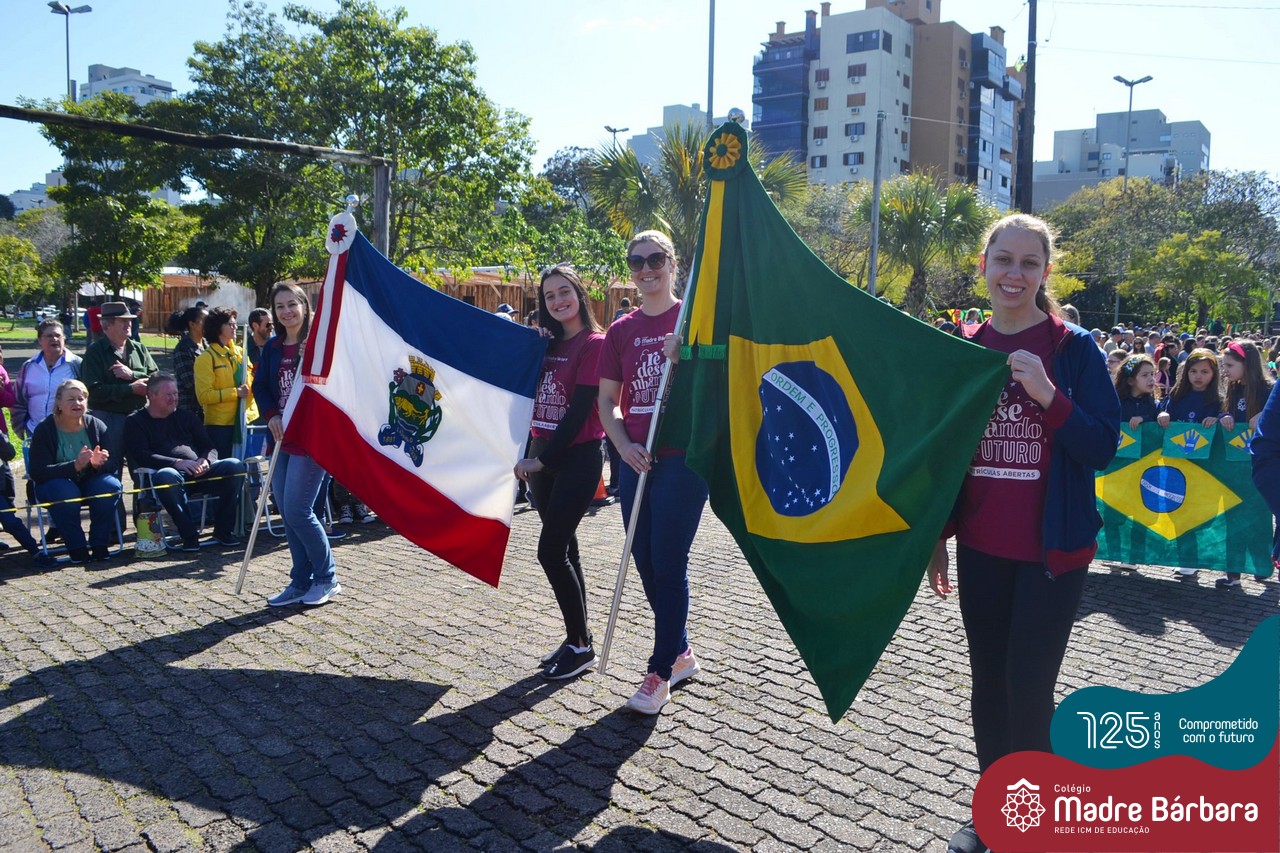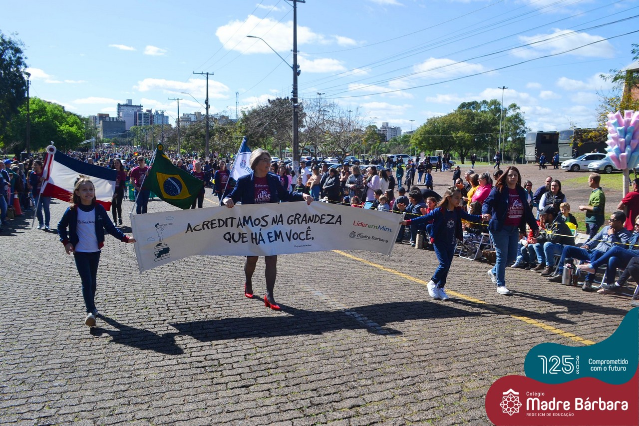 Na manhã deste sábado (10.09) o Colégio Madre Bárbara participou do Desfile Cívico-Militar em Lajeado, que foi alusivo ao Bicentenário da Independência, celebrado no último dia 7. Representando o CMB, estiveram as crianças e monitoras do Turno Extracurricular da instituição. A estimativa é que 10 mil pessoas tenham lotado a Rua Santos Filho, junto ao Parque dos Dick, prestigiando a apresentação de mais de 30 escolas entre municipais e privadas, entidades, forças de segurança, Banda do 7º Batalhão de Infantaria Blindado de Santa Cruz do Sul e do 9º Regimento de Cavalaria Blindado de São Gabriel, entre outras.