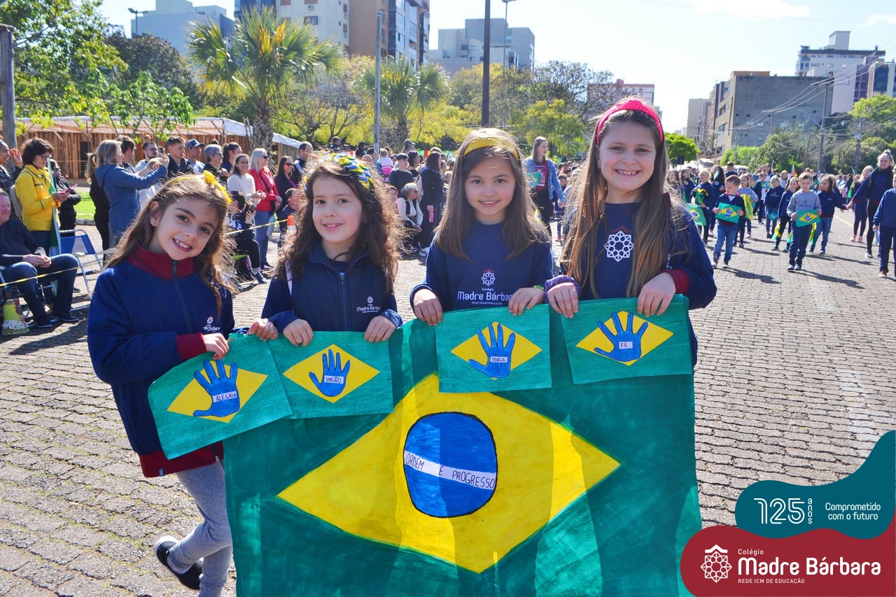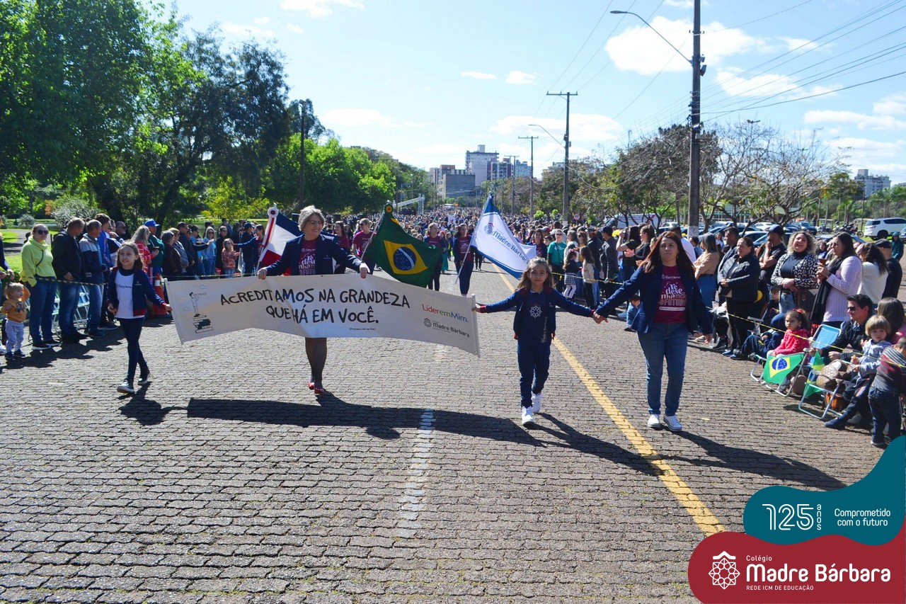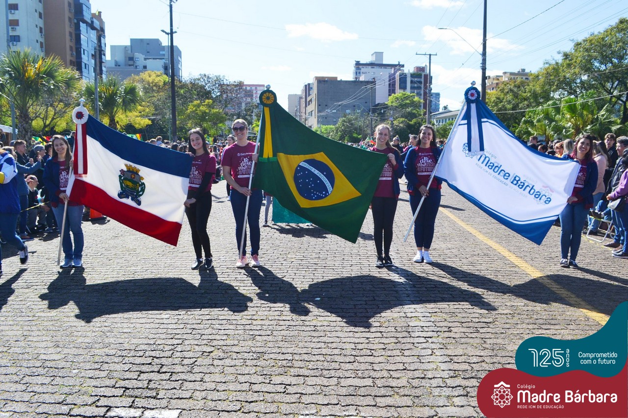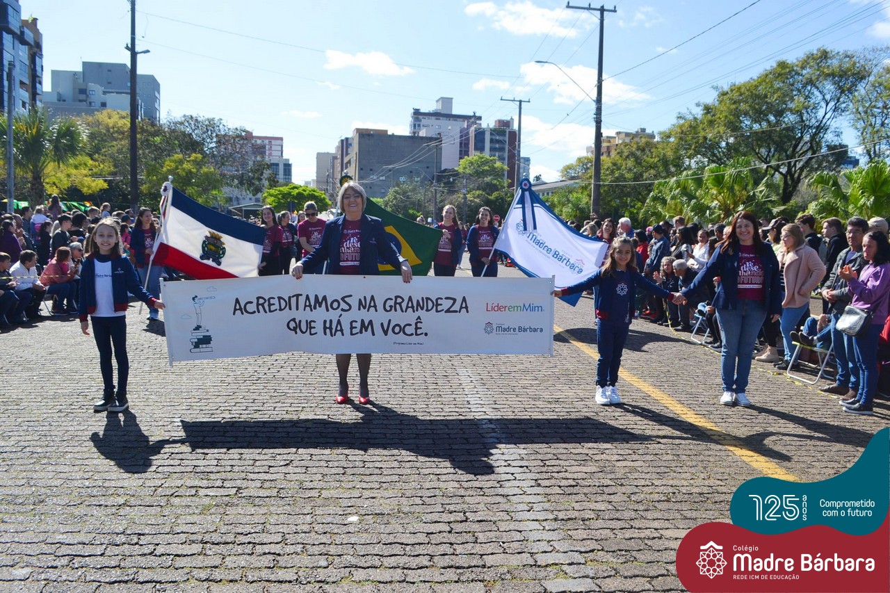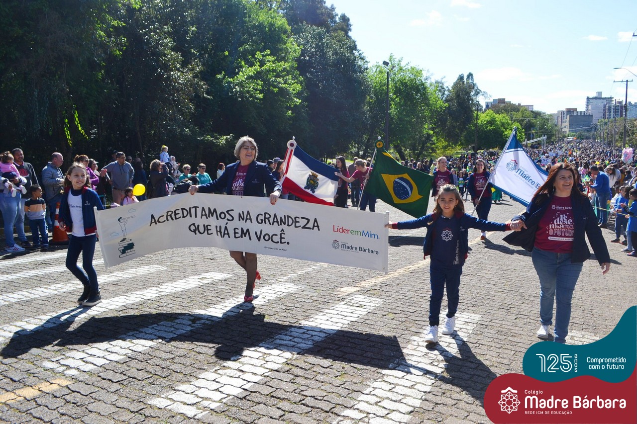 Na manhã deste sábado (10.09) o Colégio Madre Bárbara participou do Desfile Cívico-Militar em Lajeado, que foi alusivo ao Bicentenário da Independência, celebrado no último dia 7. Representando o CMB, estiveram as crianças e monitoras do Turno Extracurricular da instituição. A estimativa é que 10 mil pessoas tenham lotado a Rua Santos Filho, junto ao Parque dos Dick, prestigiando a apresentação de mais de 30 escolas entre municipais e privadas, entidades, forças de segurança, Banda do 7º Batalhão de Infantaria Blindado de Santa Cruz do Sul e do 9º Regimento de Cavalaria Blindado de São Gabriel, entre outras.
