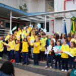 No início da manhã desta sexta-feira (1) ocorreu no Colégio Madre Bárbara – Rede ICM a Abertura da Semana da Pátria. Com a temática “O Brasil e seus biomas: potencialidades e desafios” os educadores buscarão fazer com que o estudante reflita sobre o que cada um pode fazer para manter um melhor país, já que os ecossistemas são de uma diversidade e complexidade de enormes potenciais, mas também precisam de proteção, cuidado e preservação. Aberta pelo professor de geografia, Lucas Schneider, o momento contou com a fala da diretora Maria Elena Jacques, apresentações das turmas dos Anos Iniciais e o poema da estudante da turma 92 Clara Sartori sobre a temática. No turno da tarde também ocorreu um momento celebrativo, além de entoarem o hino. Uma linda semana da pátria para todos!