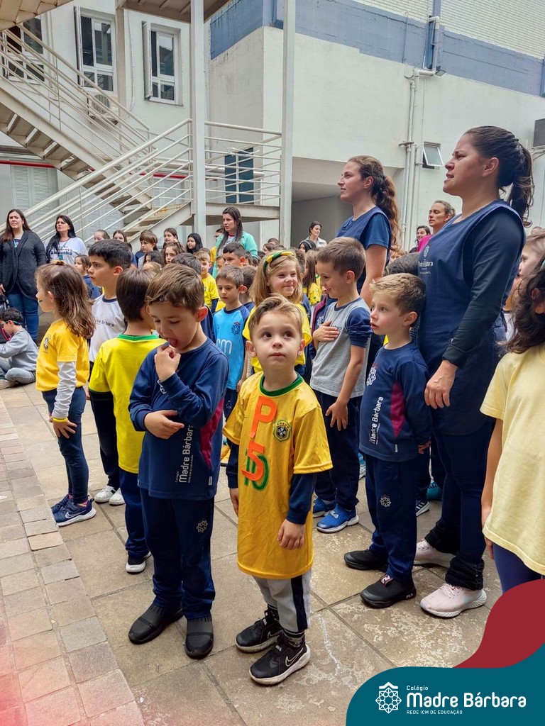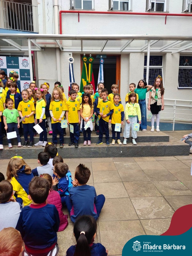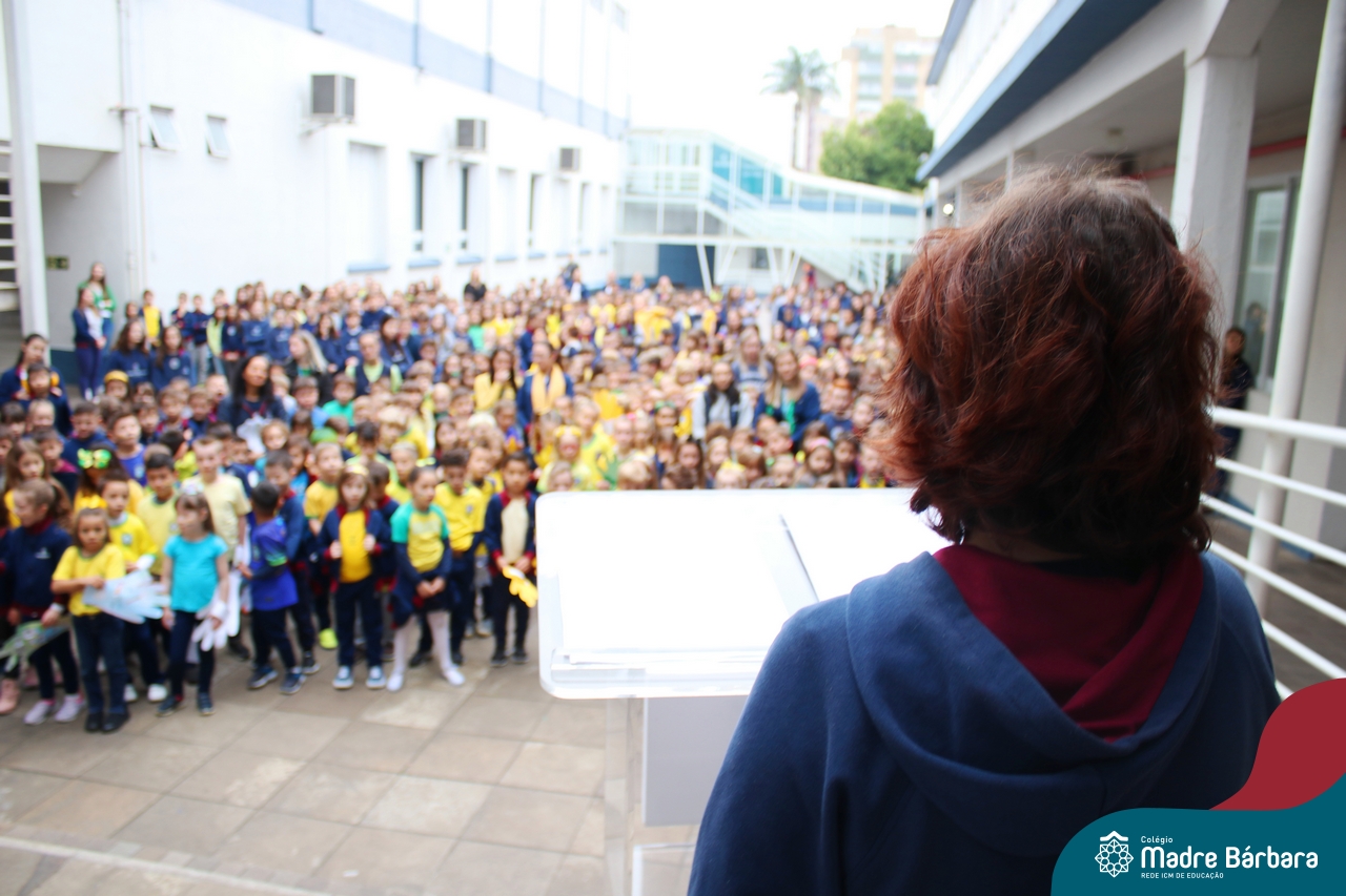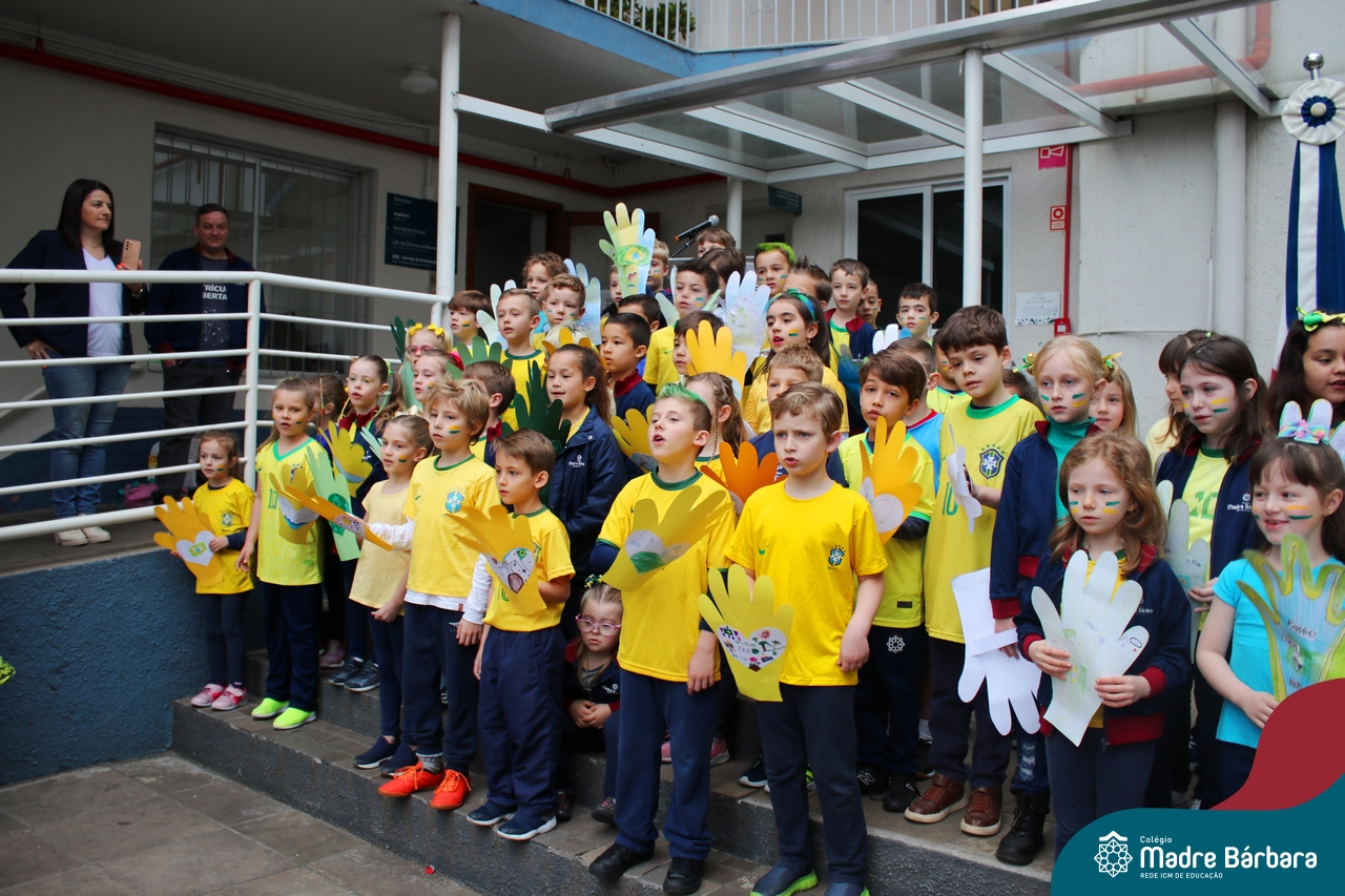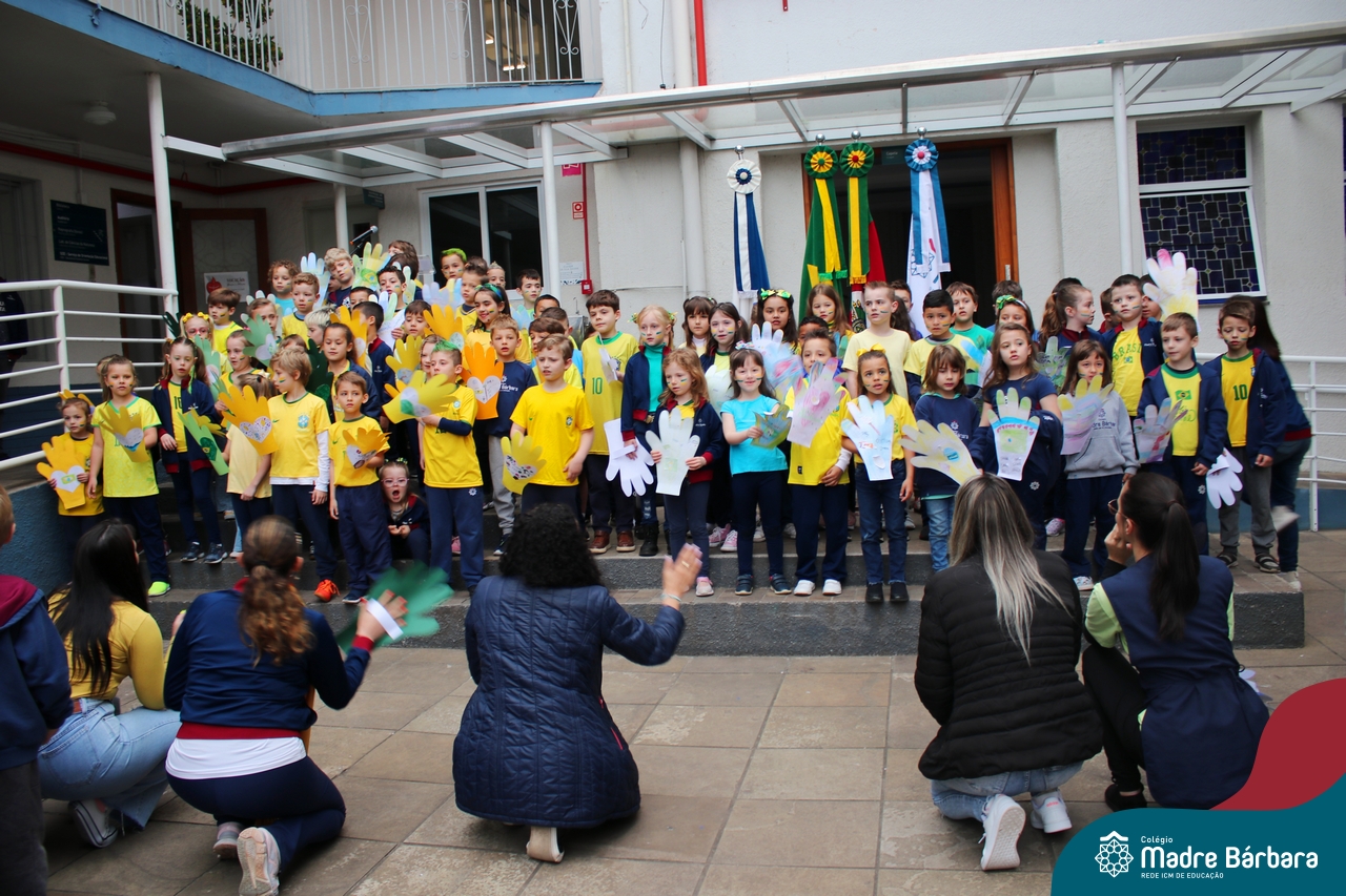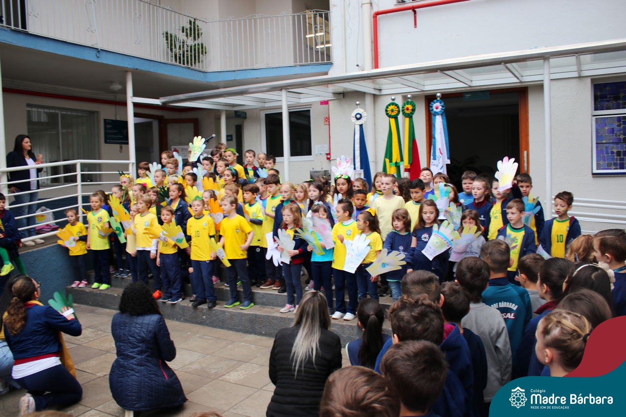 No início da manhã desta sexta-feira (1) ocorreu no Colégio Madre Bárbara – Rede ICM a Abertura da Semana da Pátria. Com a temática “O Brasil e seus biomas: potencialidades e desafios” os educadores buscarão fazer com que o estudante reflita sobre o que cada um pode fazer para manter um melhor país, já que os ecossistemas são de uma diversidade e complexidade de enormes potenciais, mas também precisam de proteção, cuidado e preservação. Aberta pelo professor de geografia, Lucas Schneider, o momento contou com a fala da diretora Maria Elena Jacques, apresentações das turmas dos Anos Iniciais e o poema da estudante da turma 92 Clara Sartori sobre a temática. No turno da tarde também ocorreu um momento celebrativo, além de entoarem o hino. Uma linda semana da pátria para todos!