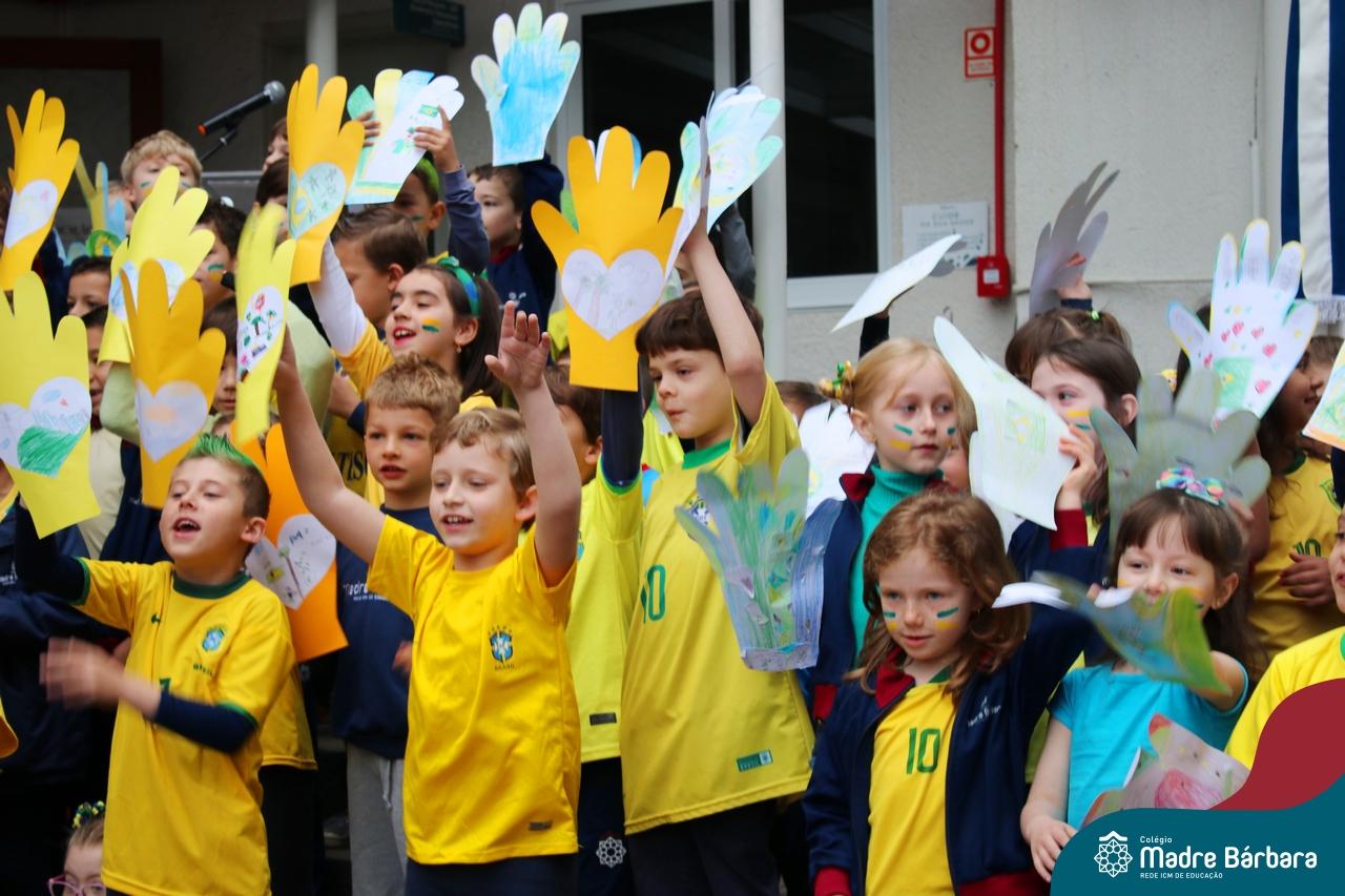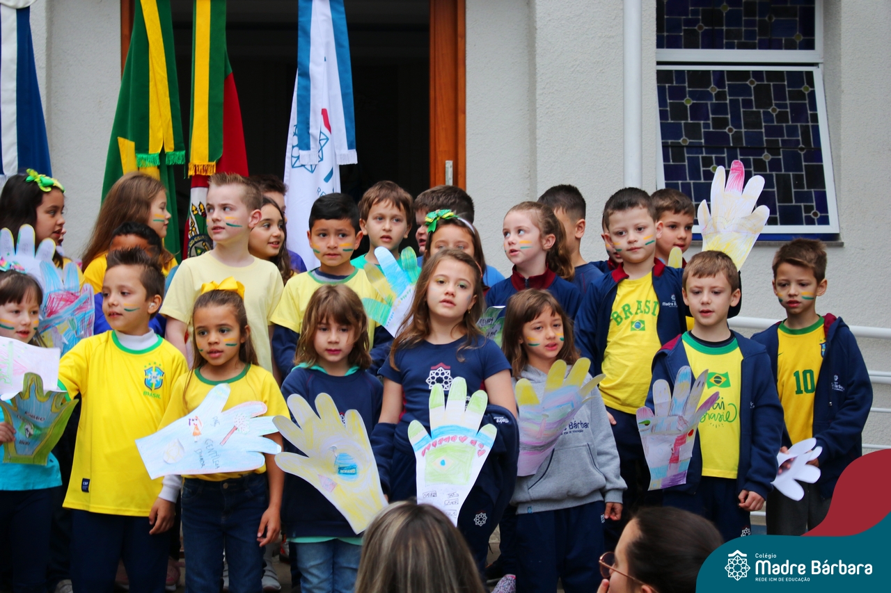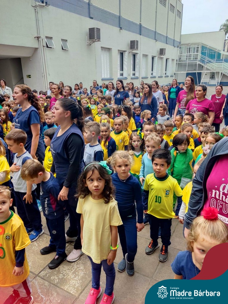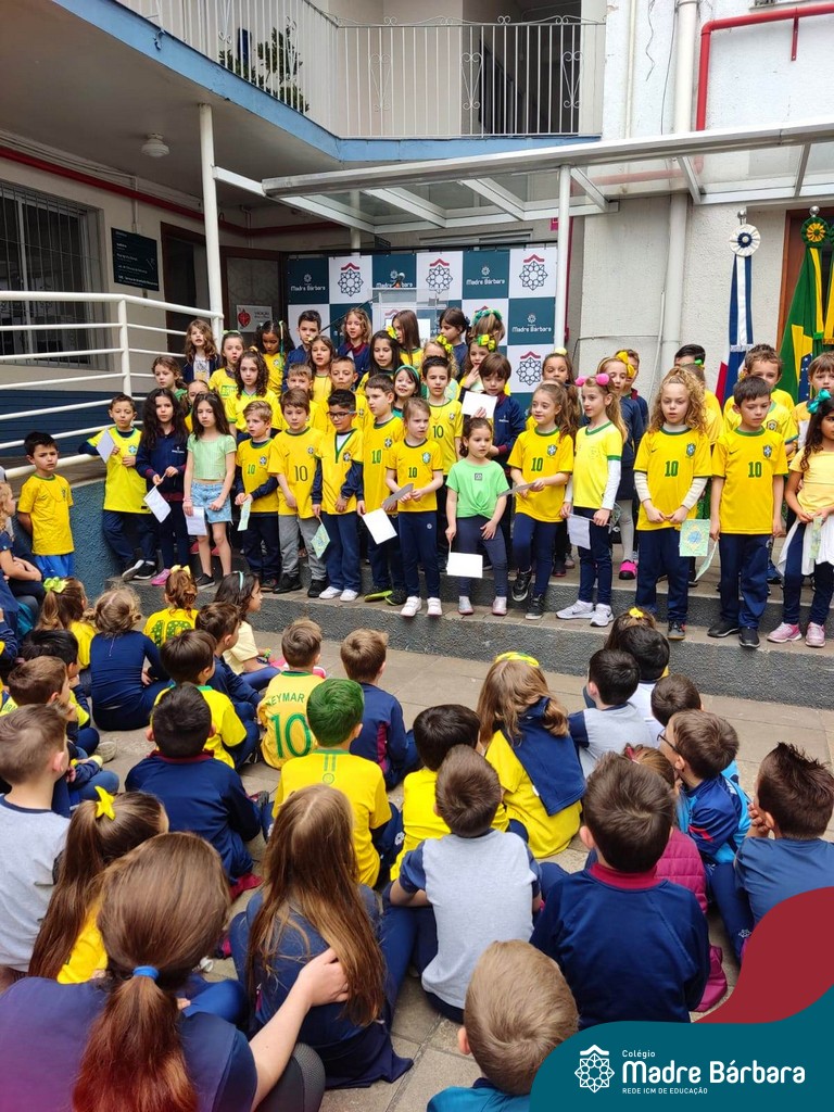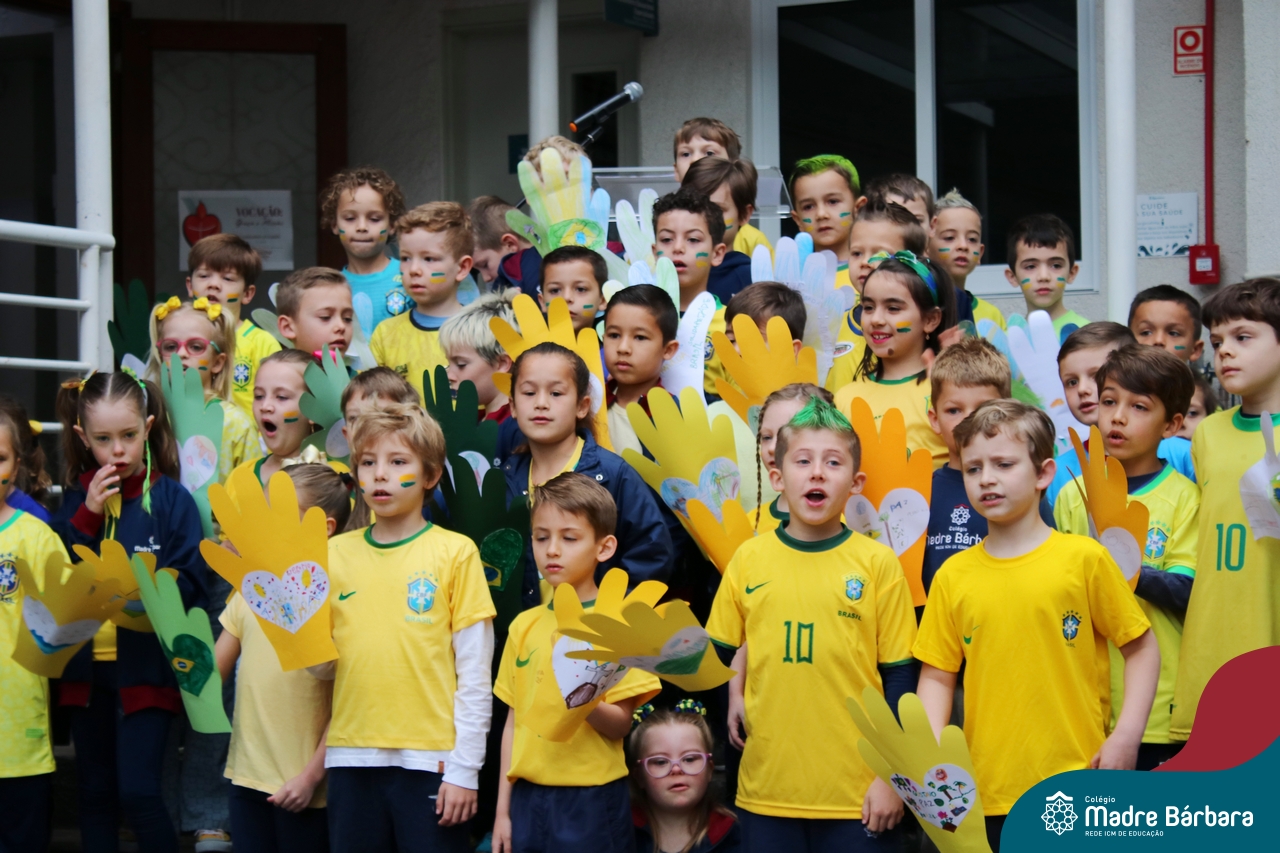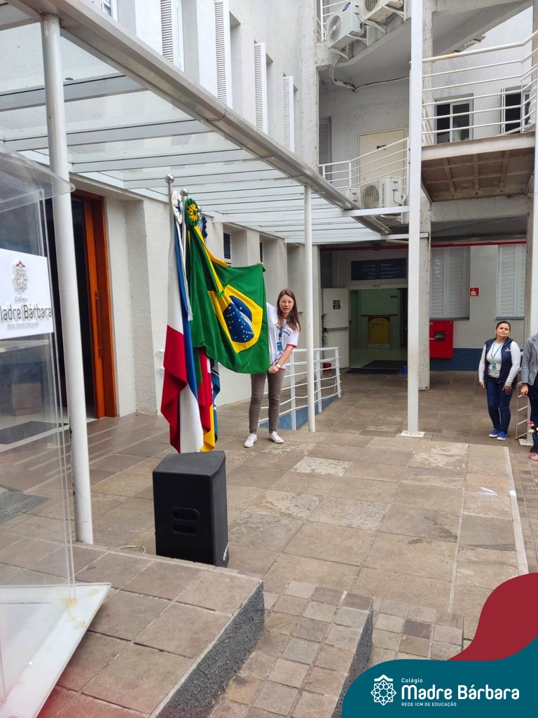 No início da manhã desta sexta-feira (1) ocorreu no Colégio Madre Bárbara – Rede ICM a Abertura da Semana da Pátria. Com a temática “O Brasil e seus biomas: potencialidades e desafios” os educadores buscarão fazer com que o estudante reflita sobre o que cada um pode fazer para manter um melhor país, já que os ecossistemas são de uma diversidade e complexidade de enormes potenciais, mas também precisam de proteção, cuidado e preservação. Aberta pelo professor de geografia, Lucas Schneider, o momento contou com a fala da diretora Maria Elena Jacques, apresentações das turmas dos Anos Iniciais e o poema da estudante da turma 92 Clara Sartori sobre a temática. No turno da tarde também ocorreu um momento celebrativo, além de entoarem o hino. Uma linda semana da pátria para todos!