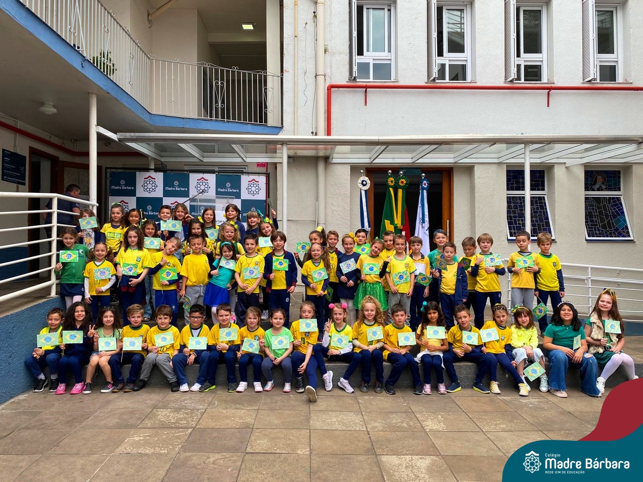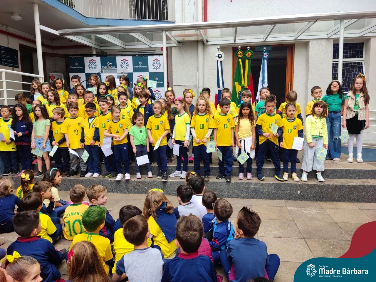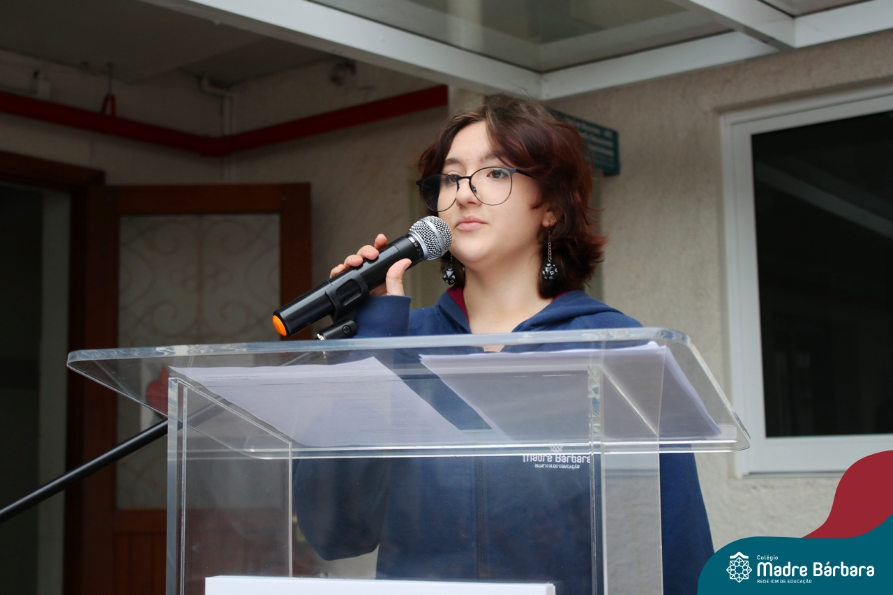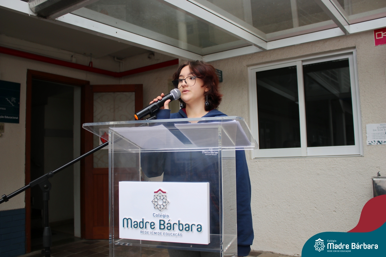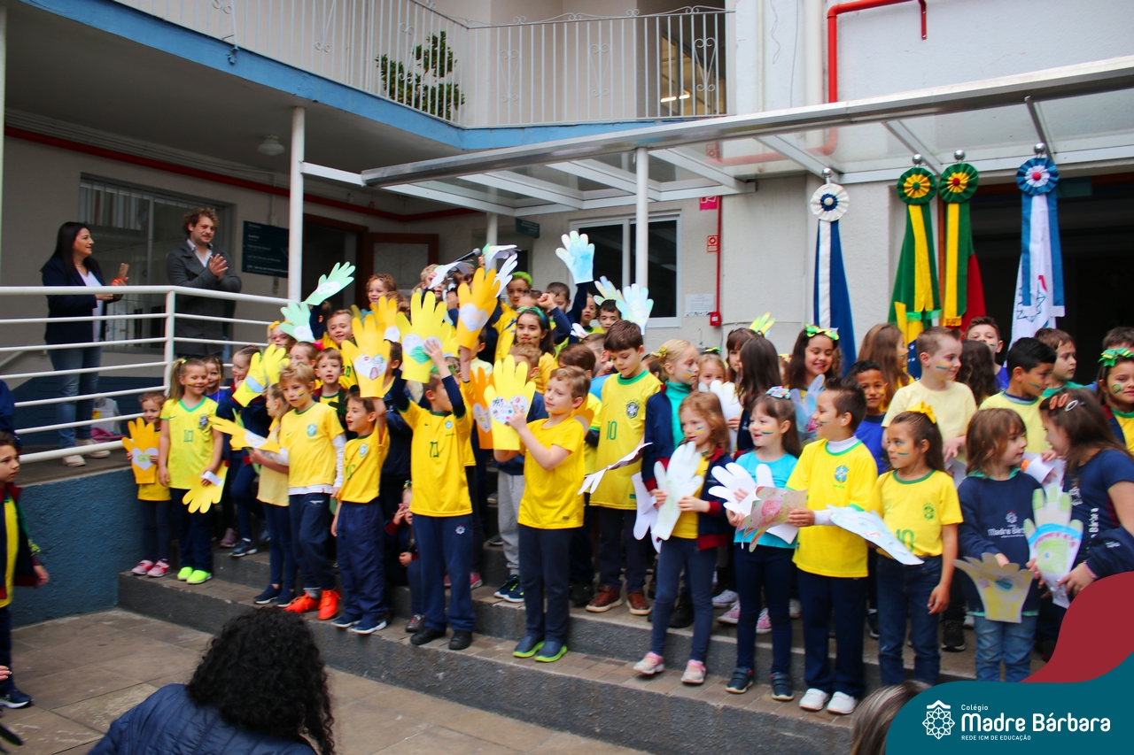 No início da manhã desta sexta-feira (1) ocorreu no Colégio Madre Bárbara – Rede ICM a Abertura da Semana da Pátria. Com a temática “O Brasil e seus biomas: potencialidades e desafios” os educadores buscarão fazer com que o estudante reflita sobre o que cada um pode fazer para manter um melhor país, já que os ecossistemas são de uma diversidade e complexidade de enormes potenciais, mas também precisam de proteção, cuidado e preservação. Aberta pelo professor de geografia, Lucas Schneider, o momento contou com a fala da diretora Maria Elena Jacques, apresentações das turmas dos Anos Iniciais e o poema da estudante da turma 92 Clara Sartori sobre a temática. No turno da tarde também ocorreu um momento celebrativo, além de entoarem o hino. Uma linda semana da pátria para todos!
