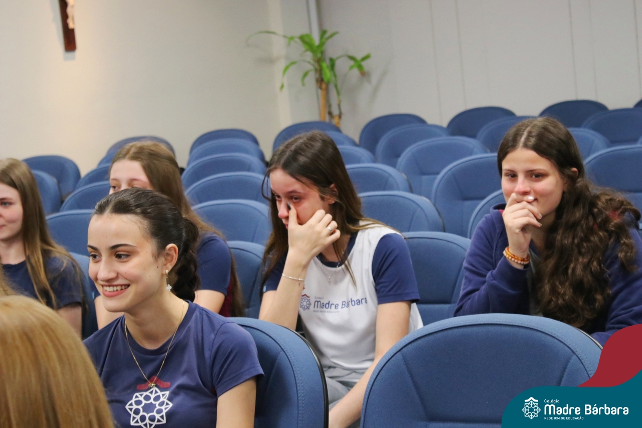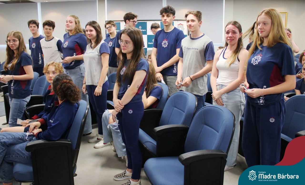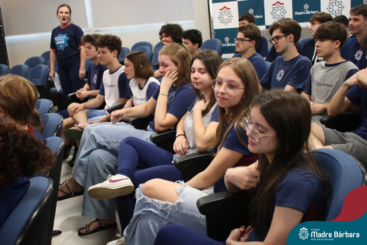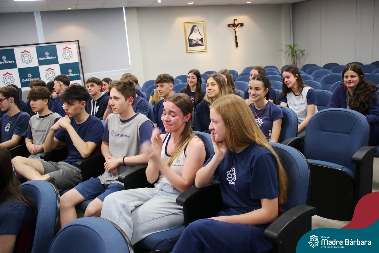 Nesta quarta-feira, 30 de outubro, o Serviço de Orientação Educacional, Pastoral Escolar e o GEMBAR, promoveram um momento especial voltado para os alunos do 3º ano do Ensino Médio, com foco na motivação e preparação para o Exame Nacional do Ensino Médio (ENEM), que iniciará no próximo final de semana. O evento contou com a presença de alunos dos anos iniciais que surpreenderam os estudantes dos terceirões, cantando lindas músicas que visaram fortalecer o espírito de equipe e a confiança em suas habilidades e entregaram um mini terço com uma mensagem, fortalecendo a fé, convidando todos a acreditarem em si mesmos e a darem o melhor de si nesse importante momento. A orientadora educacional destacou a importância desse momento: “Sabemos que o ENEM é um desafio, mas queremos que nossos alunos saibam que estão preparados e que têm todo o nosso apoio. Acreditamos que, com esforço e dedicação, eles podem conquistar seus sonhos.” Boa sorte a todos os participantes!