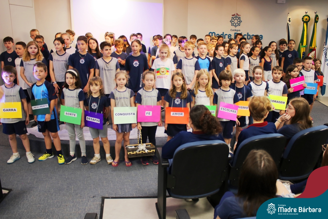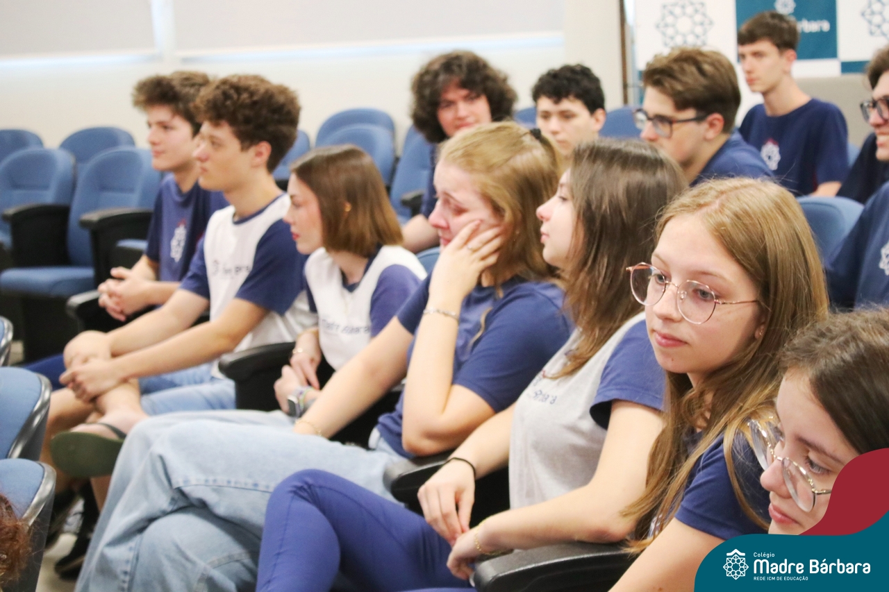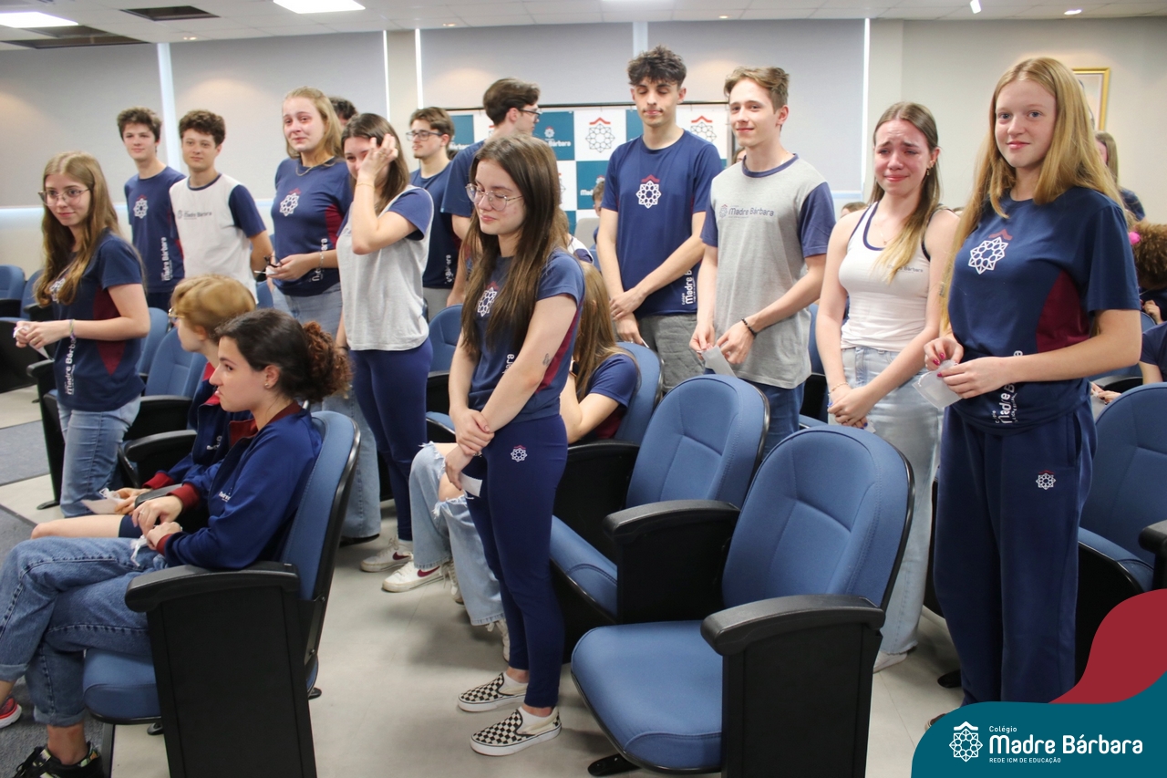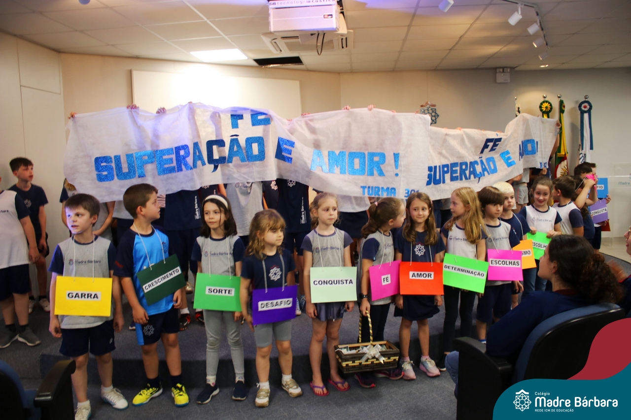 Nesta quarta-feira, 30 de outubro, o Serviço de Orientação Educacional, Pastoral Escolar e o GEMBAR, promoveram um momento especial voltado para os alunos do 3º ano do Ensino Médio, com foco na motivação e preparação para o Exame Nacional do Ensino Médio (ENEM), que iniciará no próximo final de semana. O evento contou com a presença de alunos dos anos iniciais que surpreenderam os estudantes dos terceirões, cantando lindas músicas que visaram fortalecer o espírito de equipe e a confiança em suas habilidades e entregaram um mini terço com uma mensagem, fortalecendo a fé, convidando todos a acreditarem em si mesmos e a darem o melhor de si nesse importante momento. A orientadora educacional destacou a importância desse momento: “Sabemos que o ENEM é um desafio, mas queremos que nossos alunos saibam que estão preparados e que têm todo o nosso apoio. Acreditamos que, com esforço e dedicação, eles podem conquistar seus sonhos.” Boa sorte a todos os participantes!