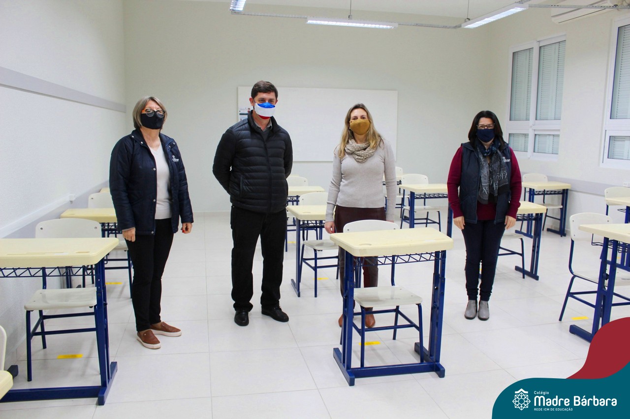 Na manhã desta quarta-feira (16) o prefeito municipal de Lajeado Marcelo Caumo e a vice-prefeita Glaucia Schumacher estiveram visitando o Colégio Madre Bárbara – Rede ICM para ver como foi o retorno às aulas presenciais das turmas da Educação Infantil, como está a organização de fluxograma e a estrutura da escola a partir dos protocolos e medidas de segurança com distanciamento e sinalizações.