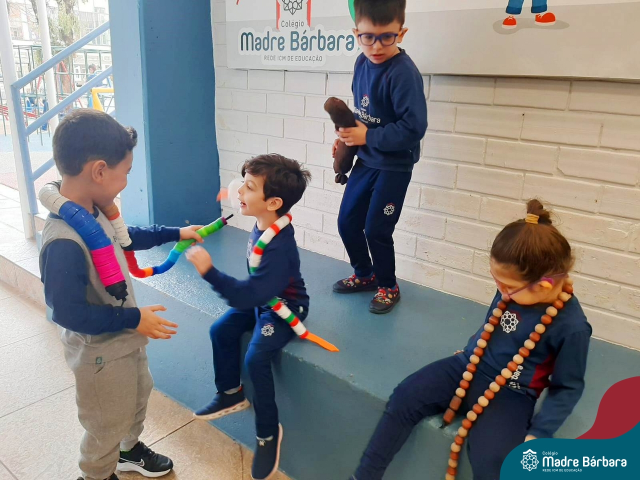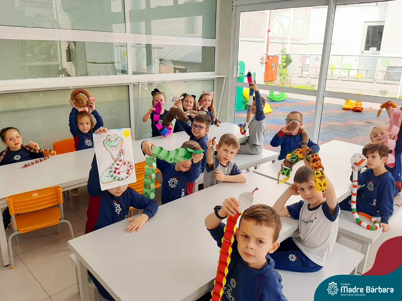 Na tarde de segunda feira 09.09, o Nível 4D foi agraciado com a visita de “lindas cobras” confeccionadas pelas crianças e suas famílias. Contemplando o projeto de pesquisa da turma “Ei psiu! Lá vem a cobra, jiboia e serpente. O que será que vamos aprender de diferente?”, elas chegaram com suas cores, texturas e formas. E imagina só, elas até acompanharam as crianças em um passeio divertido e também no lanche!
