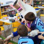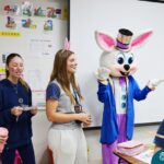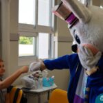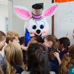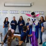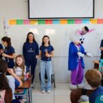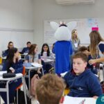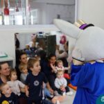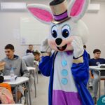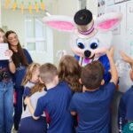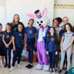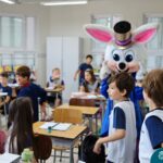 Na quinta-feira (17.04) as turmas da Educação Infantil ao Ensino Médio receberam a visita do Coelho da Páscoa do Grêmio Estudantil (Gembar). No Ensino Médio, o Gembar esteve acompanhado pela coordenação pedagógica, que entregou um mimo para os alunos e professores. Já na Educação Infantil e nos Anos Iniciais, as crianças aproveitaram para abraçar e fazer fotos com o amigo Coelho, já que ele havia deixado o ninho escondido por espaços do Colégio. Foi um dia muito alegre e feliz. Parabéns para o Gembar pela dedicação e por tornar o dia das crianças mais encantador e especial.