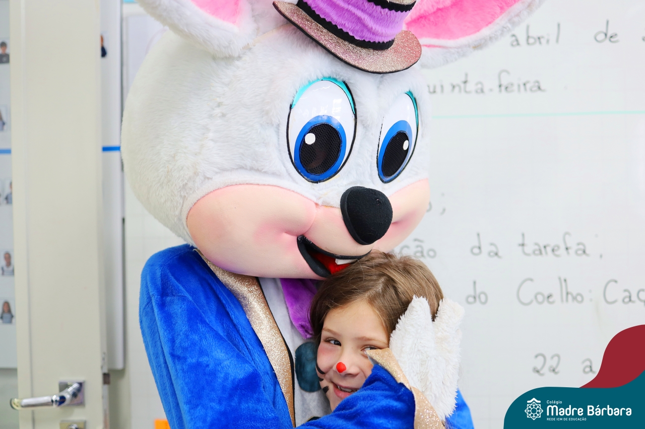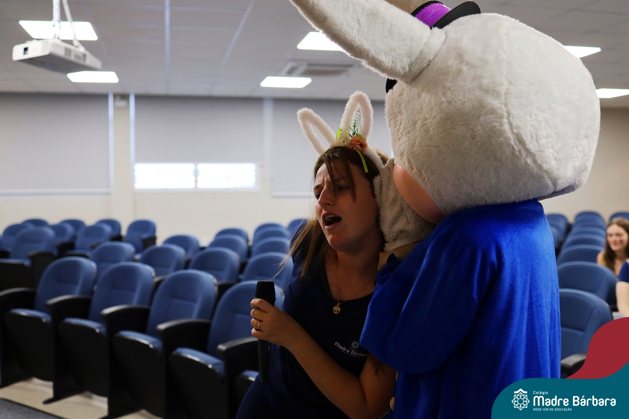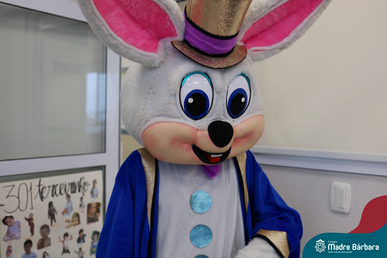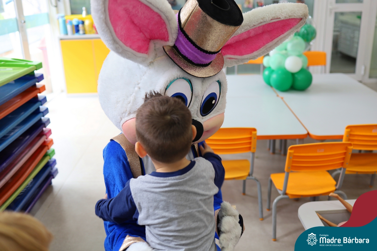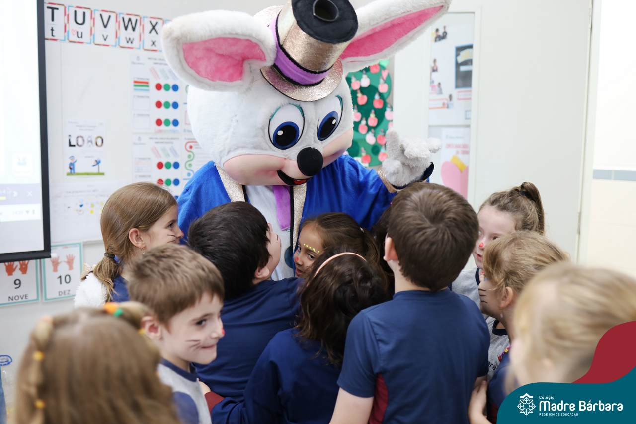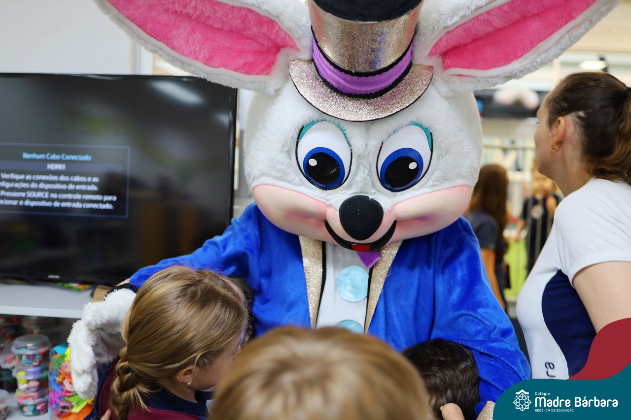 Na quinta-feira (17.04) as turmas da Educação Infantil ao Ensino Médio receberam a visita do Coelho da Páscoa do Grêmio Estudantil (Gembar). No Ensino Médio, o Gembar esteve acompanhado pela coordenação pedagógica, que entregou um mimo para os alunos e professores. Já na Educação Infantil e nos Anos Iniciais, as crianças aproveitaram para abraçar e fazer fotos com o amigo Coelho, já que ele havia deixado o ninho escondido por espaços do Colégio. Foi um dia muito alegre e feliz. Parabéns para o Gembar pela dedicação e por tornar o dia das crianças mais encantador e especial.