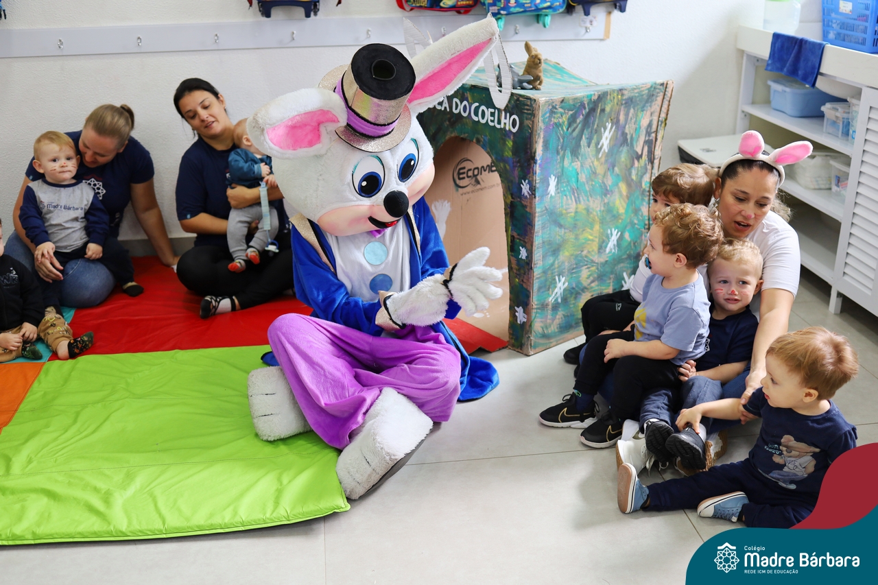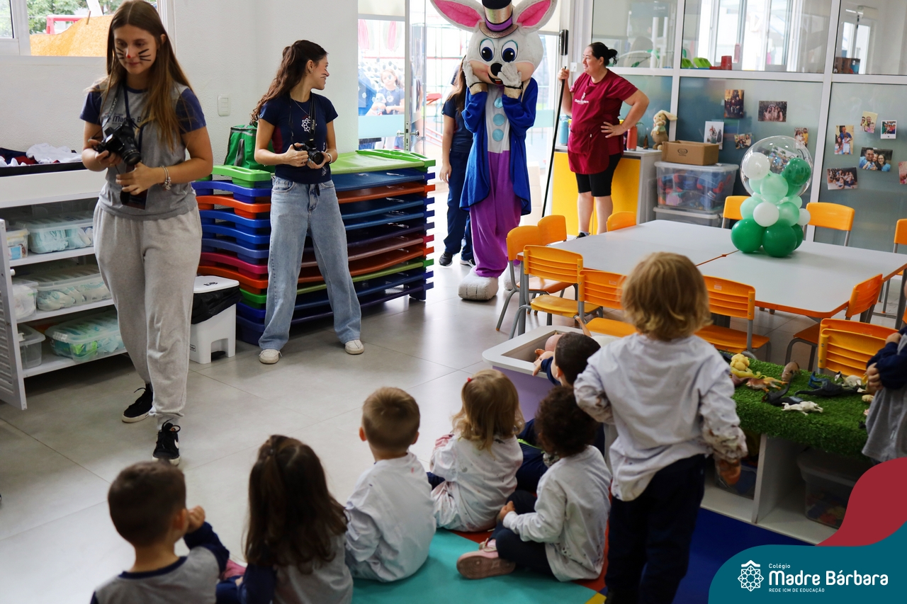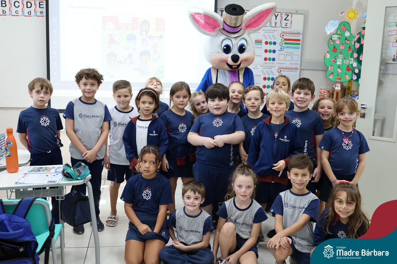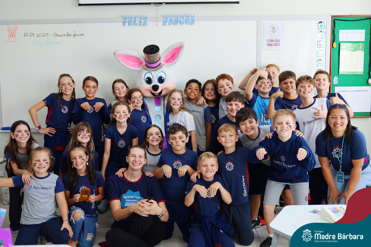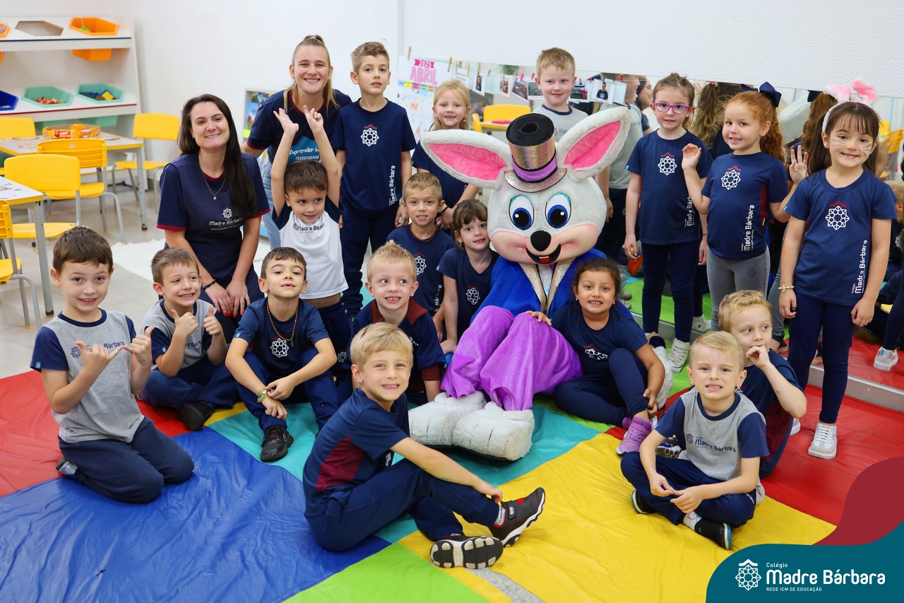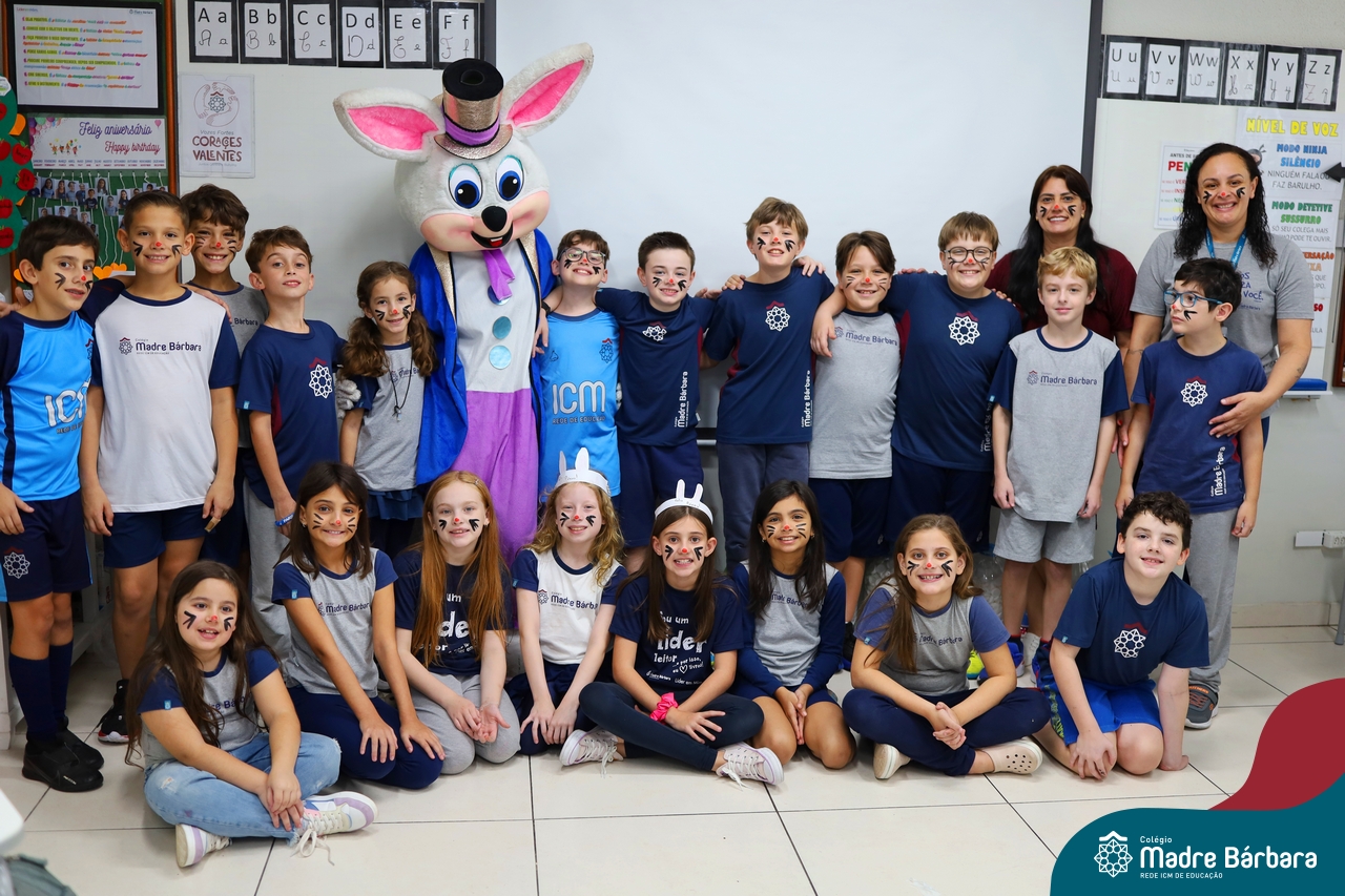 Na quinta-feira (17.04) as turmas da Educação Infantil ao Ensino Médio receberam a visita do Coelho da Páscoa do Grêmio Estudantil (Gembar). No Ensino Médio, o Gembar esteve acompanhado pela coordenação pedagógica, que entregou um mimo para os alunos e professores. Já na Educação Infantil e nos Anos Iniciais, as crianças aproveitaram para abraçar e fazer fotos com o amigo Coelho, já que ele havia deixado o ninho escondido por espaços do Colégio. Foi um dia muito alegre e feliz. Parabéns para o Gembar pela dedicação e por tornar o dia das crianças mais encantador e especial.