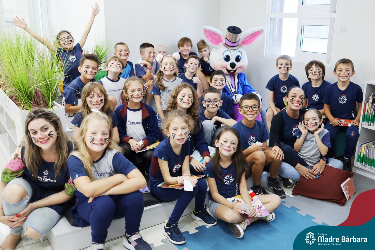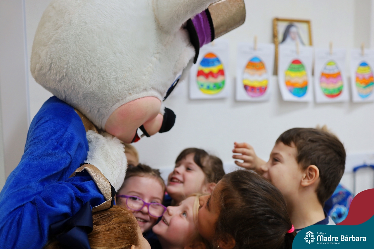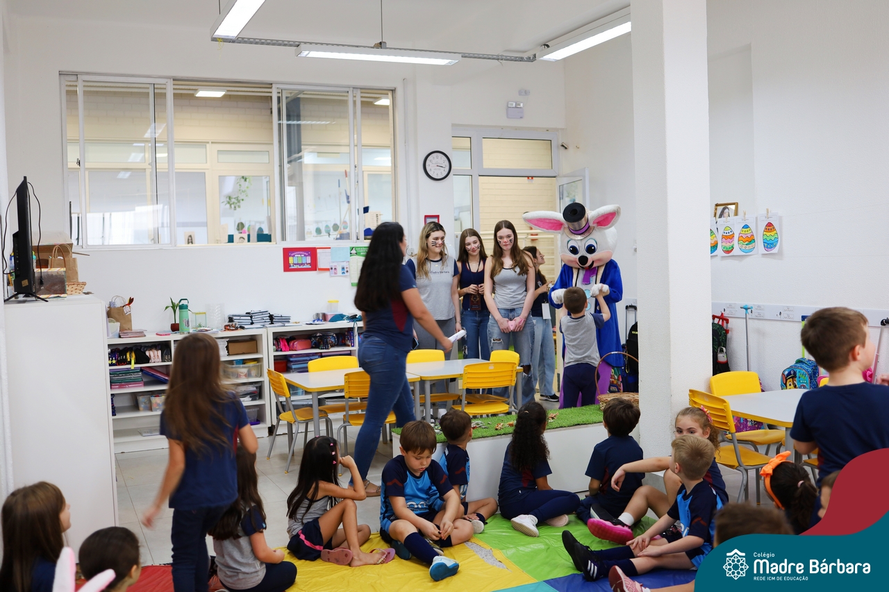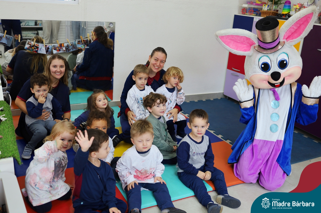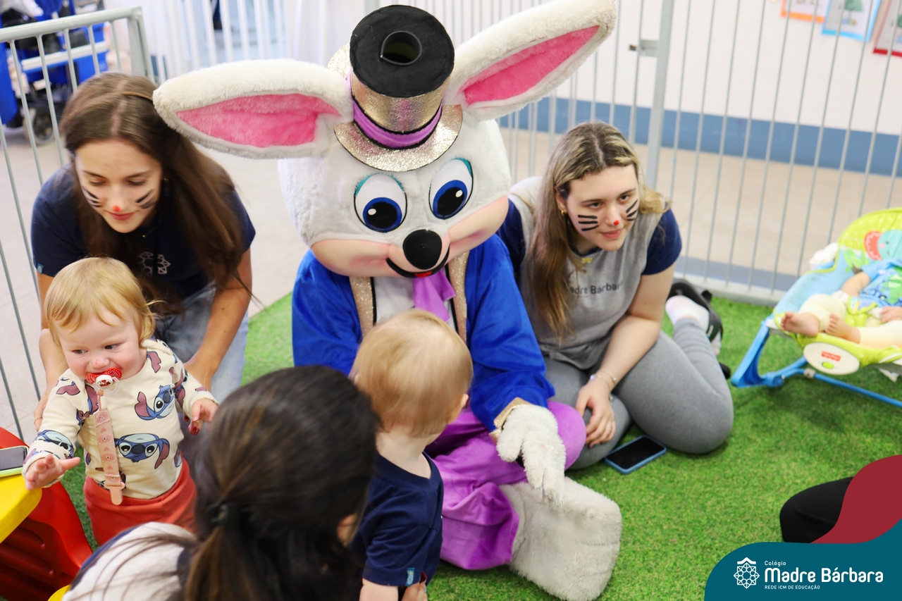 Na quinta-feira (17.04) as turmas da Educação Infantil ao Ensino Médio receberam a visita do Coelho da Páscoa do Grêmio Estudantil (Gembar). No Ensino Médio, o Gembar esteve acompanhado pela coordenação pedagógica, que entregou um mimo para os alunos e professores. Já na Educação Infantil e nos Anos Iniciais, as crianças aproveitaram para abraçar e fazer fotos com o amigo Coelho, já que ele havia deixado o ninho escondido por espaços do Colégio. Foi um dia muito alegre e feliz. Parabéns para o Gembar pela dedicação e por tornar o dia das crianças mais encantador e especial.