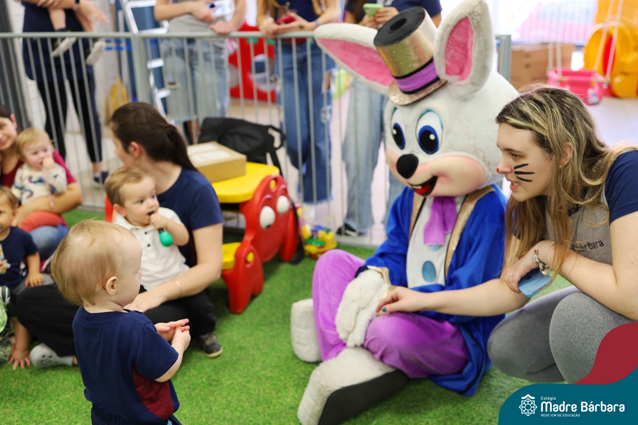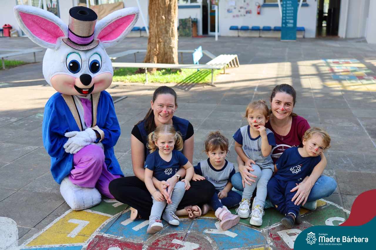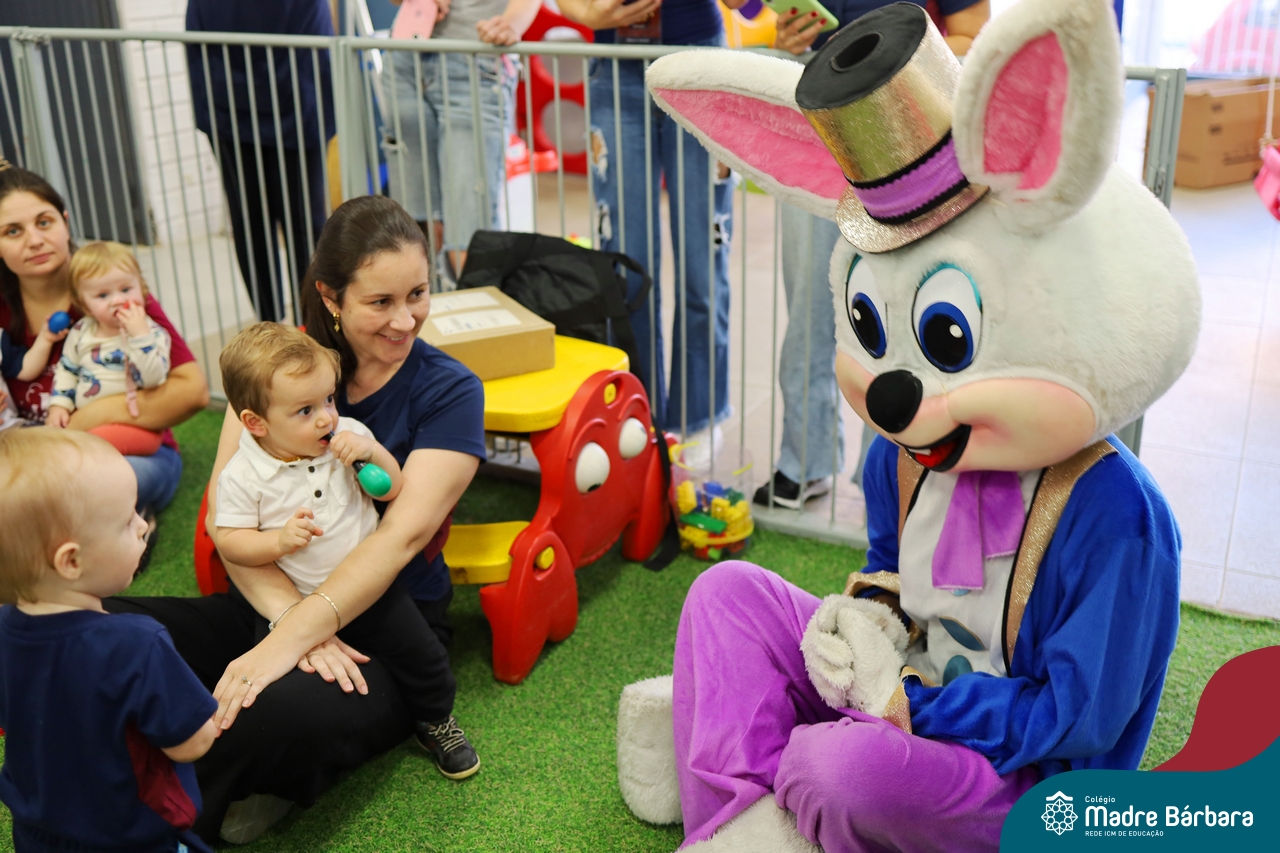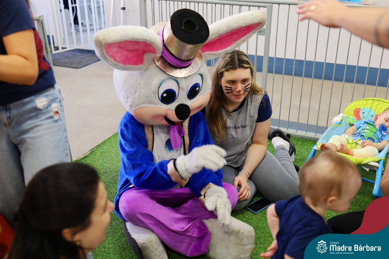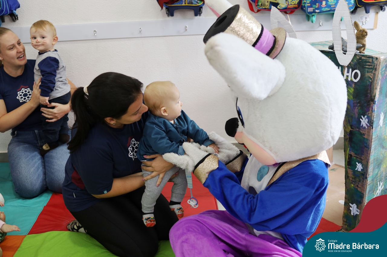 Na quinta-feira (17.04) as turmas da Educação Infantil ao Ensino Médio receberam a visita do Coelho da Páscoa do Grêmio Estudantil (Gembar). No Ensino Médio, o Gembar esteve acompanhado pela coordenação pedagógica, que entregou um mimo para os alunos e professores. Já na Educação Infantil e nos Anos Iniciais, as crianças aproveitaram para abraçar e fazer fotos com o amigo Coelho, já que ele havia deixado o ninho escondido por espaços do Colégio. Foi um dia muito alegre e feliz. Parabéns para o Gembar pela dedicação e por tornar o dia das crianças mais encantador e especial.