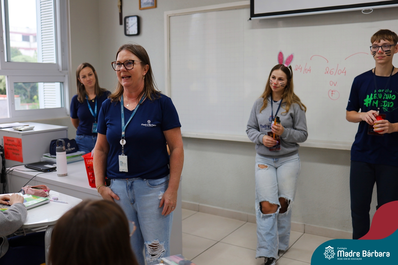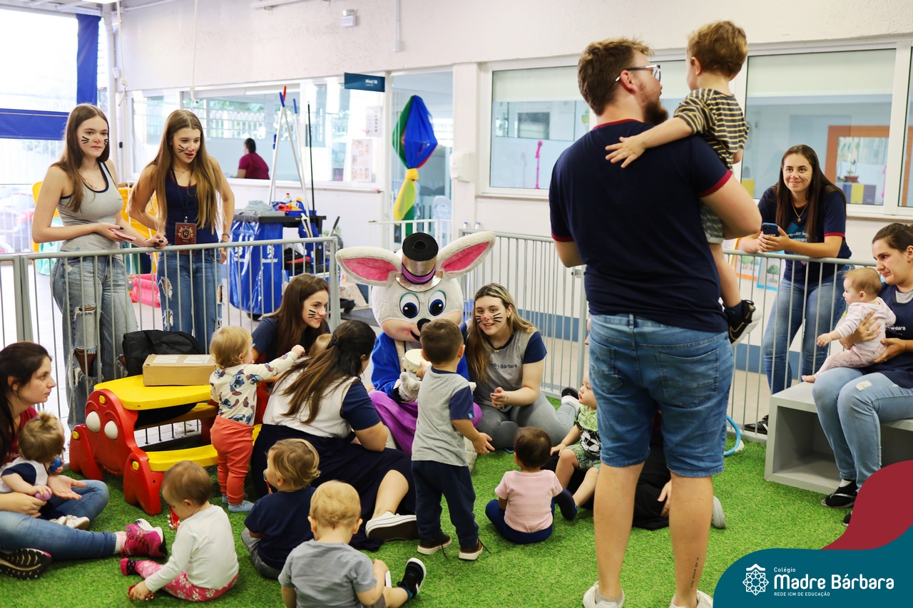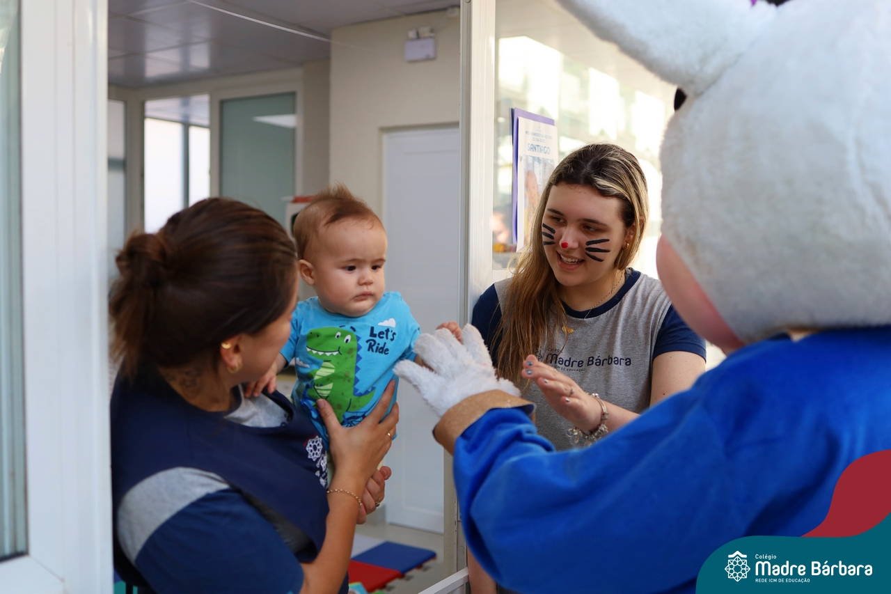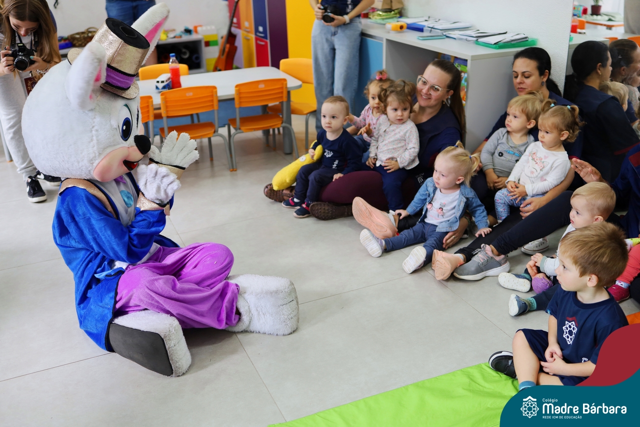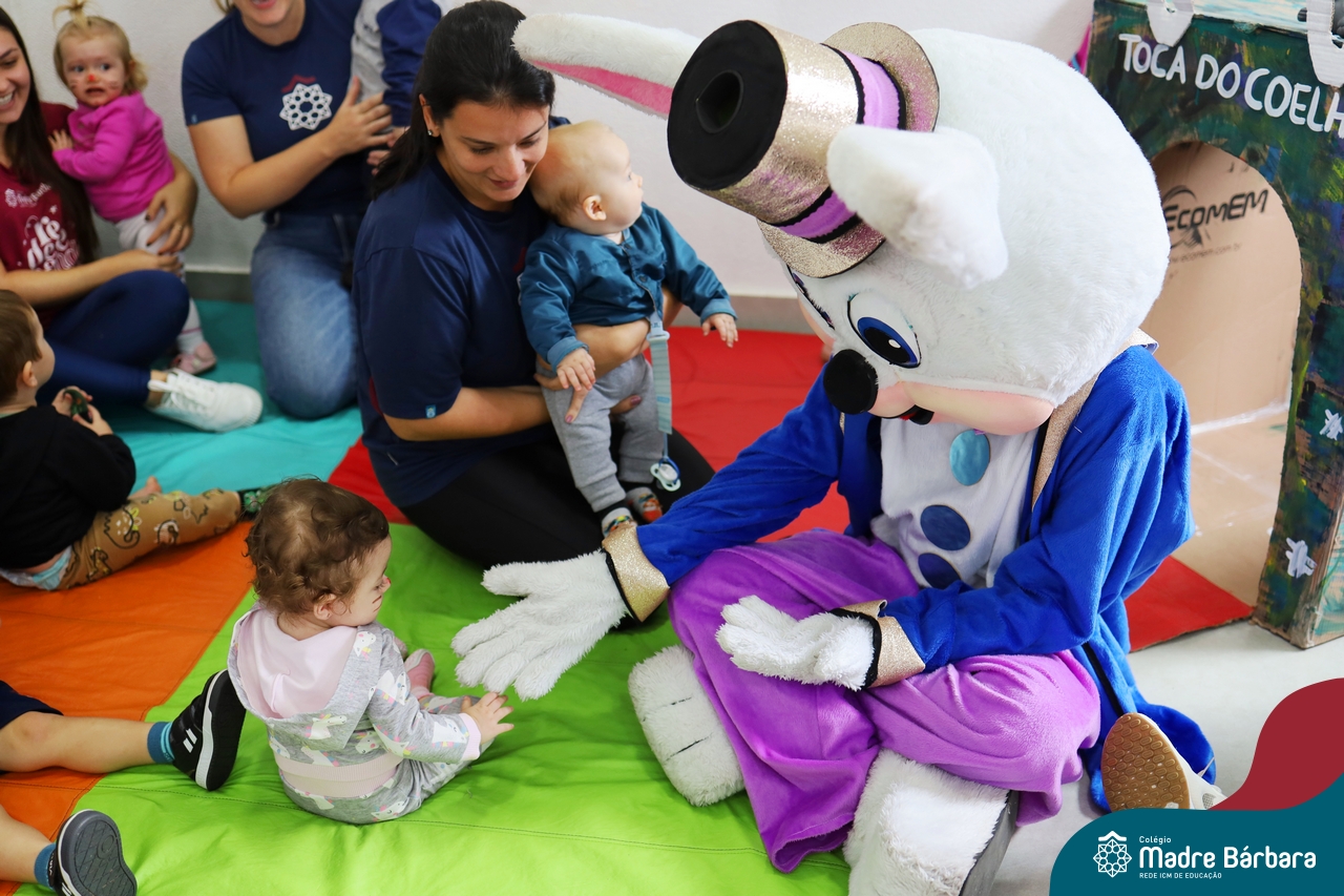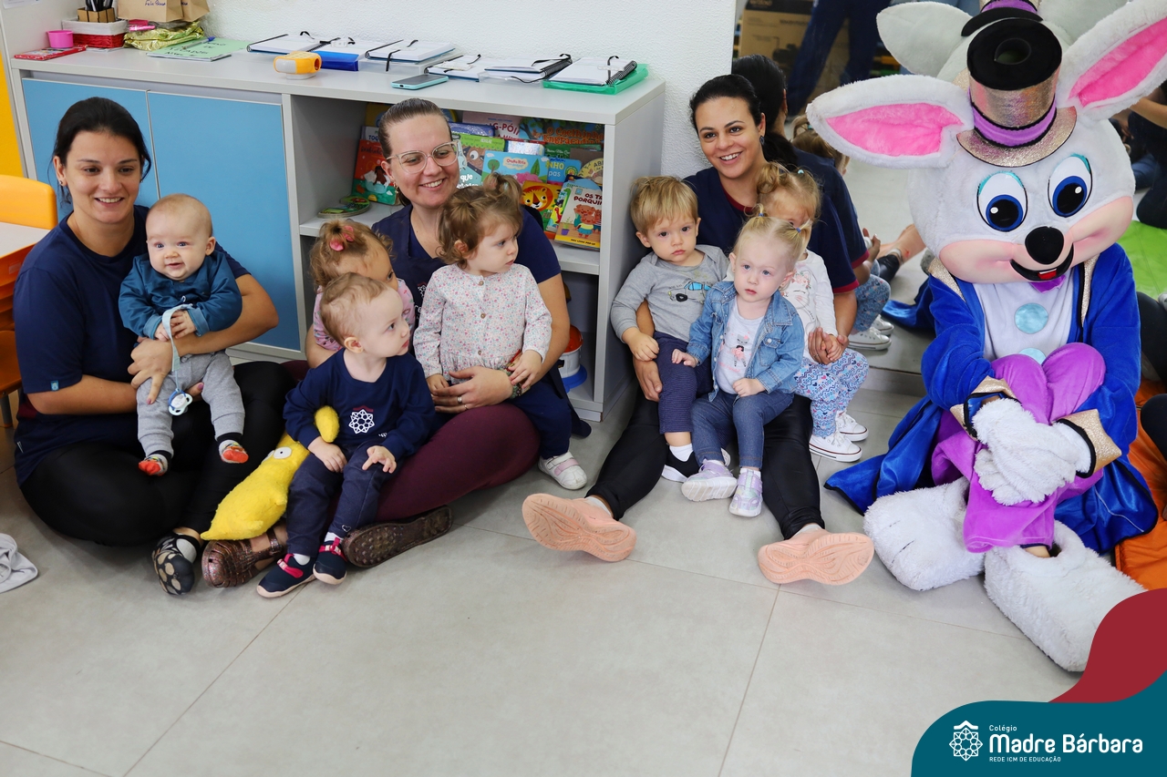 Na quinta-feira (17.04) as turmas da Educação Infantil ao Ensino Médio receberam a visita do Coelho da Páscoa do Grêmio Estudantil (Gembar). No Ensino Médio, o Gembar esteve acompanhado pela coordenação pedagógica, que entregou um mimo para os alunos e professores. Já na Educação Infantil e nos Anos Iniciais, as crianças aproveitaram para abraçar e fazer fotos com o amigo Coelho, já que ele havia deixado o ninho escondido por espaços do Colégio. Foi um dia muito alegre e feliz. Parabéns para o Gembar pela dedicação e por tornar o dia das crianças mais encantador e especial.