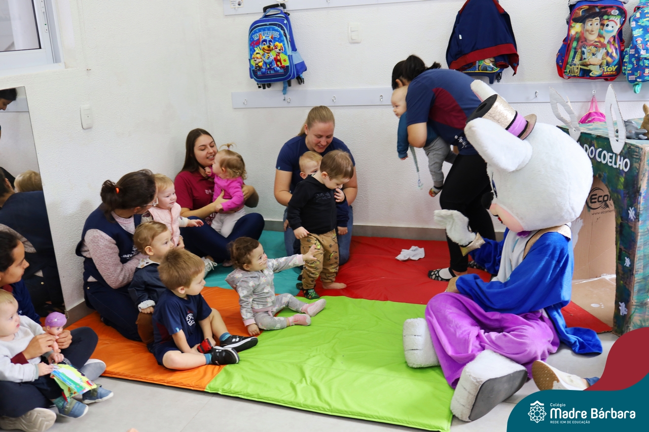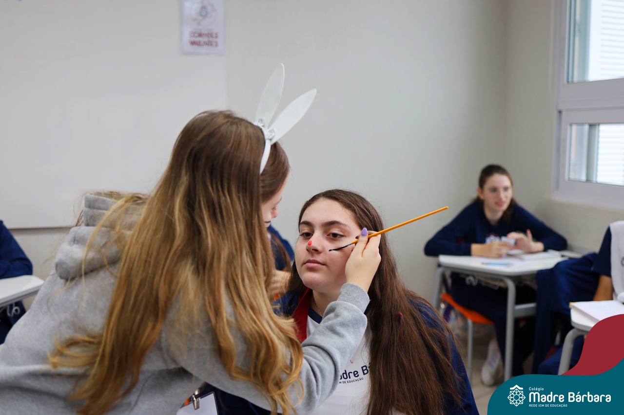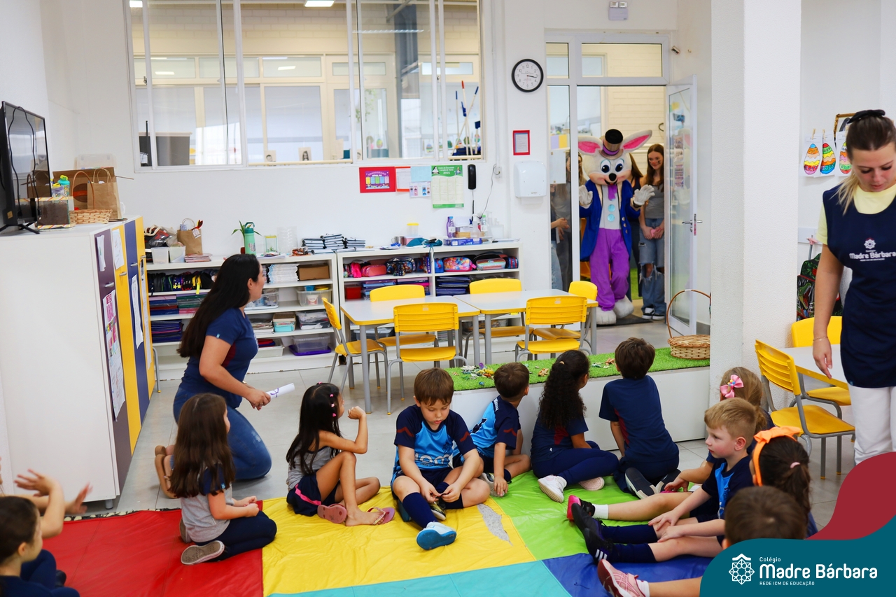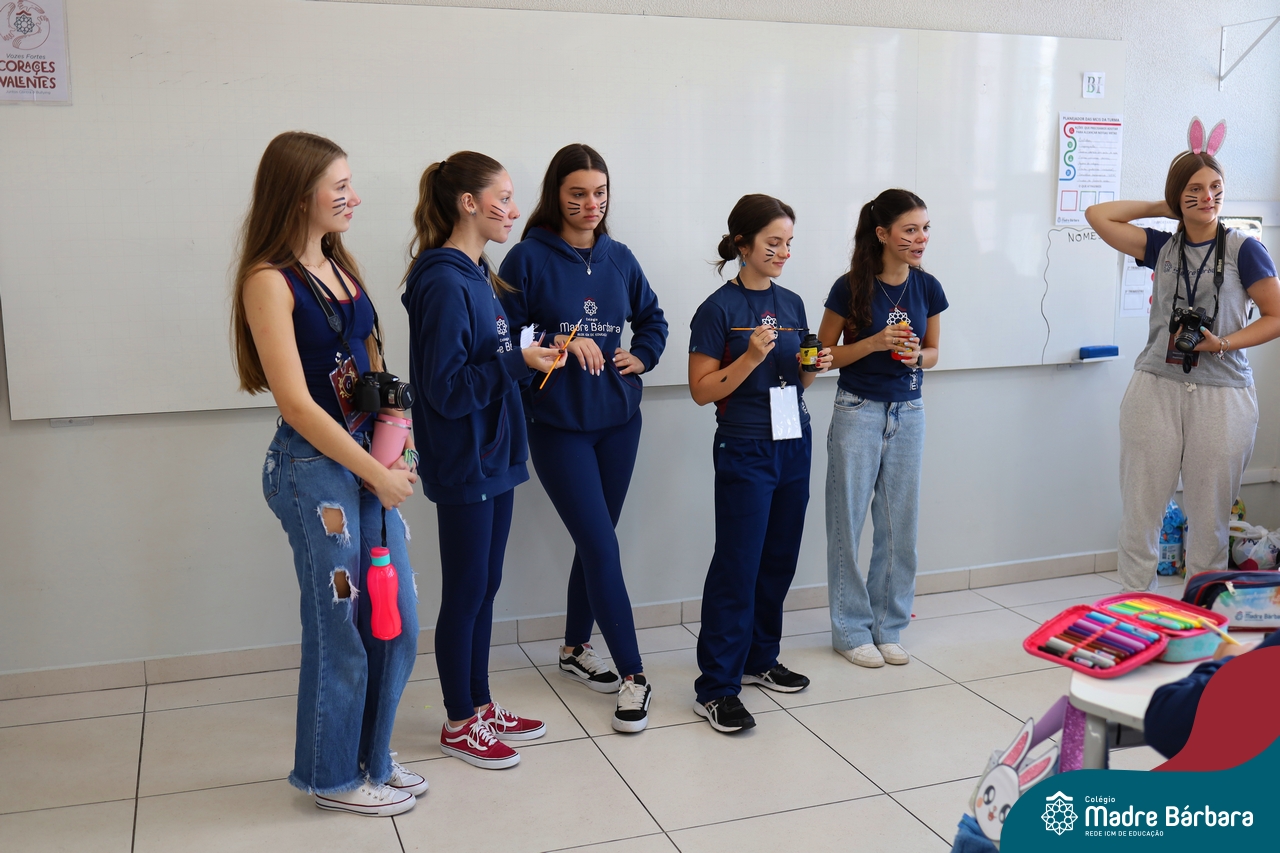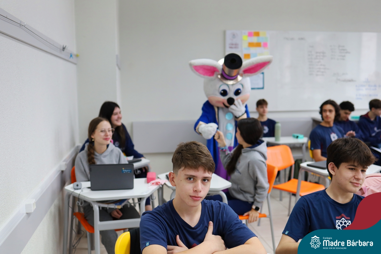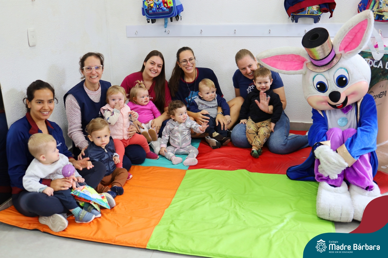 Na quinta-feira (17.04) as turmas da Educação Infantil ao Ensino Médio receberam a visita do Coelho da Páscoa do Grêmio Estudantil (Gembar). No Ensino Médio, o Gembar esteve acompanhado pela coordenação pedagógica, que entregou um mimo para os alunos e professores. Já na Educação Infantil e nos Anos Iniciais, as crianças aproveitaram para abraçar e fazer fotos com o amigo Coelho, já que ele havia deixado o ninho escondido por espaços do Colégio. Foi um dia muito alegre e feliz. Parabéns para o Gembar pela dedicação e por tornar o dia das crianças mais encantador e especial.