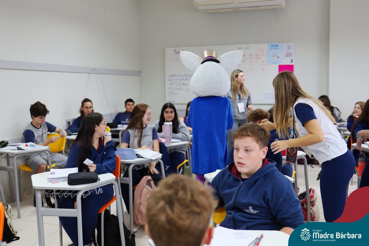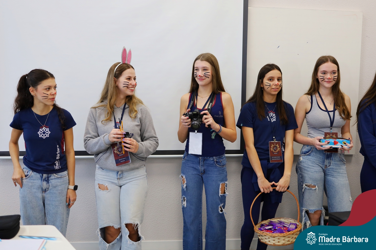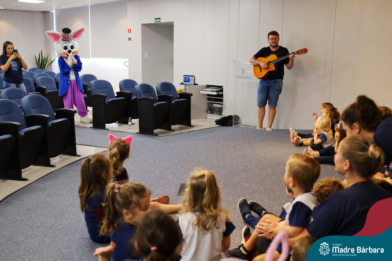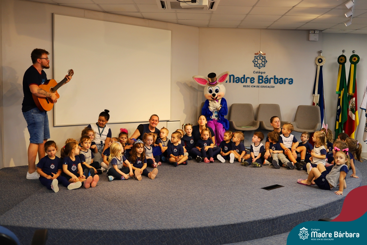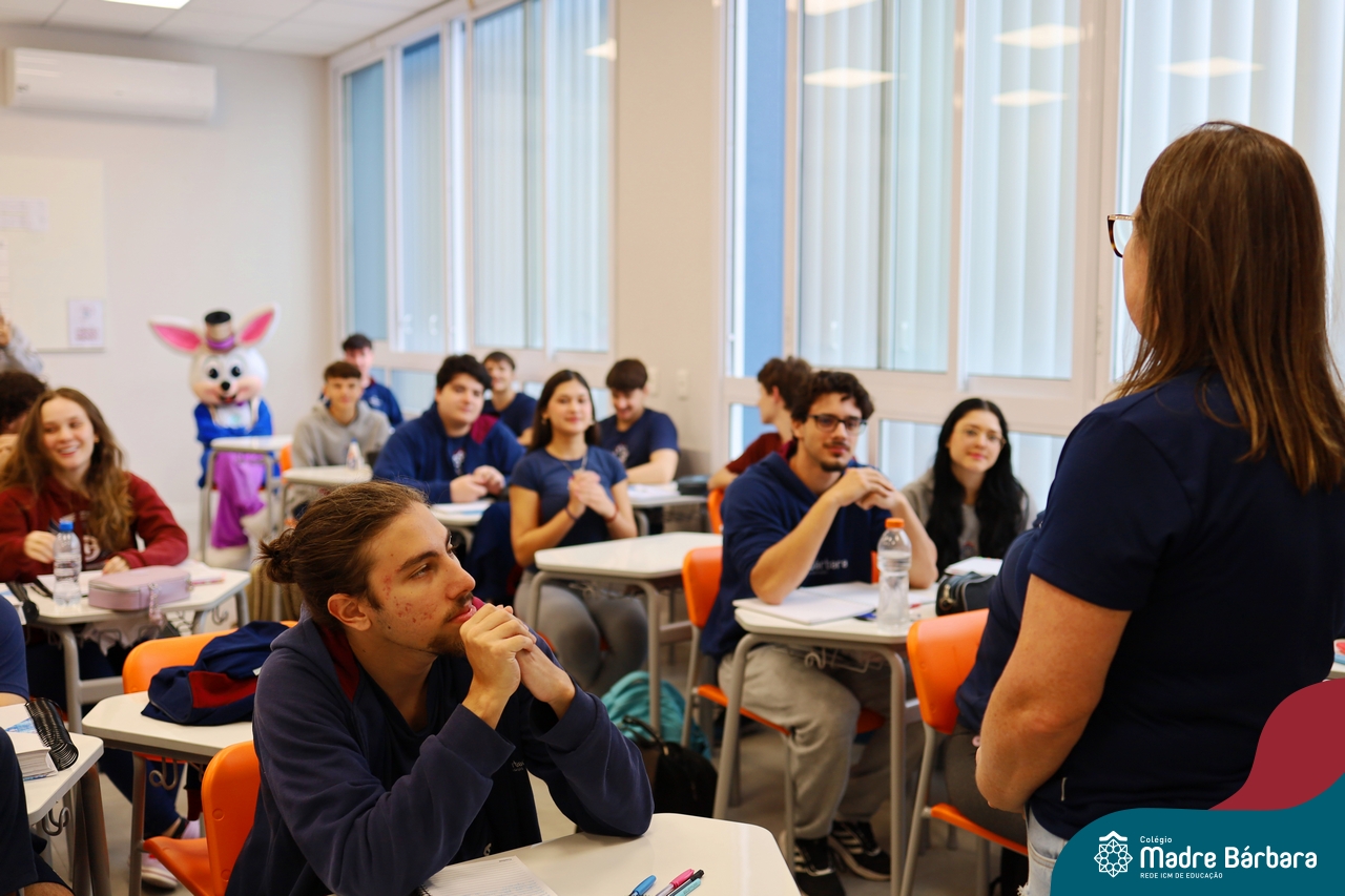 Na quinta-feira (17.04) as turmas da Educação Infantil ao Ensino Médio receberam a visita do Coelho da Páscoa do Grêmio Estudantil (Gembar). No Ensino Médio, o Gembar esteve acompanhado pela coordenação pedagógica, que entregou um mimo para os alunos e professores. Já na Educação Infantil e nos Anos Iniciais, as crianças aproveitaram para abraçar e fazer fotos com o amigo Coelho, já que ele havia deixado o ninho escondido por espaços do Colégio. Foi um dia muito alegre e feliz. Parabéns para o Gembar pela dedicação e por tornar o dia das crianças mais encantador e especial.