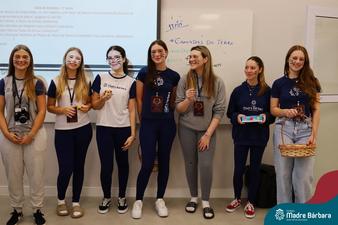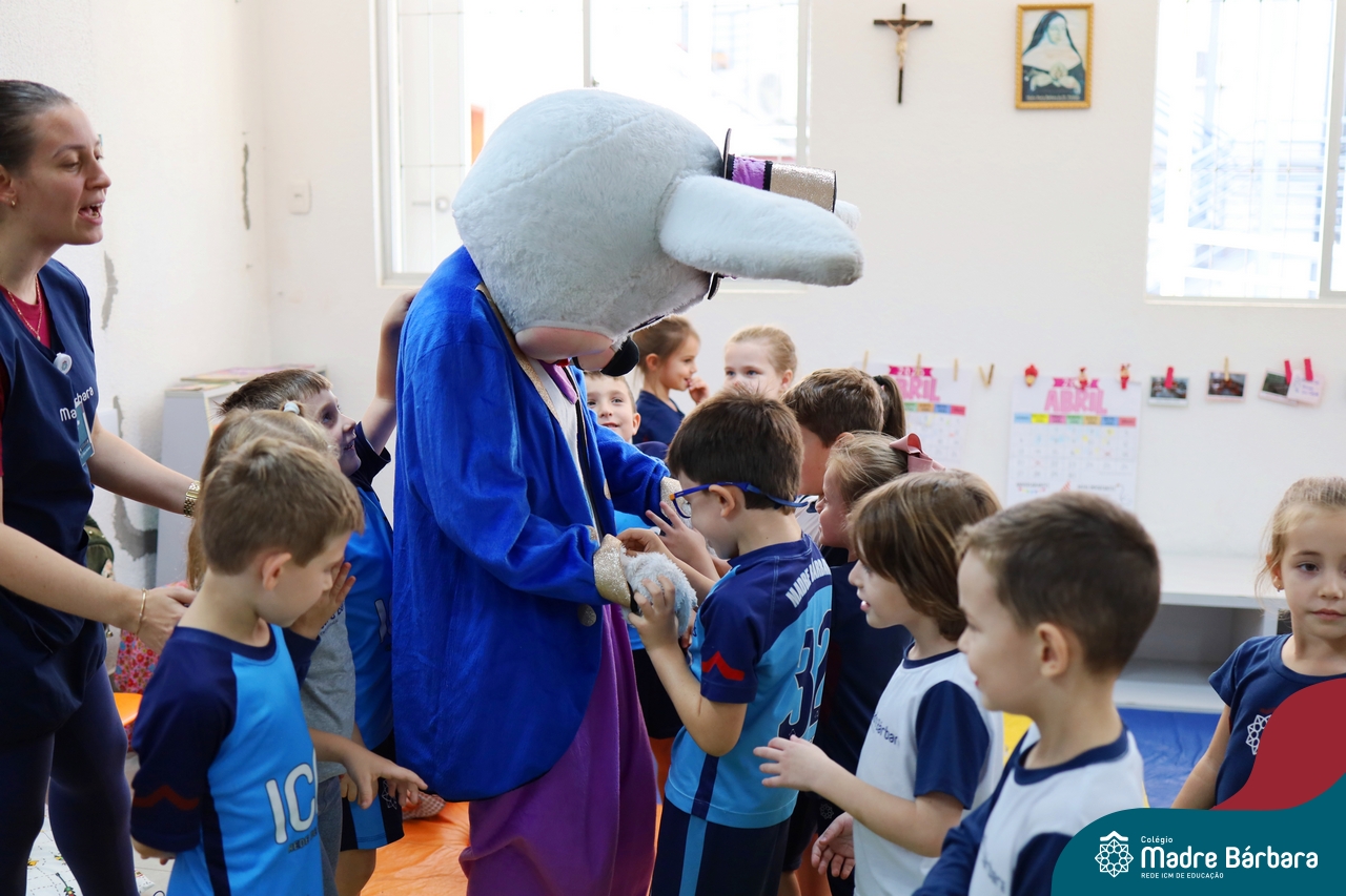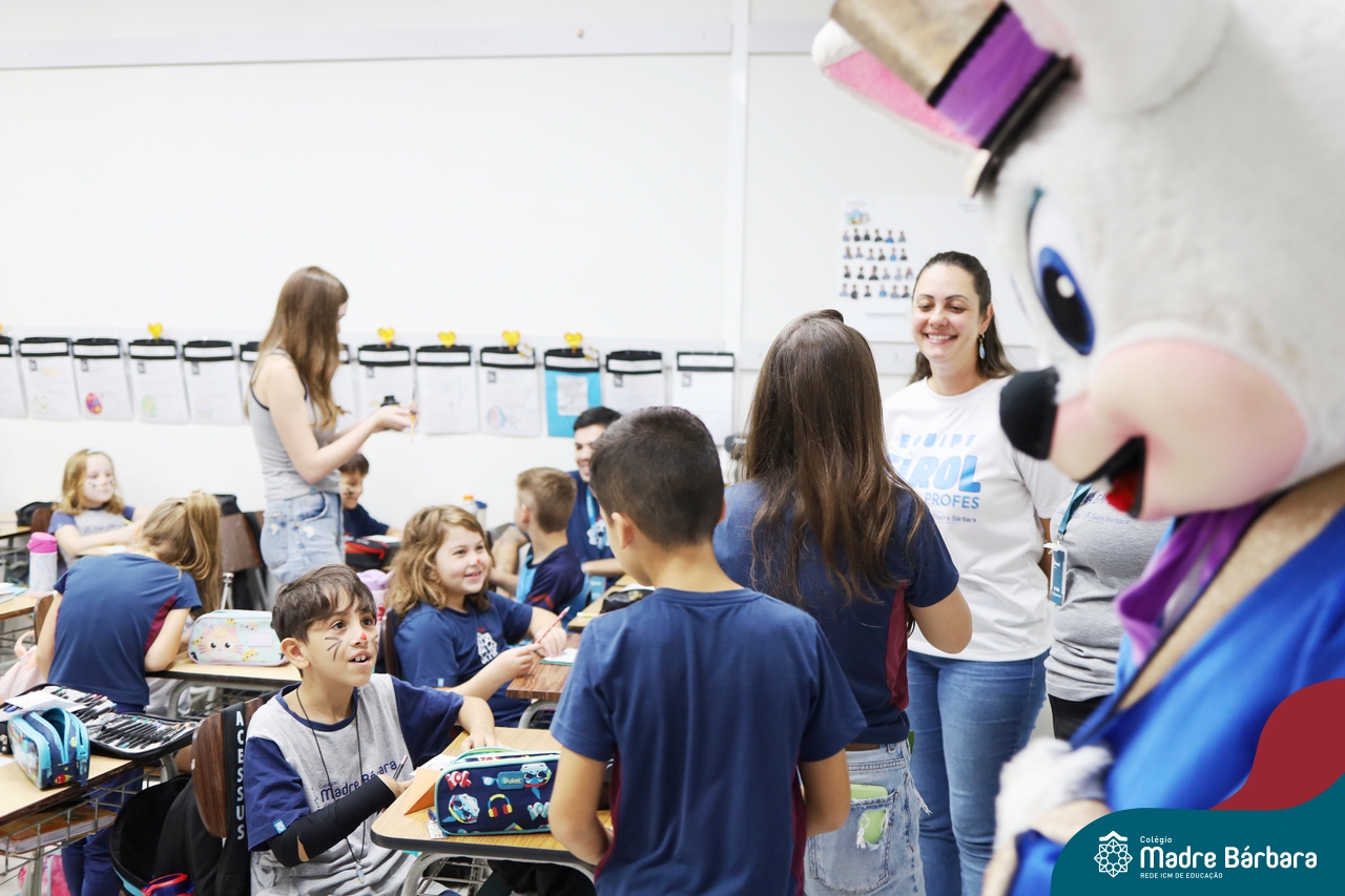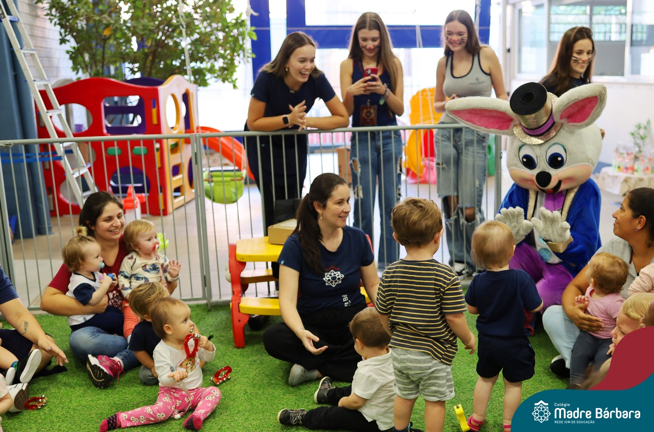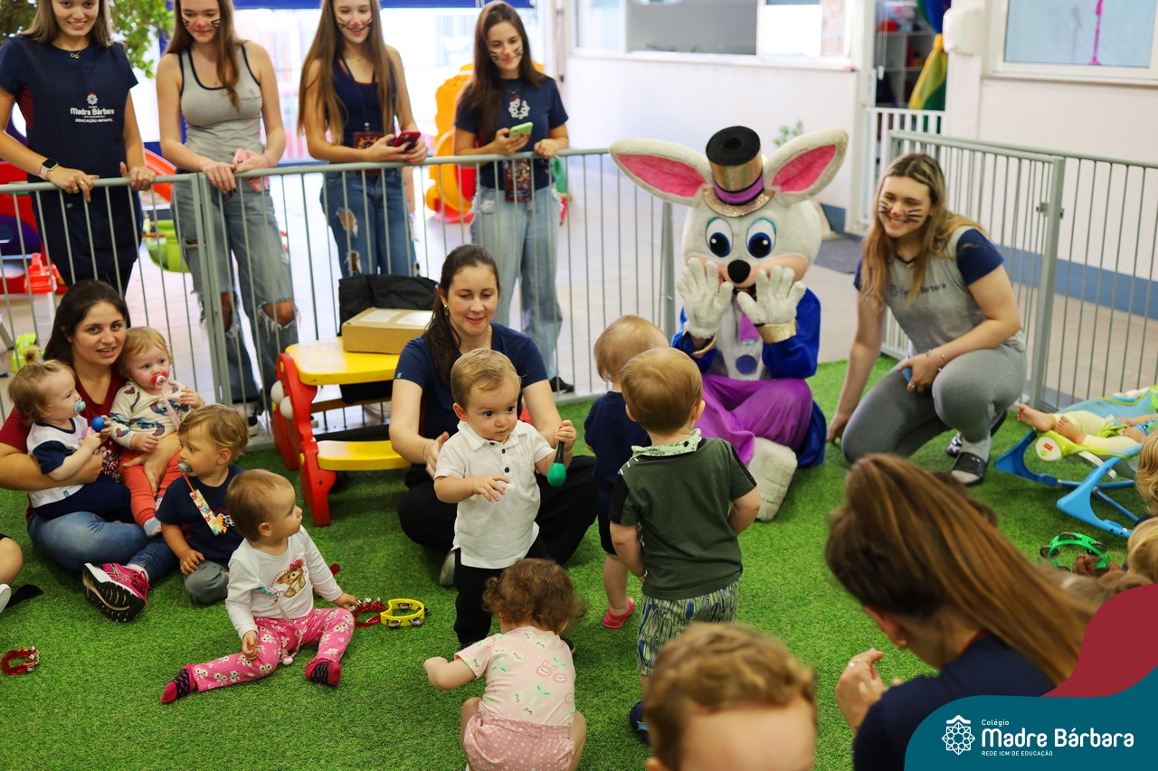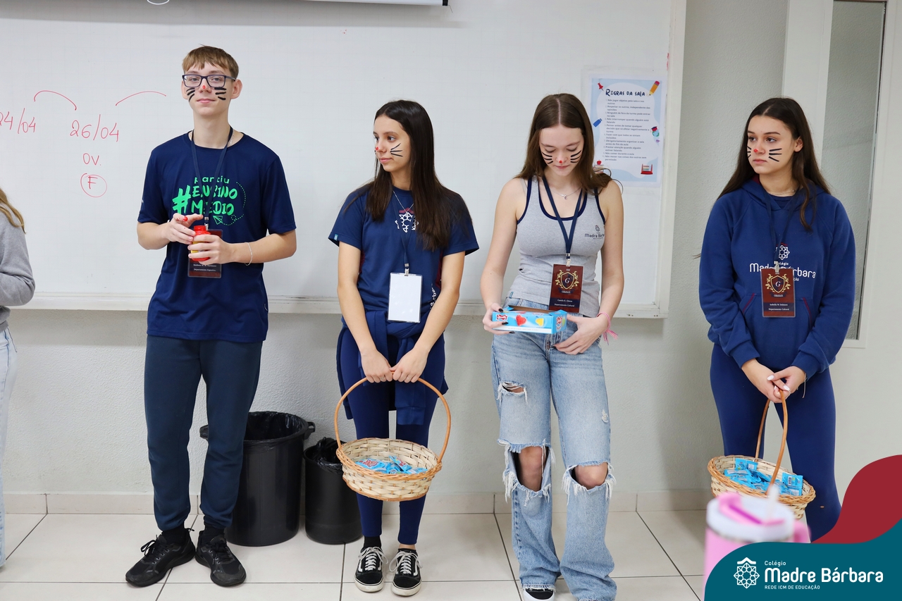 Na quinta-feira (17.04) as turmas da Educação Infantil ao Ensino Médio receberam a visita do Coelho da Páscoa do Grêmio Estudantil (Gembar). No Ensino Médio, o Gembar esteve acompanhado pela coordenação pedagógica, que entregou um mimo para os alunos e professores. Já na Educação Infantil e nos Anos Iniciais, as crianças aproveitaram para abraçar e fazer fotos com o amigo Coelho, já que ele havia deixado o ninho escondido por espaços do Colégio. Foi um dia muito alegre e feliz. Parabéns para o Gembar pela dedicação e por tornar o dia das crianças mais encantador e especial.