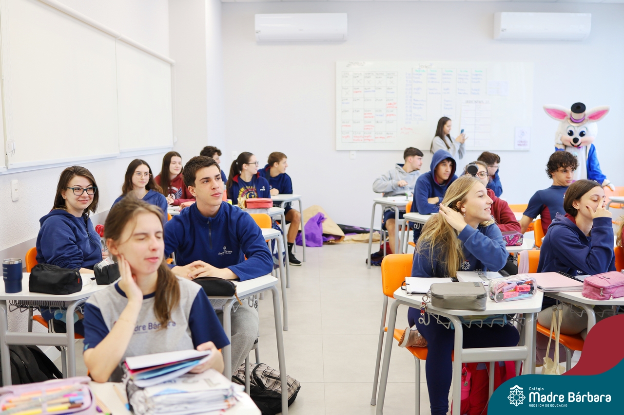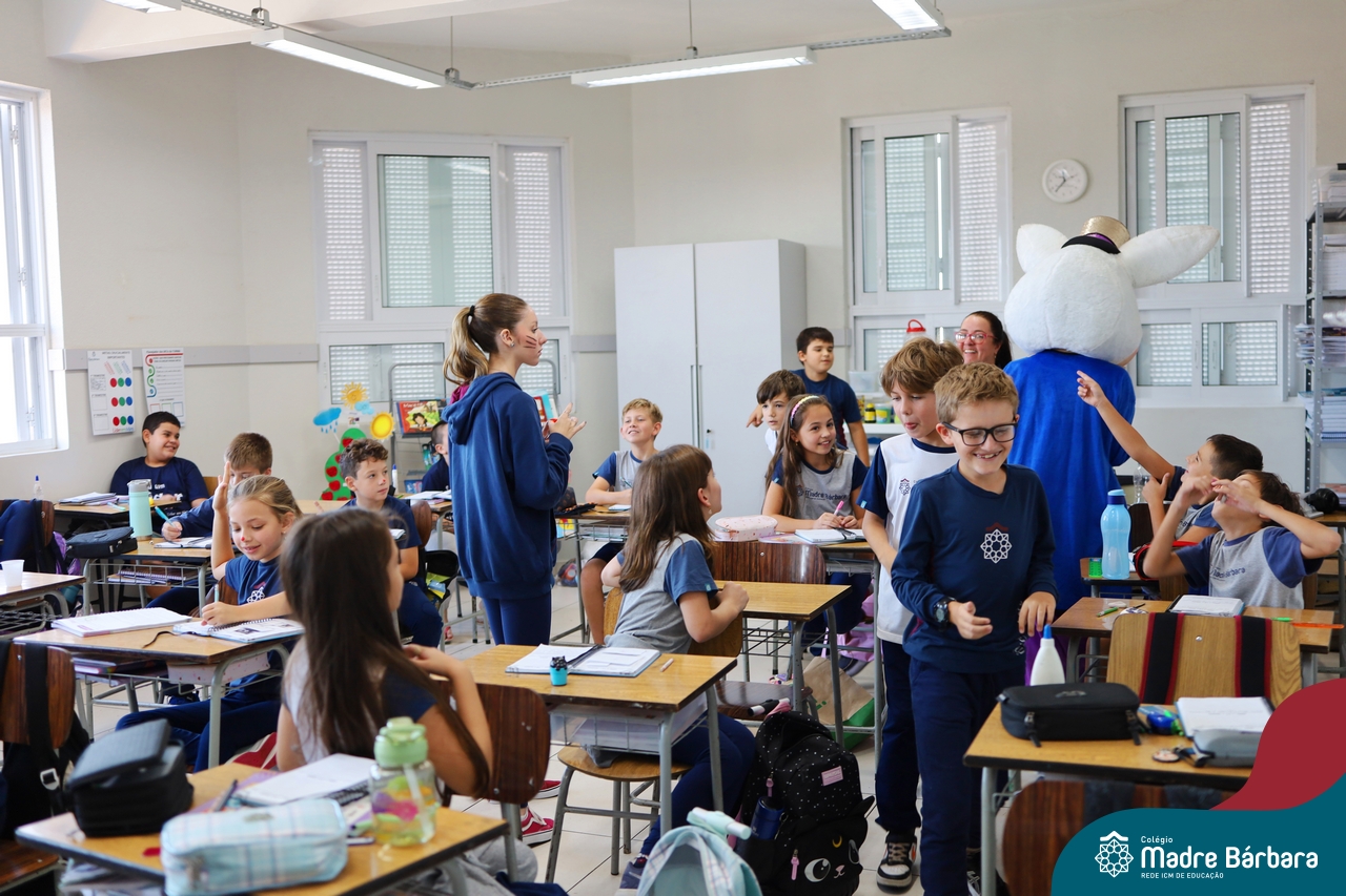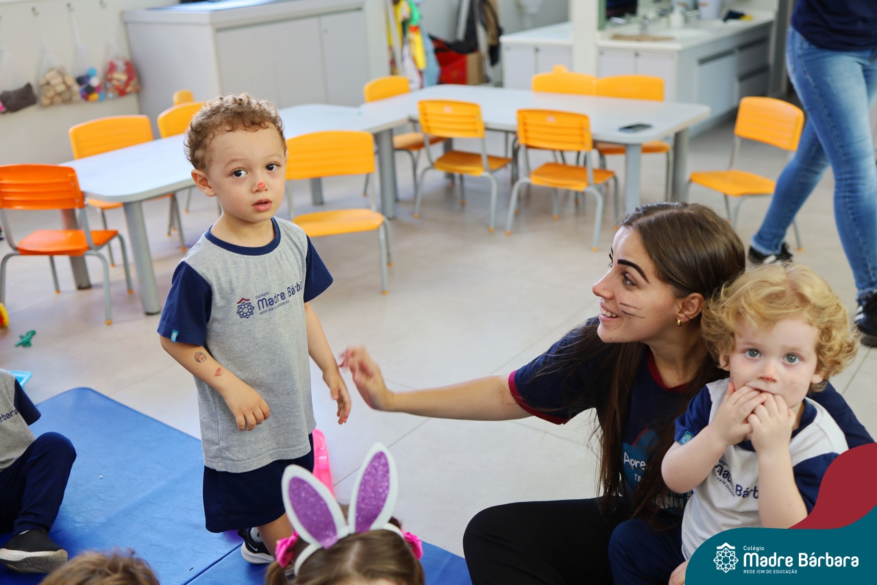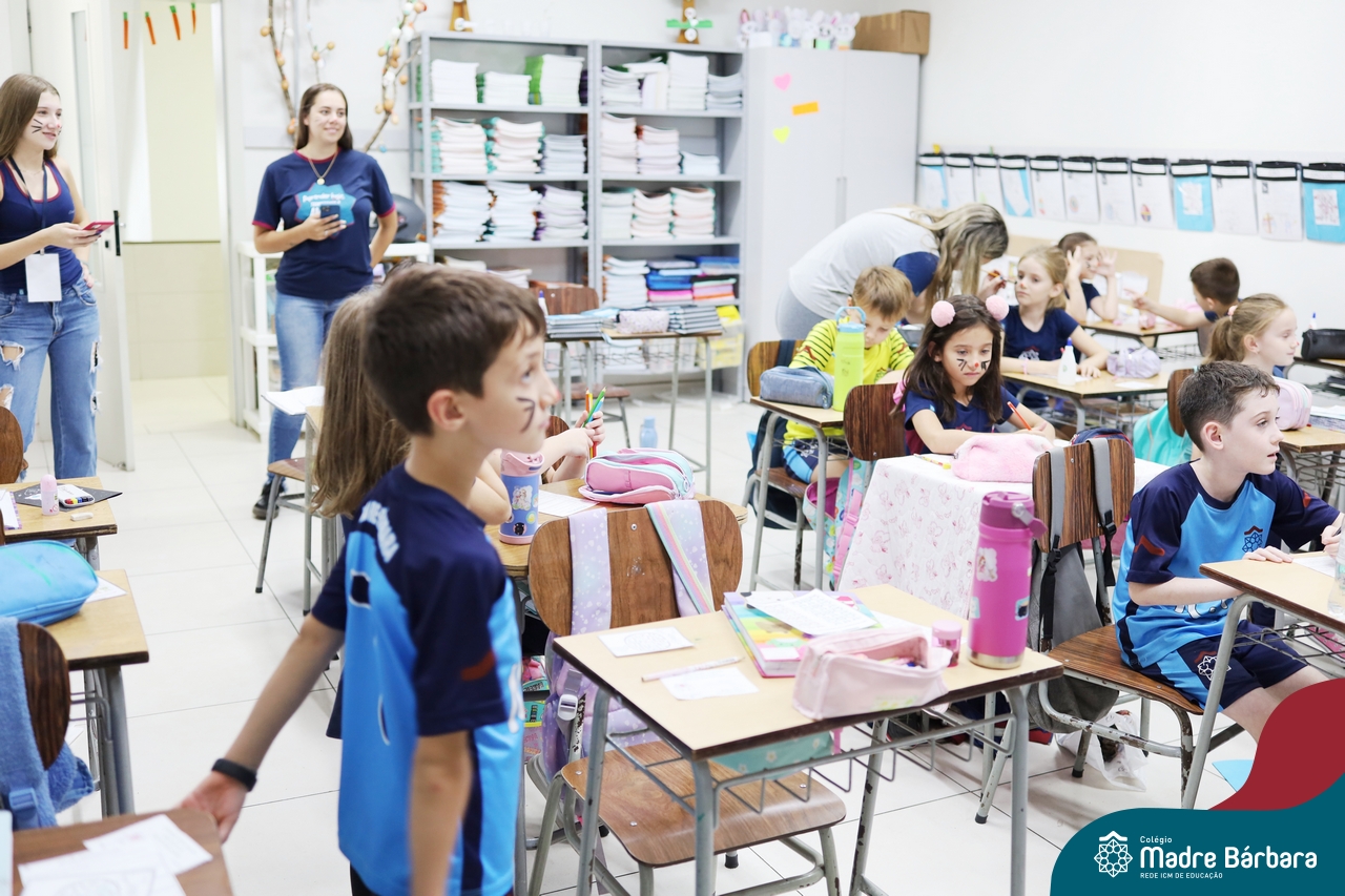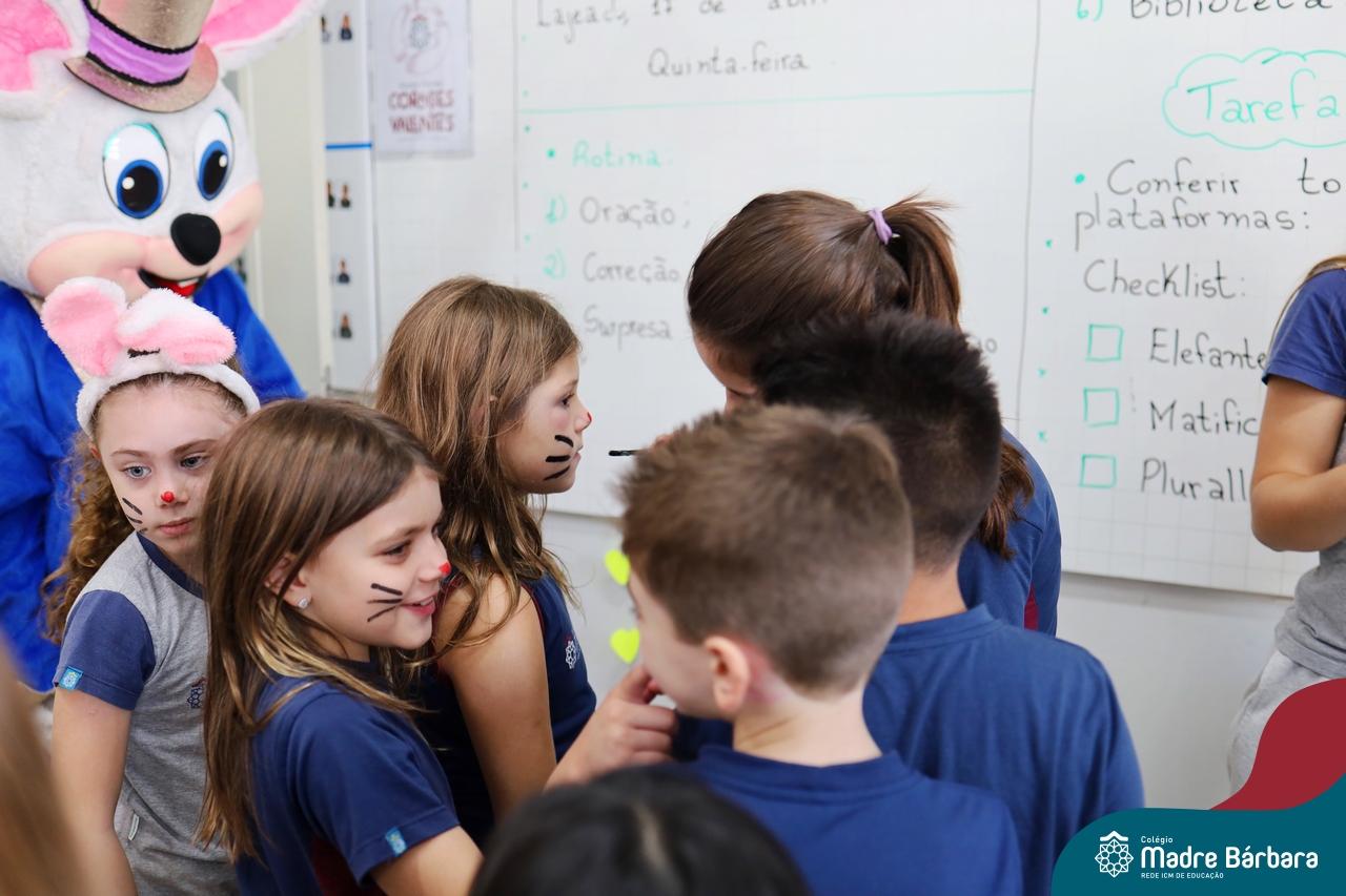 Na quinta-feira (17.04) as turmas da Educação Infantil ao Ensino Médio receberam a visita do Coelho da Páscoa do Grêmio Estudantil (Gembar). No Ensino Médio, o Gembar esteve acompanhado pela coordenação pedagógica, que entregou um mimo para os alunos e professores. Já na Educação Infantil e nos Anos Iniciais, as crianças aproveitaram para abraçar e fazer fotos com o amigo Coelho, já que ele havia deixado o ninho escondido por espaços do Colégio. Foi um dia muito alegre e feliz. Parabéns para o Gembar pela dedicação e por tornar o dia das crianças mais encantador e especial.