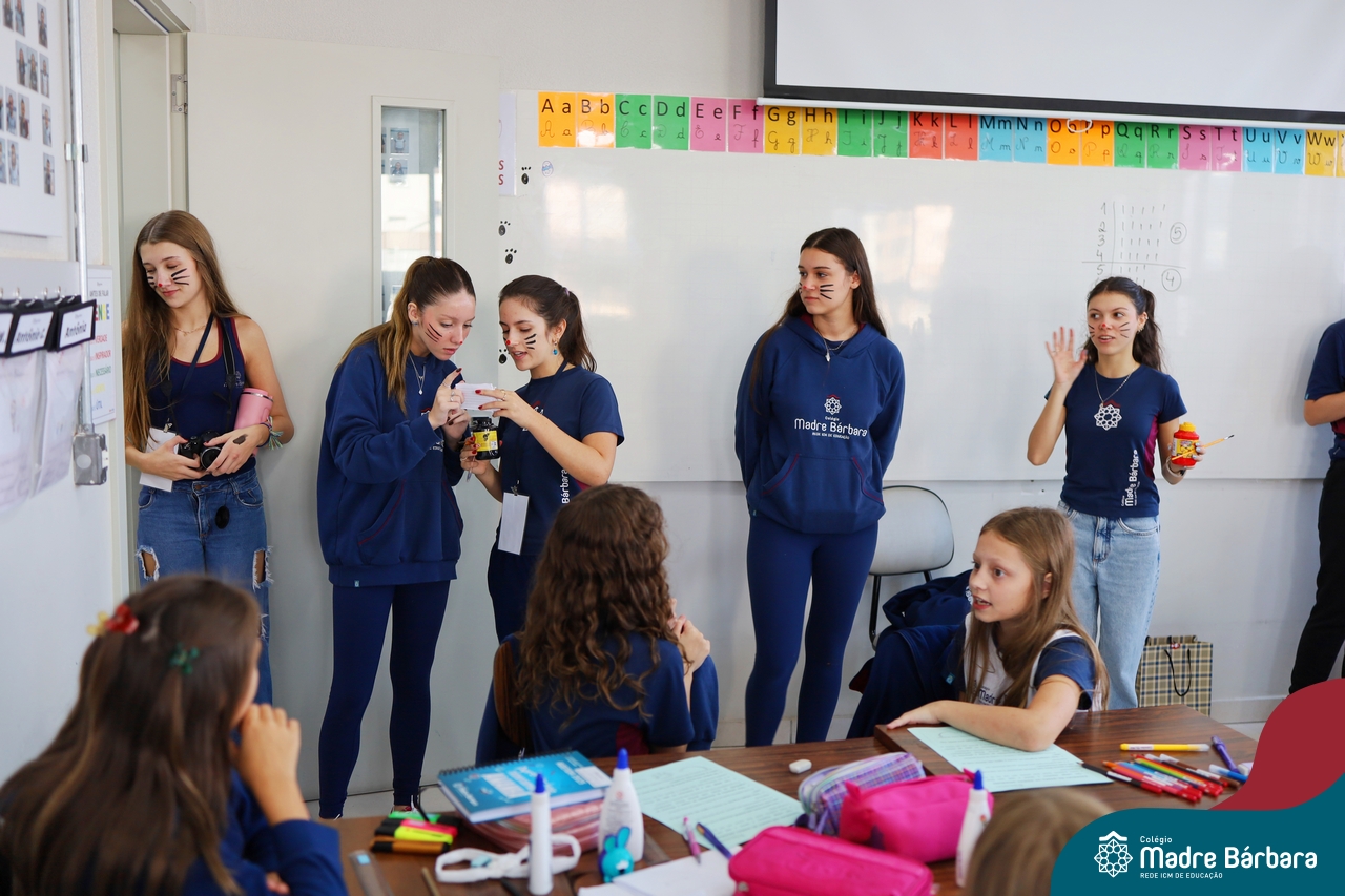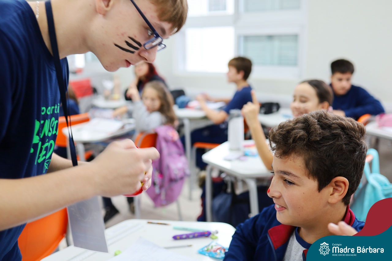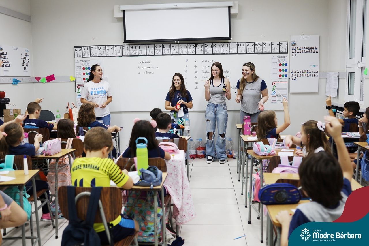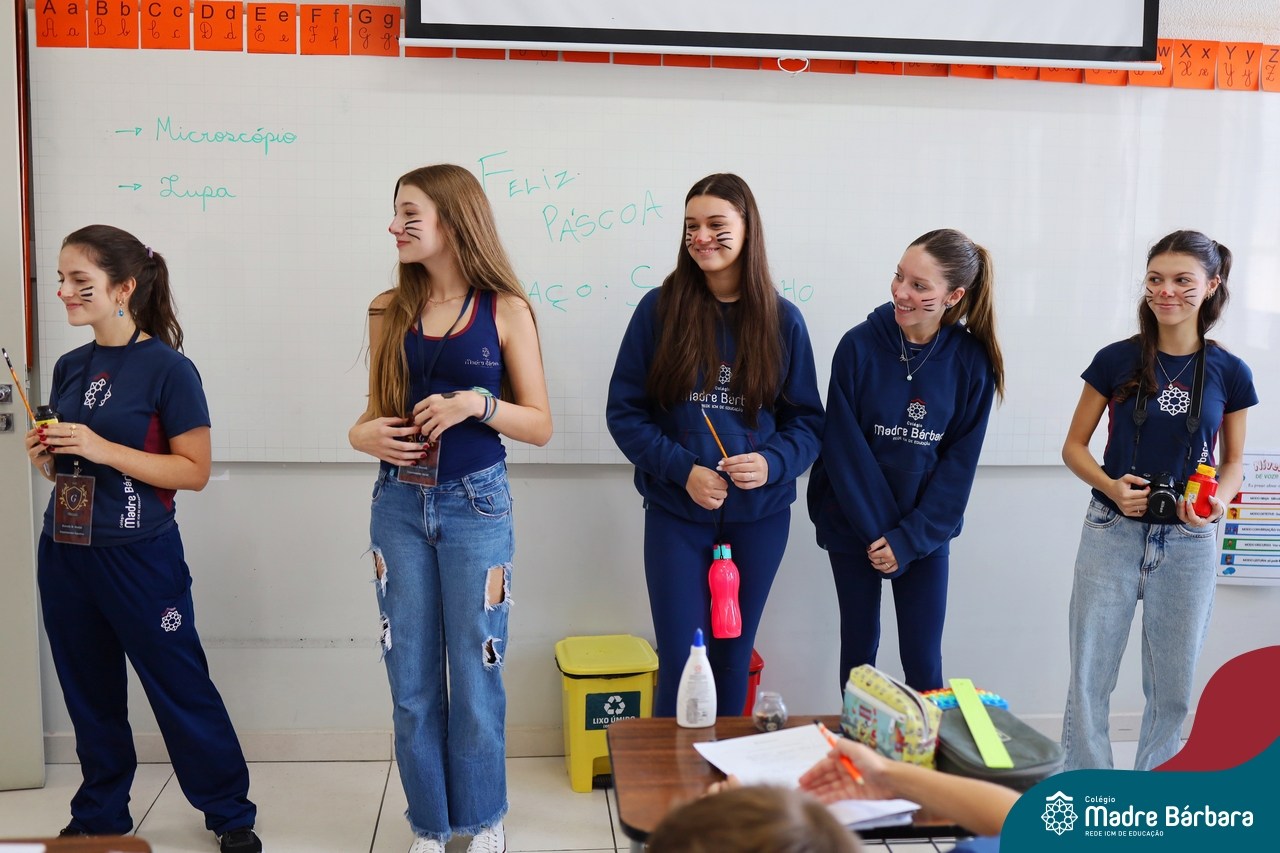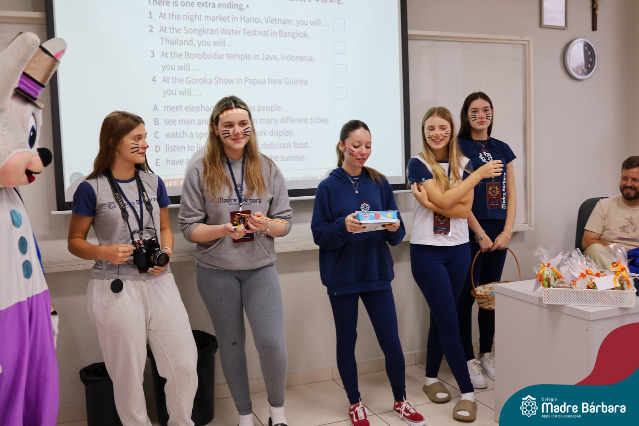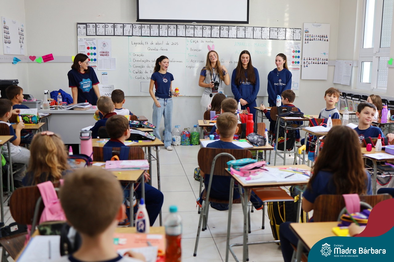 Na quinta-feira (17.04) as turmas da Educação Infantil ao Ensino Médio receberam a visita do Coelho da Páscoa do Grêmio Estudantil (Gembar). No Ensino Médio, o Gembar esteve acompanhado pela coordenação pedagógica, que entregou um mimo para os alunos e professores. Já na Educação Infantil e nos Anos Iniciais, as crianças aproveitaram para abraçar e fazer fotos com o amigo Coelho, já que ele havia deixado o ninho escondido por espaços do Colégio. Foi um dia muito alegre e feliz. Parabéns para o Gembar pela dedicação e por tornar o dia das crianças mais encantador e especial.