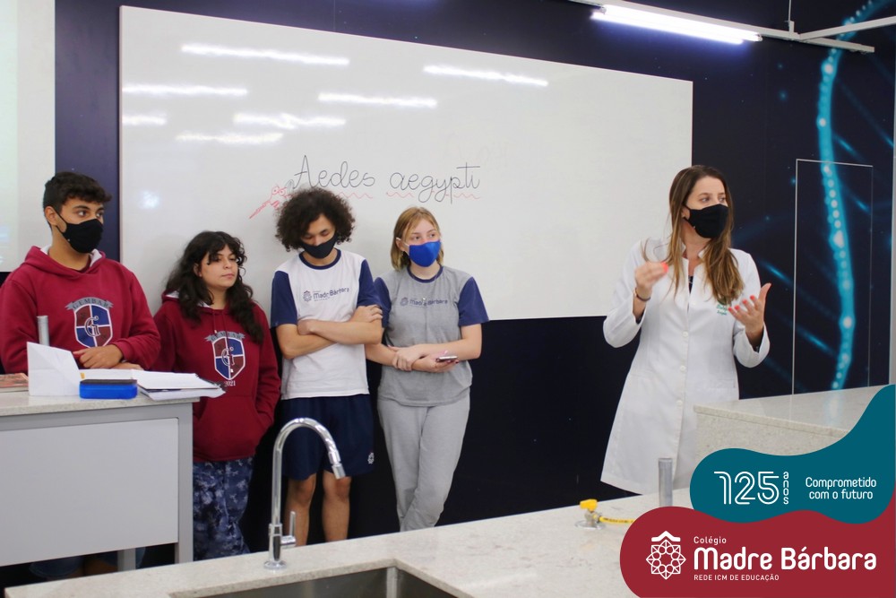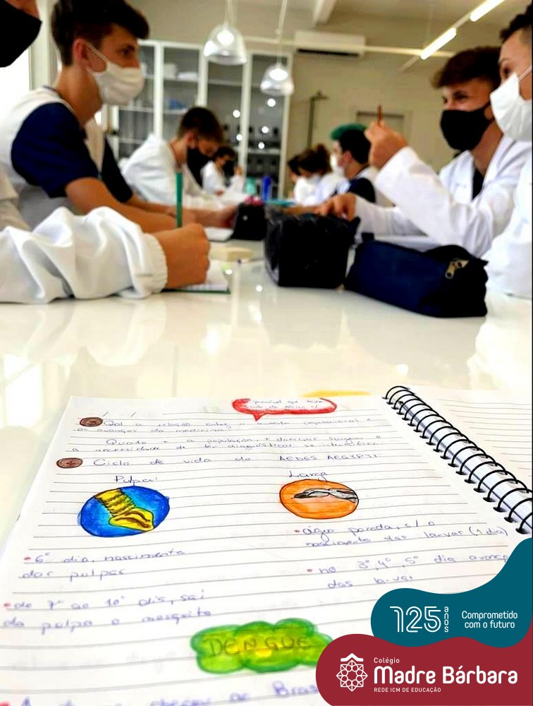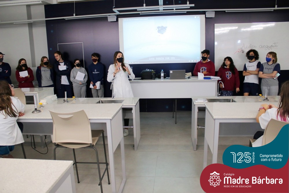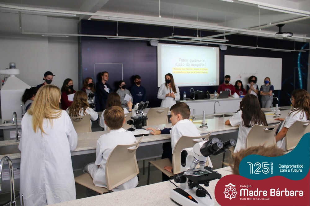 Durante as últimas semanas as turmas do 6º ano do Ensino Fundamental ao 3º ano do Ensino Médio desenvolveram aulas práticas relacionadas ao estudo do ciclo biológico do mosquito Aedes aegypti, vetor do vírus da Dengue. A partir da compreensão das características morfológicas e fisiológicas do inseto, ações de combate à proliferação auxiliarão no controle da disseminação da doença. As atividades foram planejadas pelas Professoras de Ciências e Biologia do Colégio, Professoras Rosana Fagundes e Ângela Lenz e perpassaram os níveis de Ensino do Educandário. Turmas do 9º Ensino Fundamental, 1º e 2º ano do Ensino Médio, aplicaram seus conhecimentos desenvolvendo também práticas no Laboratório de Ciências com turmas dos Anos Iniciais do Ensino Fundamental.