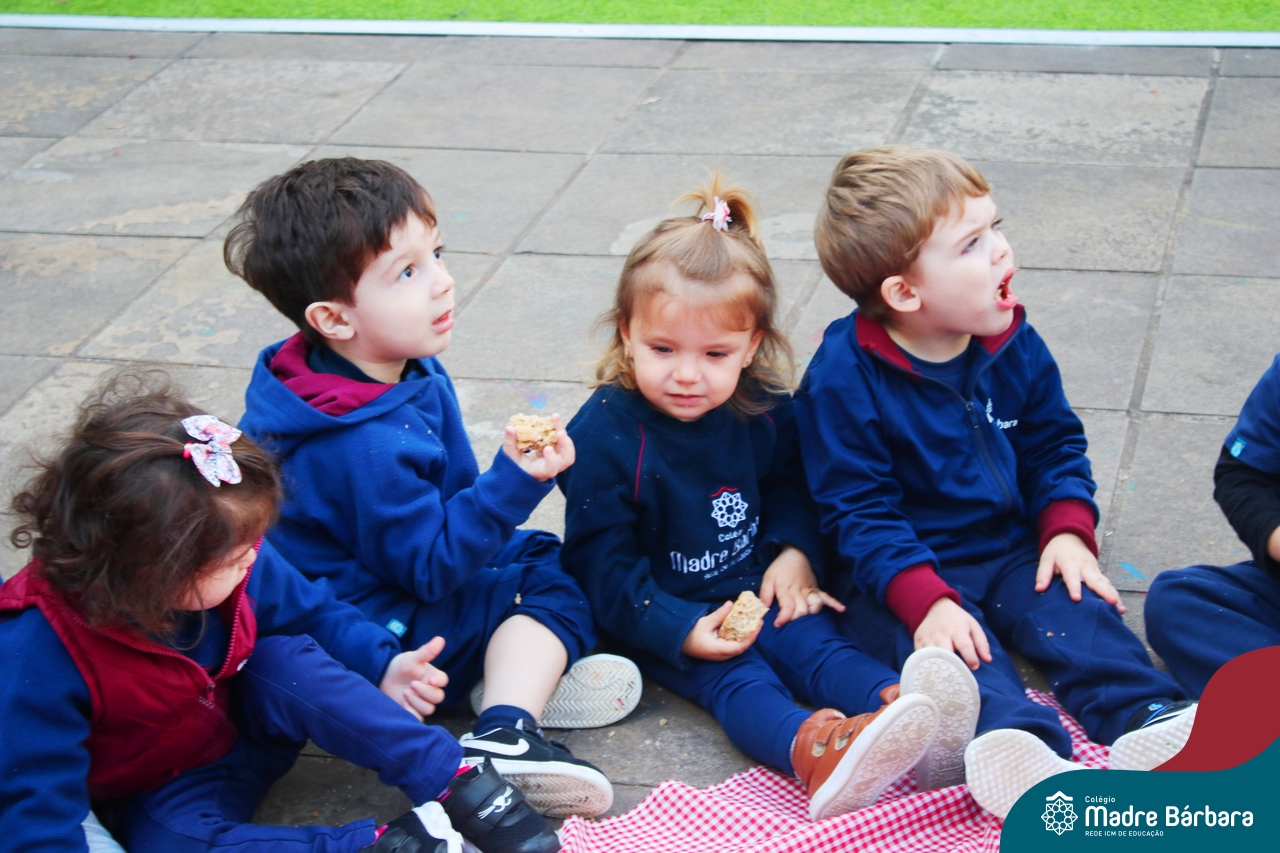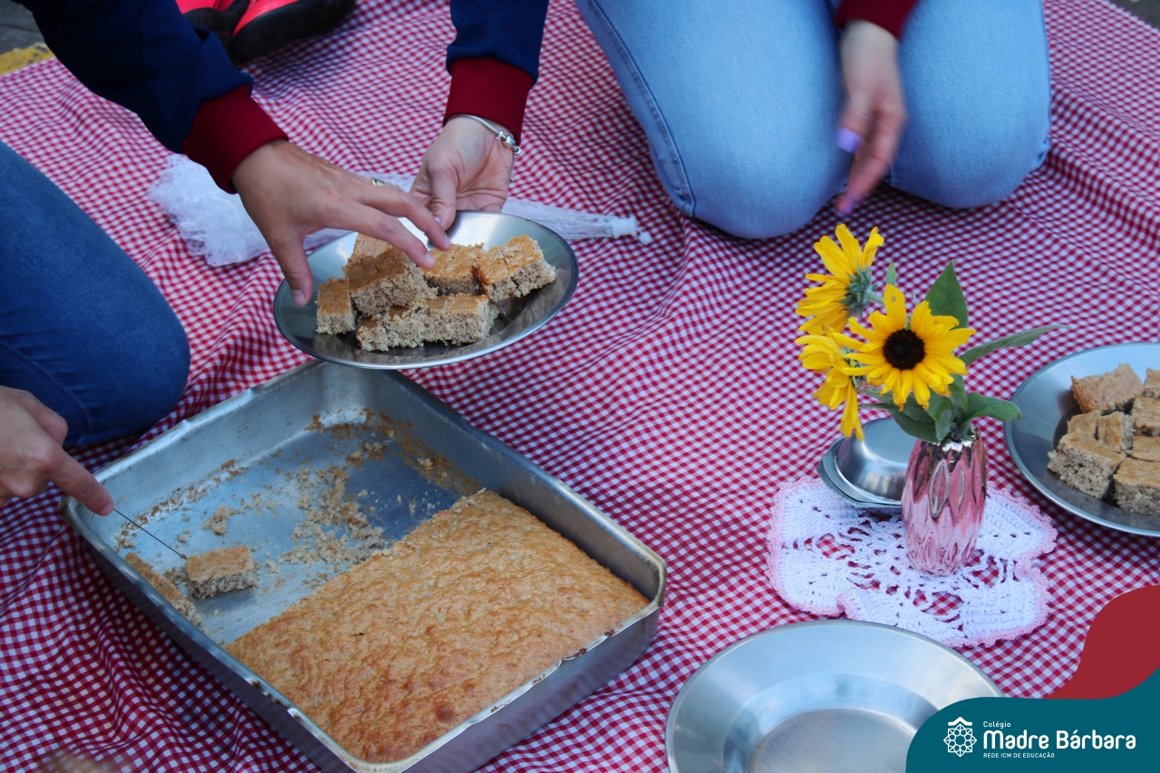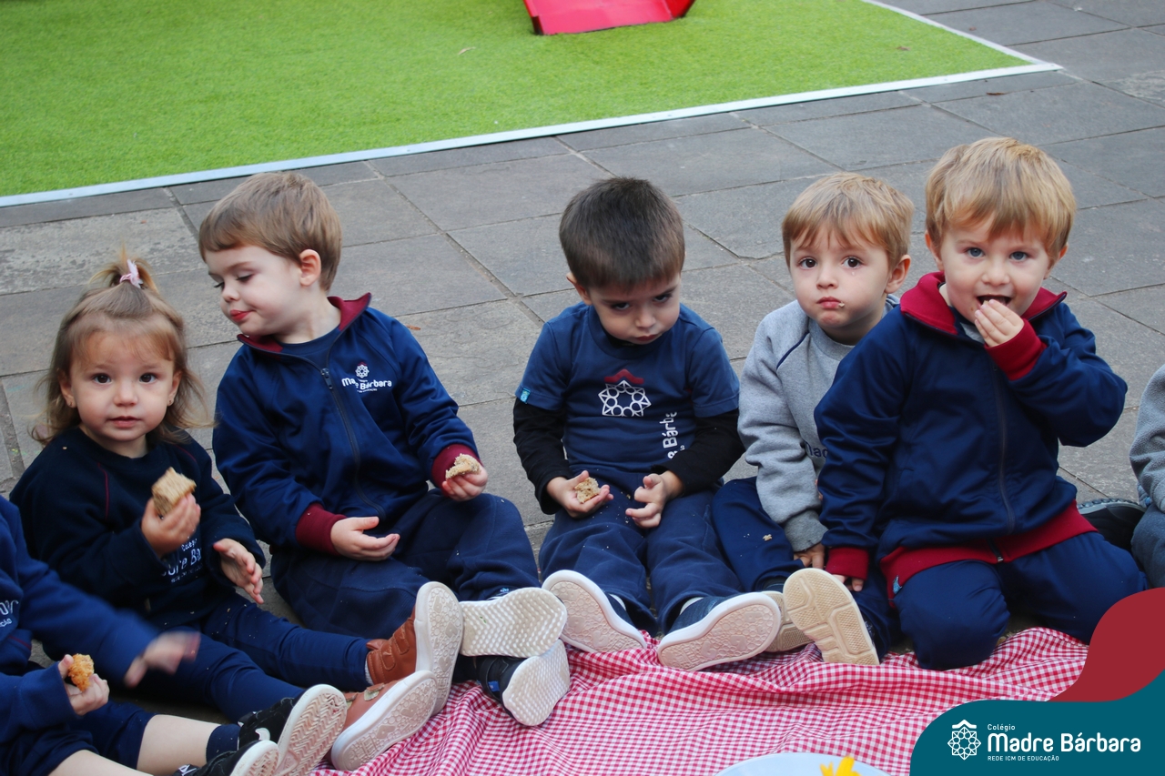 As turmas dos Níveis 2A e 2B fizeram um delicioso bolo de pinhão e posteriormente um piquenique para já entrar no clima. 🔥🎉