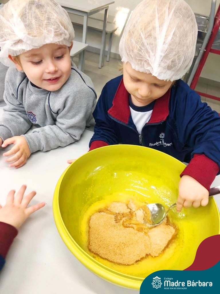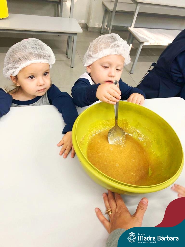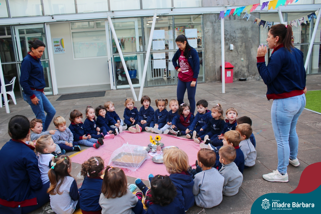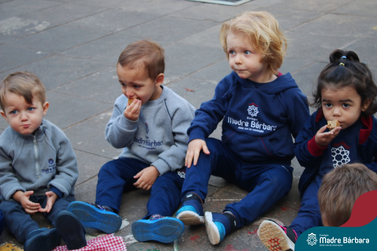 As turmas dos Níveis 2A e 2B fizeram um delicioso bolo de pinhão e posteriormente um piquenique para já entrar no clima. 🔥🎉