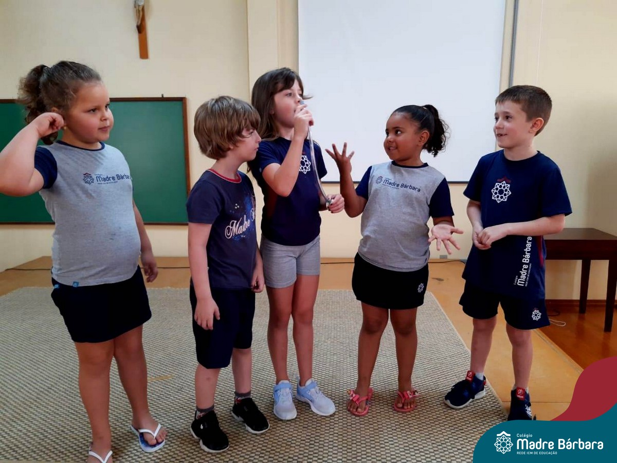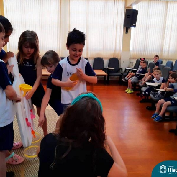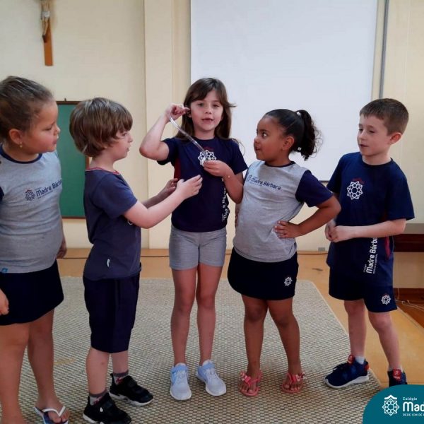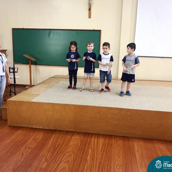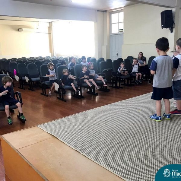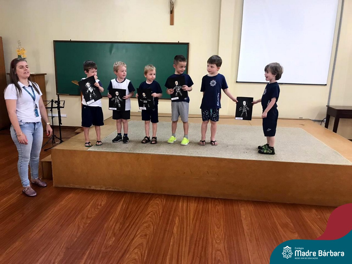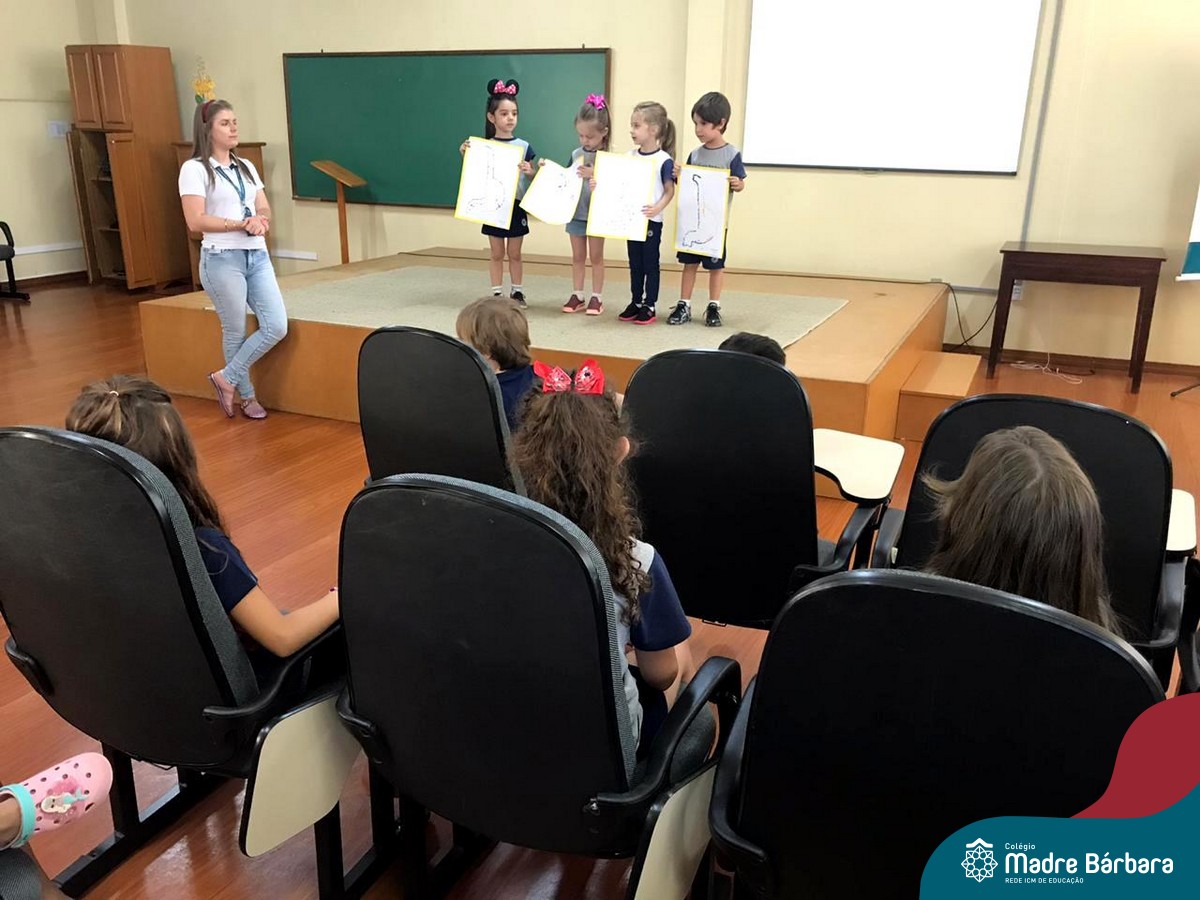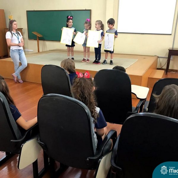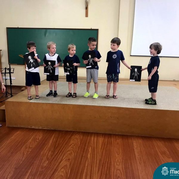 Na tarde de quarta-feira, dia 06 de novembro, as turmas dos Níveis 3A e 5C, juntamente com as professoras Letícia, Jaqueline, Christiane e Milene proporcionaram um momento de troca de saberes dentro da temática dos projetos em que as turmas estão envolvidas. Os pequenos pesquisadores envolvidos nos projetos “Quem eu sou. Como me chamo?” e “Corpo humano: meu corpo, teu corpo, nosso corpo”, apresentaram aos colegas aprendizados construídos no decorrer dos projetos com muita dedicação e entusiasmo.