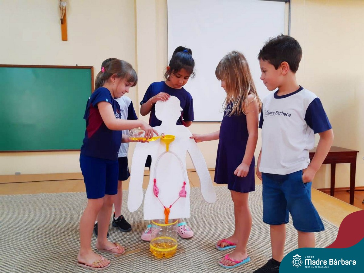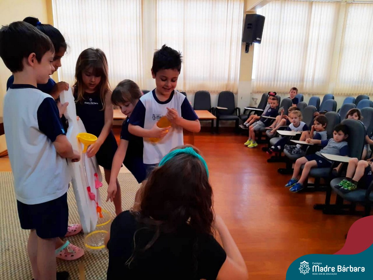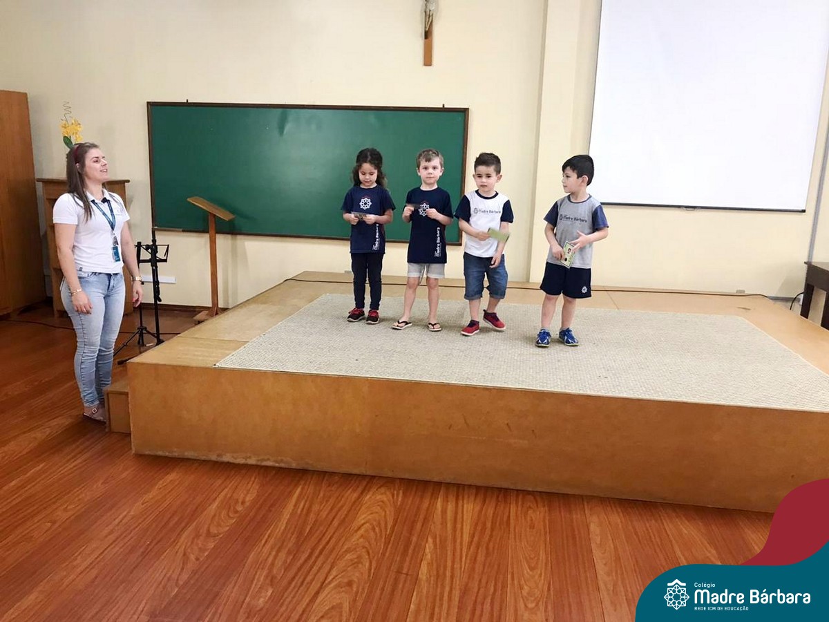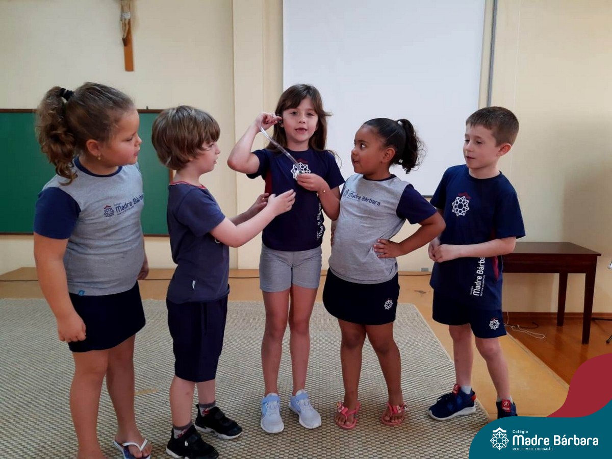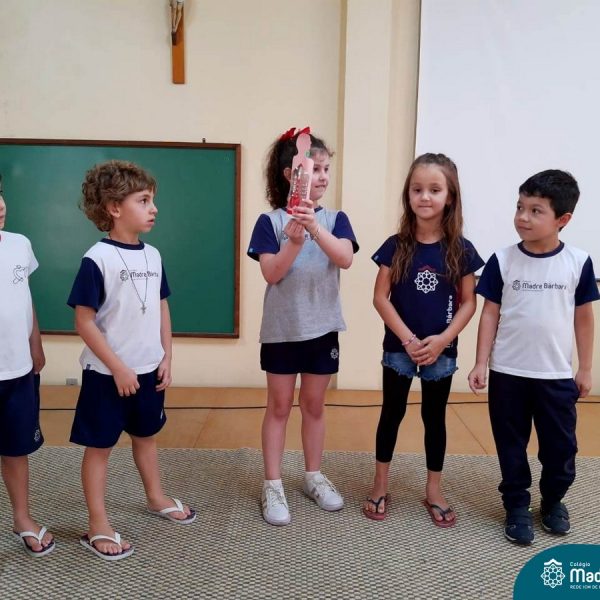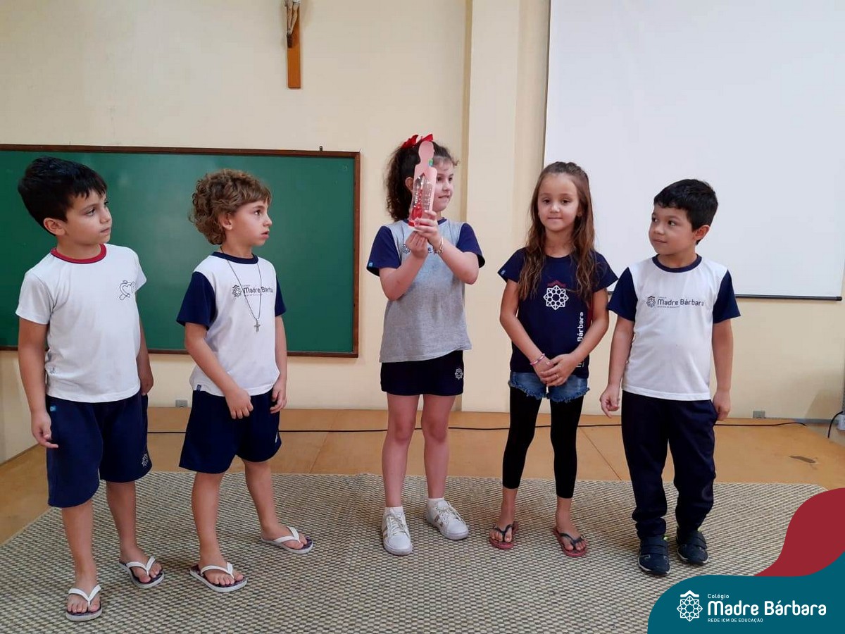 Na tarde de quarta-feira, dia 06 de novembro, as turmas dos Níveis 3A e 5C, juntamente com as professoras Letícia, Jaqueline, Christiane e Milene proporcionaram um momento de troca de saberes dentro da temática dos projetos em que as turmas estão envolvidas. Os pequenos pesquisadores envolvidos nos projetos “Quem eu sou. Como me chamo?” e “Corpo humano: meu corpo, teu corpo, nosso corpo”, apresentaram aos colegas aprendizados construídos no decorrer dos projetos com muita dedicação e entusiasmo.