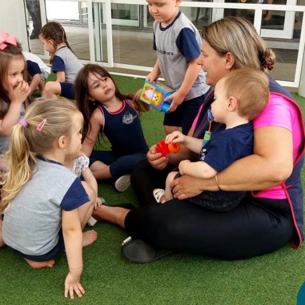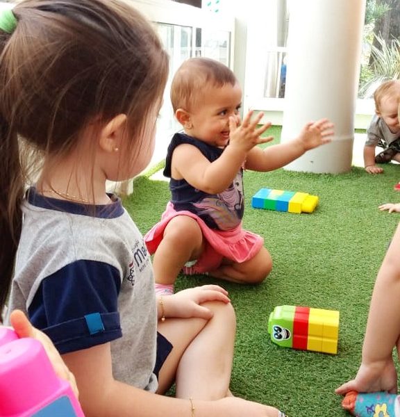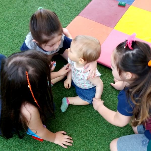 No intuito de aprimorar os laços e criar ainda mais vínculos entre as crianças, as professoras Jéssica e Rossete e as monitoras Deise e Fernanda prepararam uma linda tarde de integração entre as turmas dos níveis 1A e 3C, através da socialização dos projetos “Cuidar” e “Eu, você e o nosso mundo na escola”. Compartilharam abraços, sorrisos, engatinhadas, colos e muita música. Segundo as professoras, o compartilhar é muito mais do que o ato material de emprestar alguma coisa. “Abrange também outros valores como a entrega, a dedicação e o tempo.