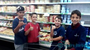 Os alunos dos 4ºs anos foram até o supermercado STR nessa terça-feira (11) para comprar os produtos que serão doados às entidades carentes nesse Natal. O lucro arrecadado na Feira da Merenda Solidária foi de R$ 3.133,65. Os lanches da Feira foram doados e organizados pelos pais dos alunos das turmas 41 e 42 e vendidos durante o recreio. Essa semana, as Irmãs e a Pastoral conversaram com as duas turmas para explicar como funcionam as doações e sobre as entidades que distribuíram as doações: Fundef, Lar São José, Equipe de Caridade Paróquia Santo Inácio de Loyolla, Centro Terapêutico São Francisco. A Educação Financeira e o Programa O Líder em Mim permearam esse trabalho com o intuito de incentivar a proatividade, o ganha-ganha e compreender para depois ser compreendido. Com essa atividade os alunos tiveram a oportunidade, de mais uma vez, desenvolver a liderança e os hábitos do Projeto O Líder em Mim.