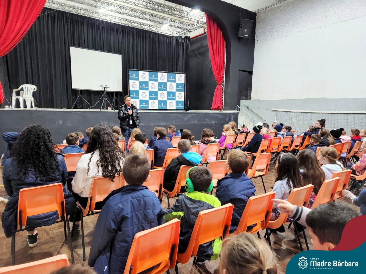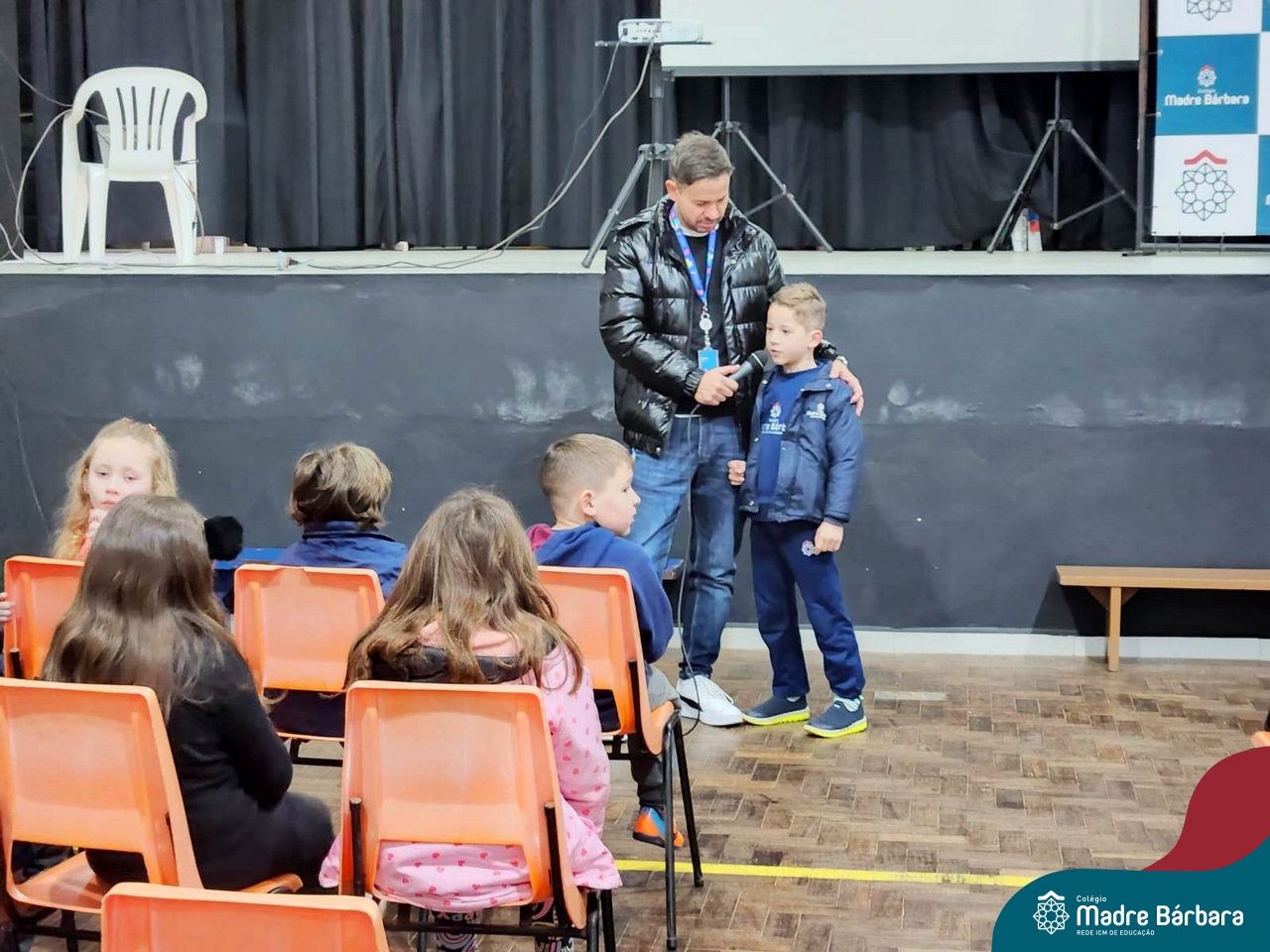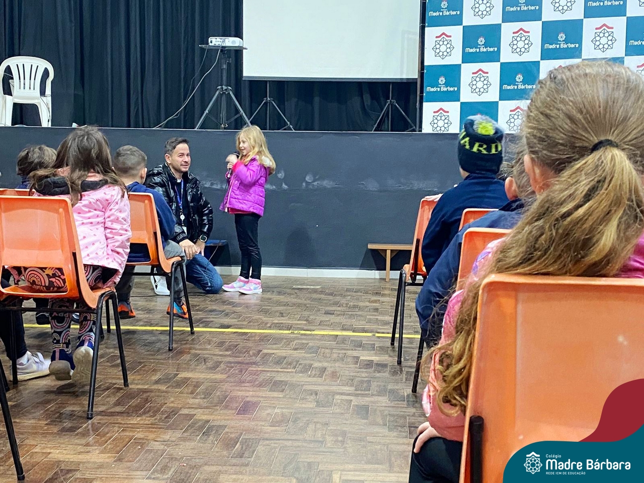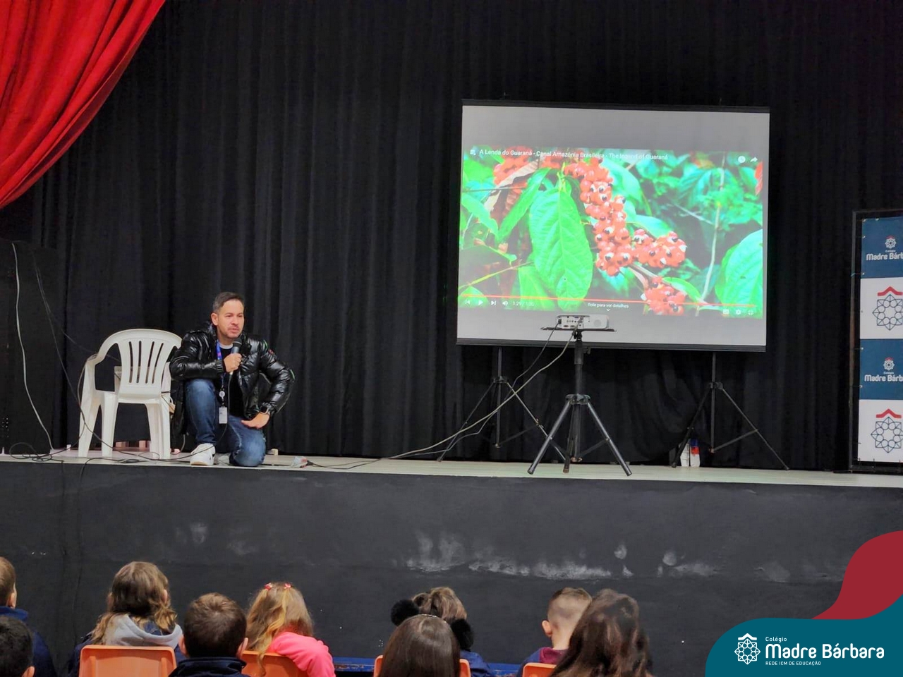 No dia 10 de agosto, os Primeiro Anos do Ensino Fundamental – Anos Iniciais, juntamente com as suas professoras, participaram de uma importante e interessante conversa sobre a cultura indígena com o Professor David Orling. Neste momento, os alunos puderam conhecer sobre a espiritualidade e aspectos históricos deste povo, entrelaçando os conhecimentos com o filme “Tainá”, já apreciado pelos estudantes e a Lenda do Guaraná.