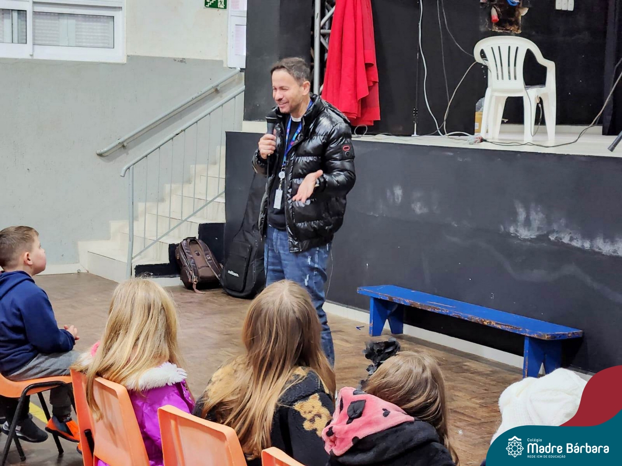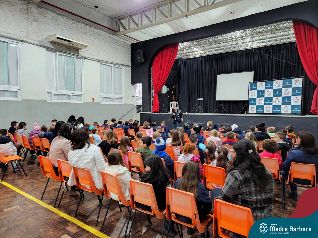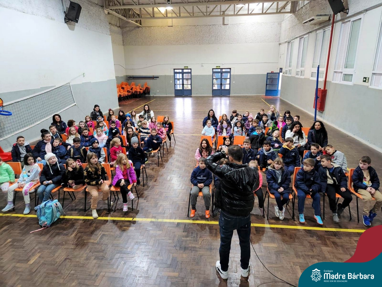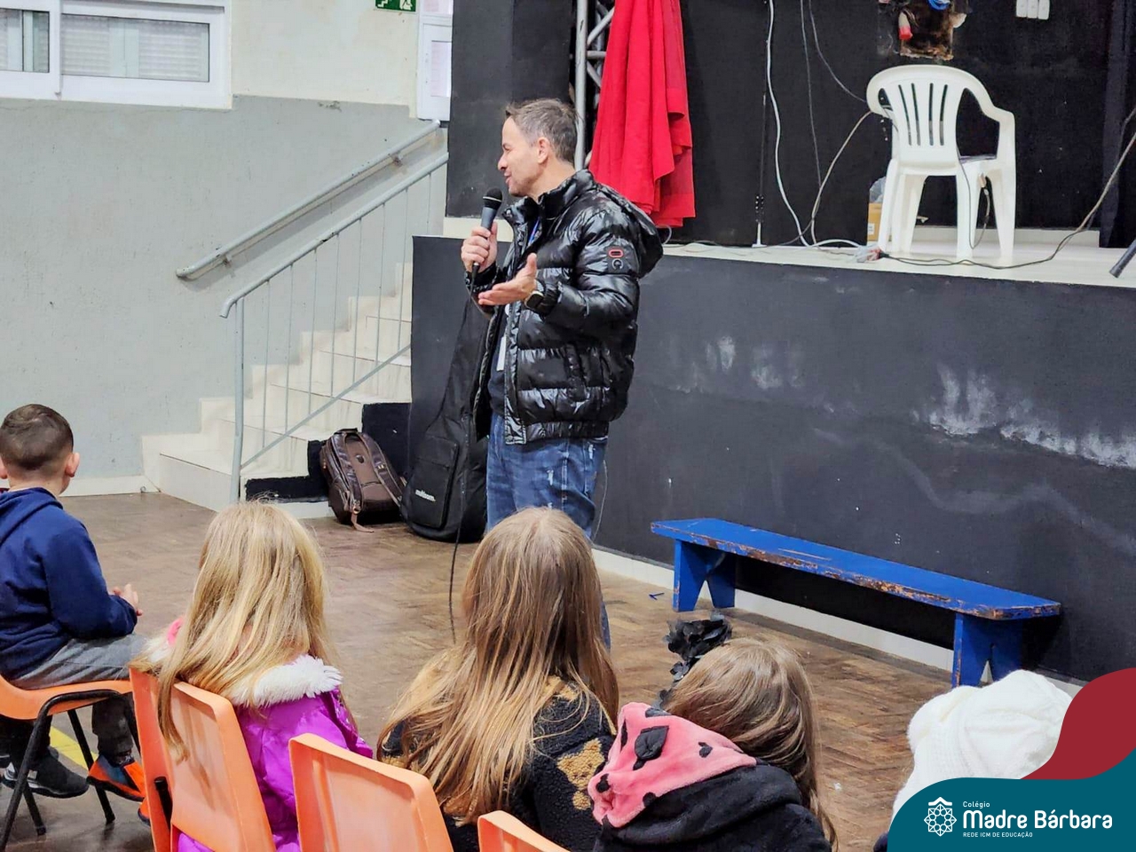 No dia 10 de agosto, os Primeiro Anos do Ensino Fundamental – Anos Iniciais, juntamente com as suas professoras, participaram de uma importante e interessante conversa sobre a cultura indígena com o Professor David Orling. Neste momento, os alunos puderam conhecer sobre a espiritualidade e aspectos históricos deste povo, entrelaçando os conhecimentos com o filme “Tainá”, já apreciado pelos estudantes e a Lenda do Guaraná.