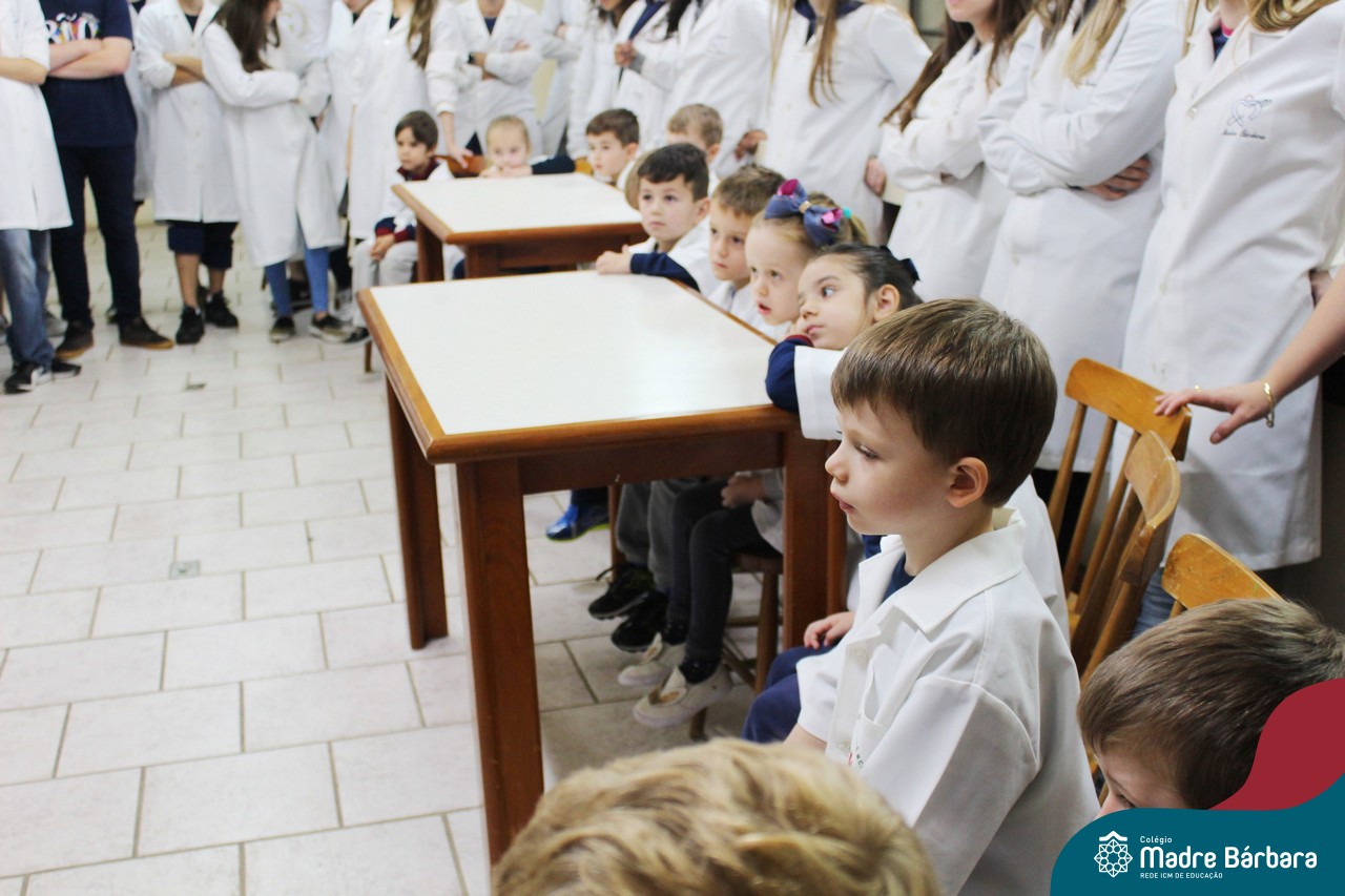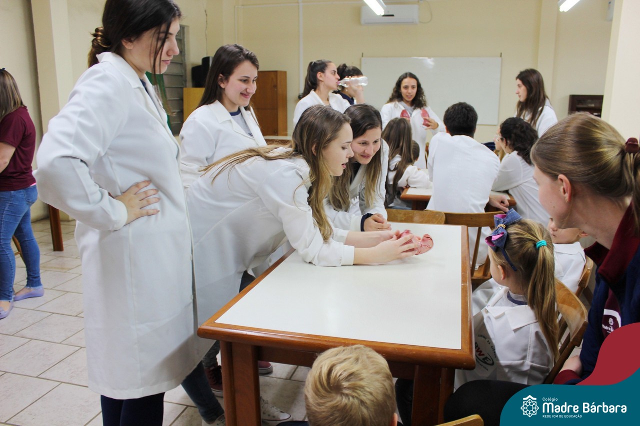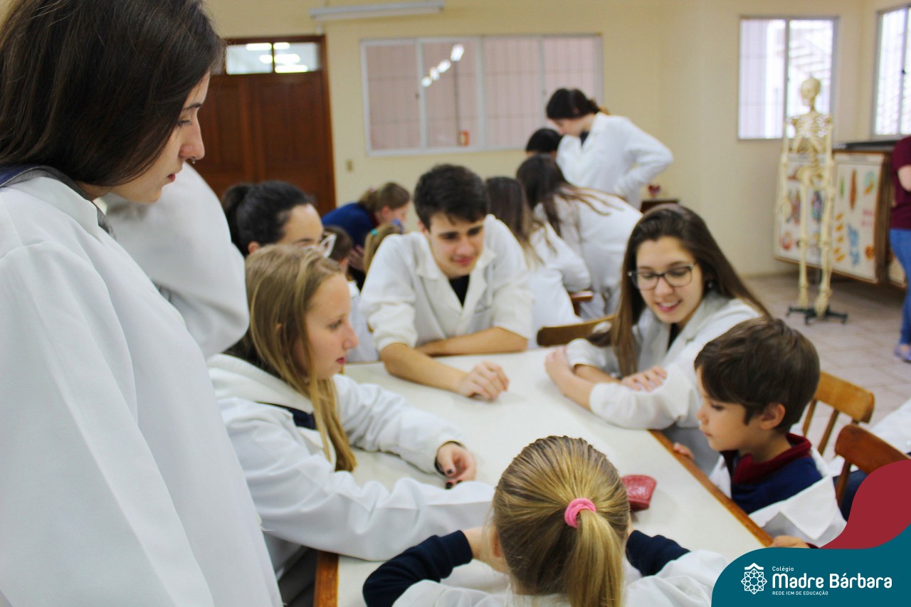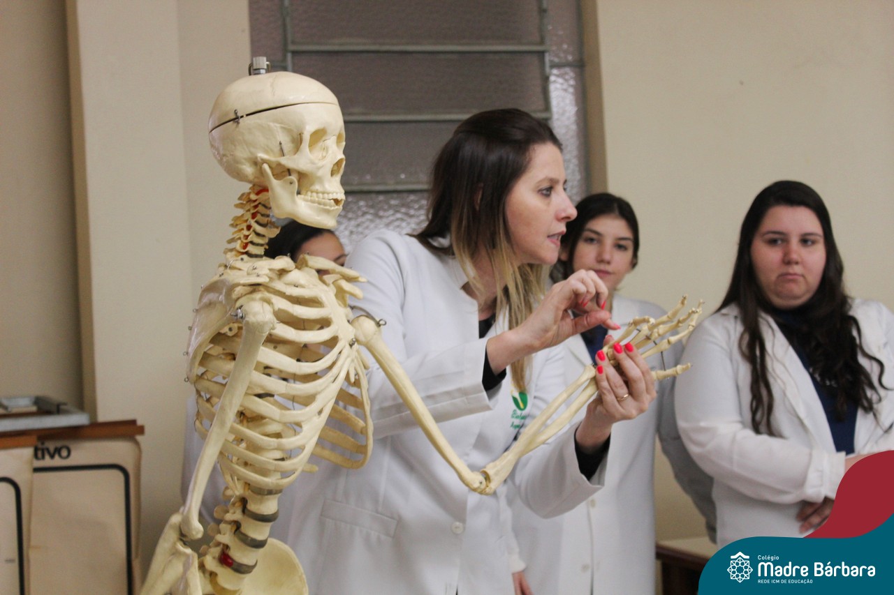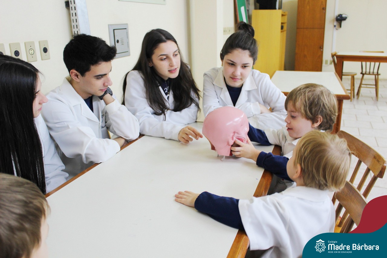 A turma do nível 3A está envolvida no projeto “Quem sou eu. Como me chamo?”, que tem como objetivo conhecer o corpo, perceber as diferenças físicas entre os colegas, incentivando o respeito ao próximo e a si mesmo, desenvolvendo situações de identificação oral e/ou visual através do nome próprio. Nas últimas semanas a turma conheceu a história “O corpo do Bóris”, e a partir da história muitas situações foram propostas. Pensando no desenvolvimento integral, na tarde de quarta-feira, dia 16, as crianças juntamente com as professoras Letícia e Jaqueline e a parceria da professora de biologia Ângela realizaram uma prática no Laboratório de Ciências do Colégio. A professora Ângela e os alunos do 3° ano, mostraram para as crianças o esqueleto, apresentando sua funcionalidade, bem como, mostrou para as crianças alguns dos órgãos que fazem parte do nosso corpo. Foi uma vivência maravilhosa.