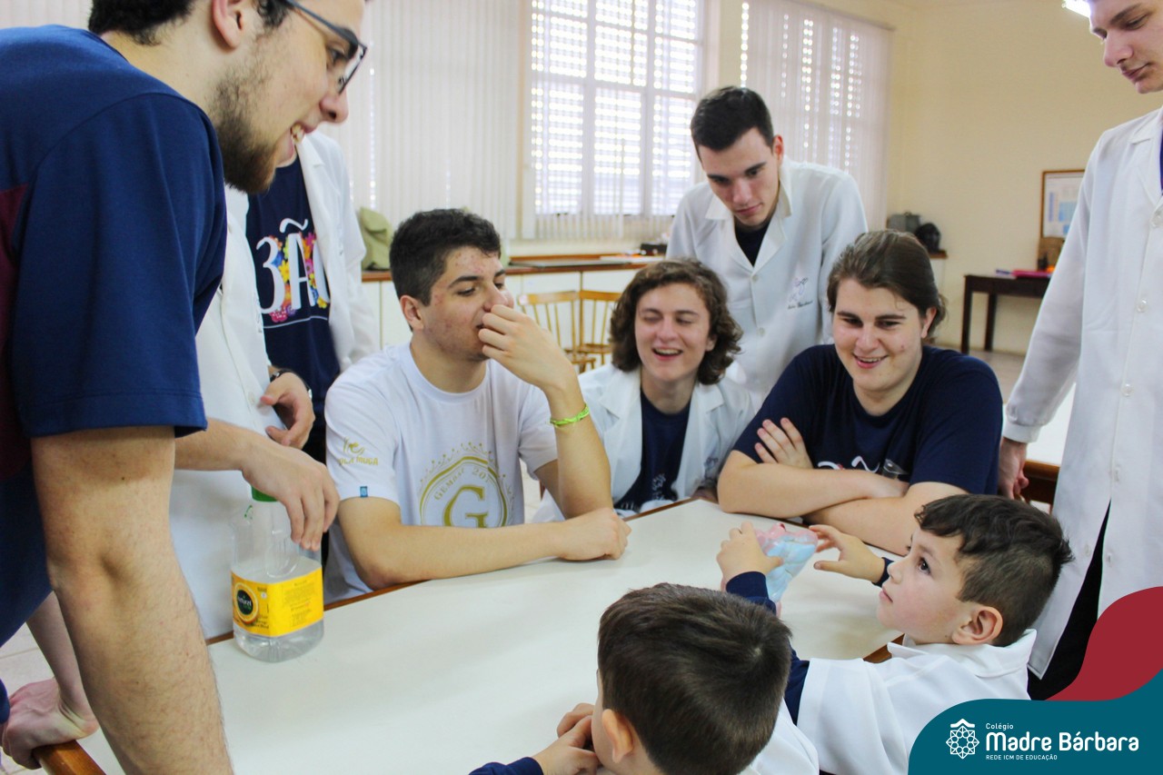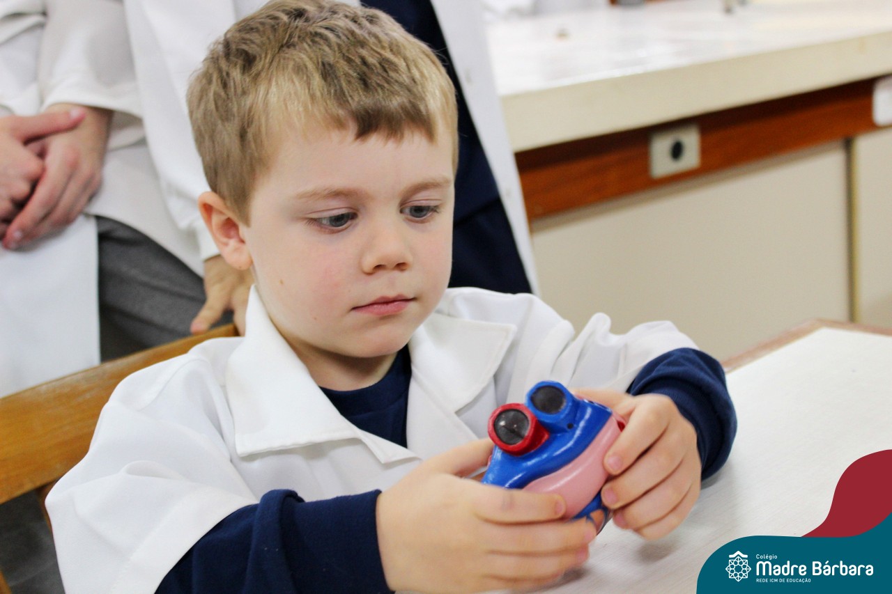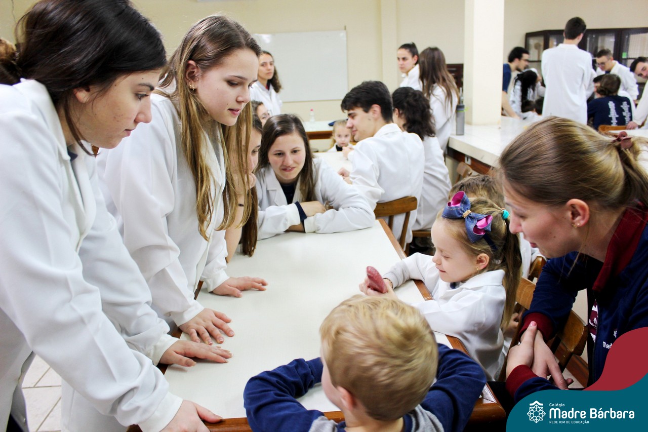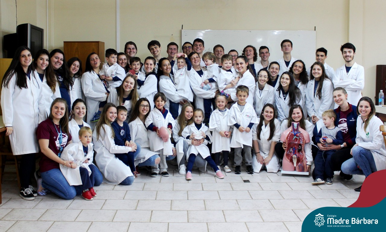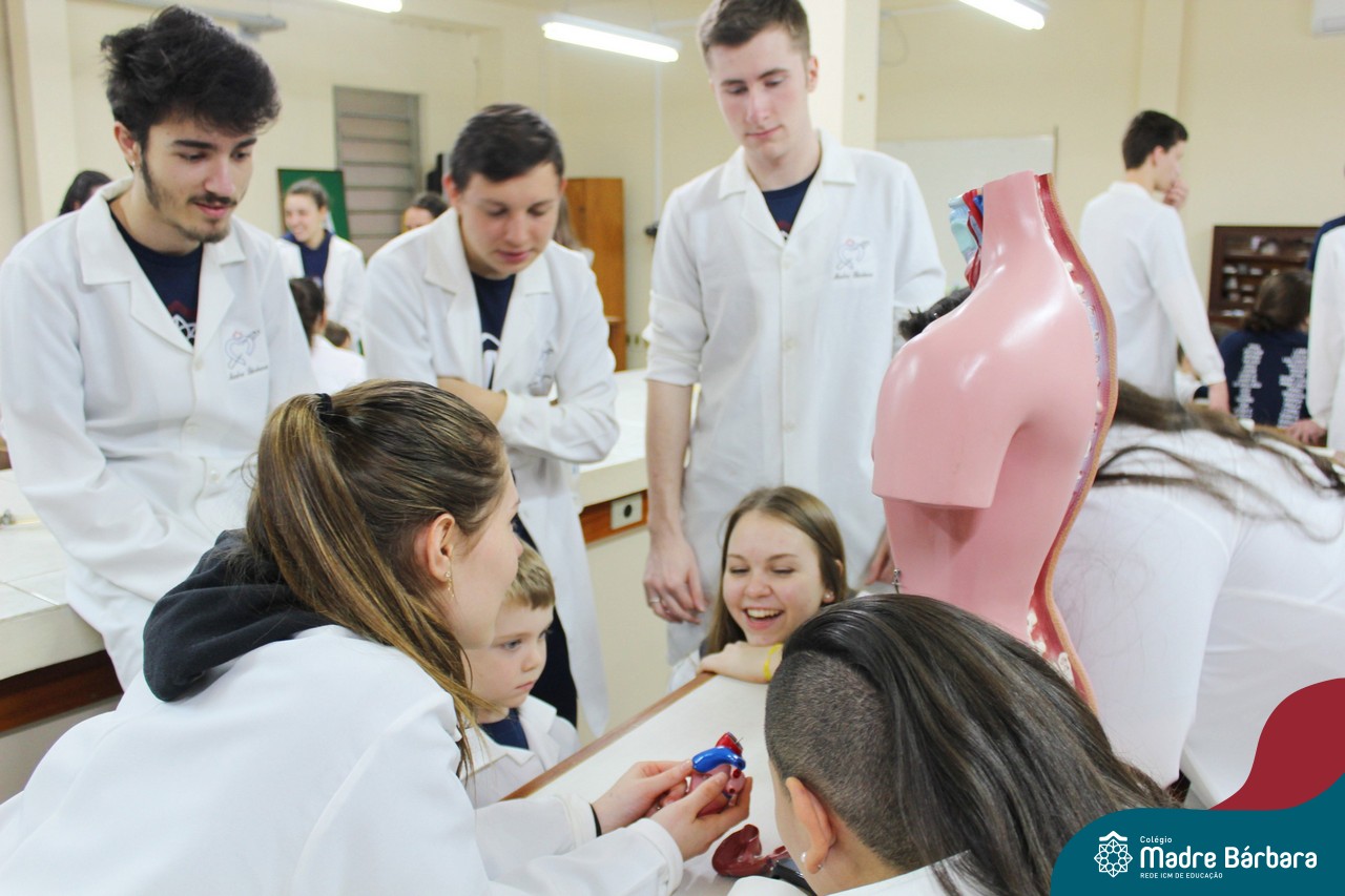 A turma do nível 3A está envolvida no projeto “Quem sou eu. Como me chamo?”, que tem como objetivo conhecer o corpo, perceber as diferenças físicas entre os colegas, incentivando o respeito ao próximo e a si mesmo, desenvolvendo situações de identificação oral e/ou visual através do nome próprio. Nas últimas semanas a turma conheceu a história “O corpo do Bóris”, e a partir da história muitas situações foram propostas. Pensando no desenvolvimento integral, na tarde de quarta-feira, dia 16, as crianças juntamente com as professoras Letícia e Jaqueline e a parceria da professora de biologia Ângela realizaram uma prática no Laboratório de Ciências do Colégio. A professora Ângela e os alunos do 3° ano, mostraram para as crianças o esqueleto, apresentando sua funcionalidade, bem como, mostrou para as crianças alguns dos órgãos que fazem parte do nosso corpo. Foi uma vivência maravilhosa.