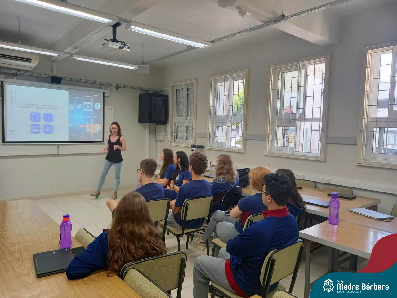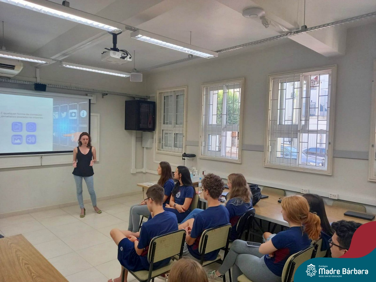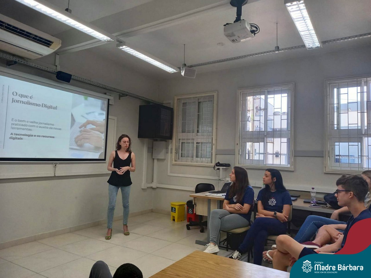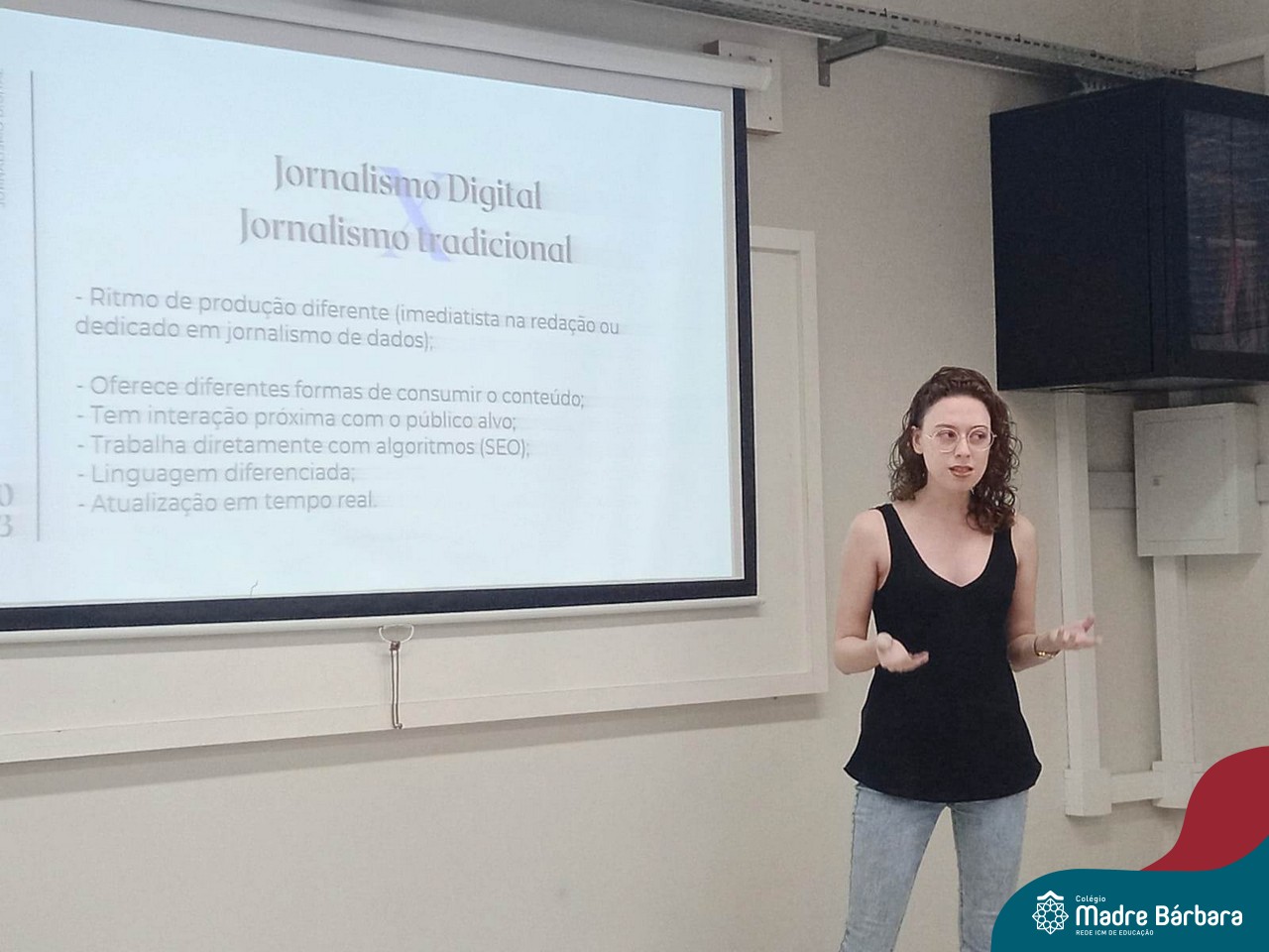 Na última quarta-feira (29.03), os estudantes do Itinerário de Jornalismo Digital tiveram a oportunidade de conversar sobre o mundo do jornalismo digital com Jéssica Ribeiro Mallmann, que tem graduação em Jornalismo e especialização em Jornalismo Digital. Durante o bate-papo, os alunos puderam discutir sobre a produção jornalística na contemporaneidade, refletindo sobre as demandas, desafios e espaços de atuação do jornalista na atualidade, sobre o conceito de Jornalismo Digital e também sobre o Jornalismo de Dados.